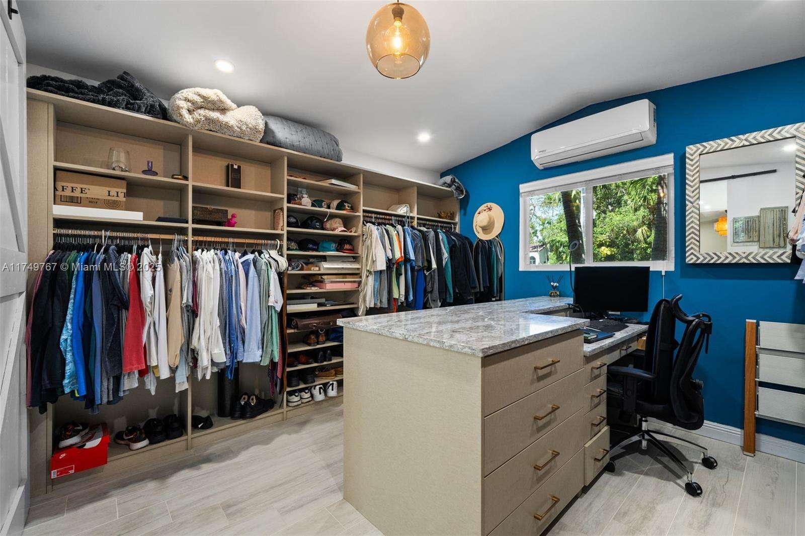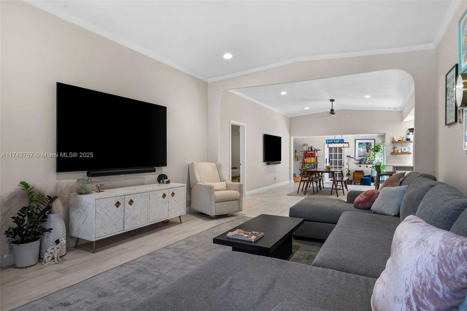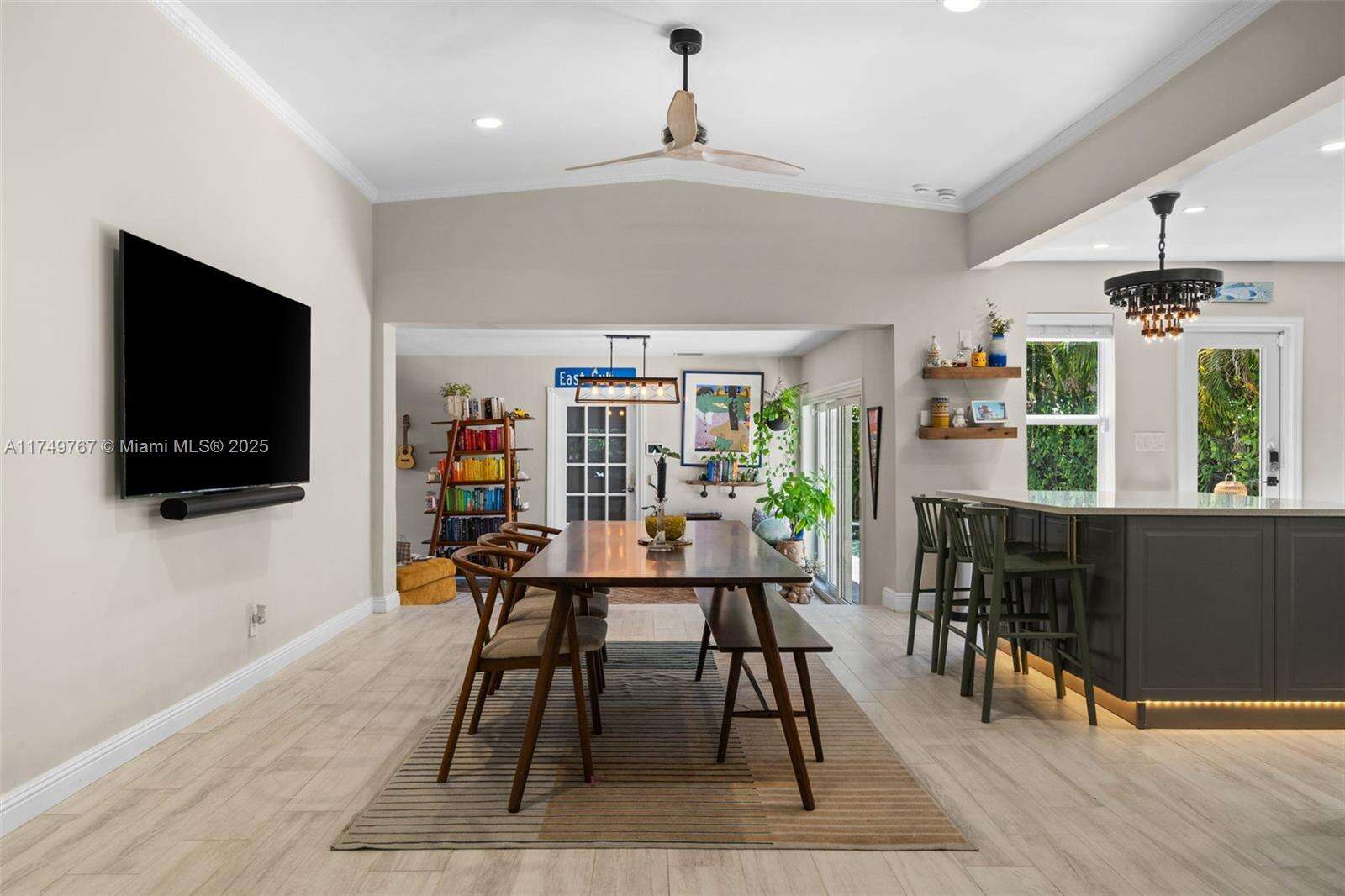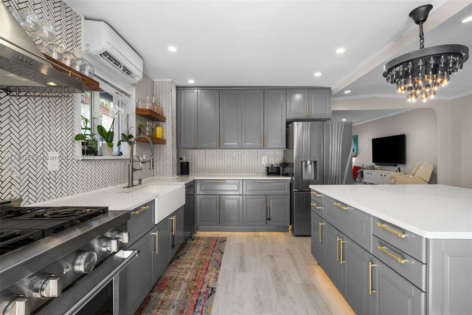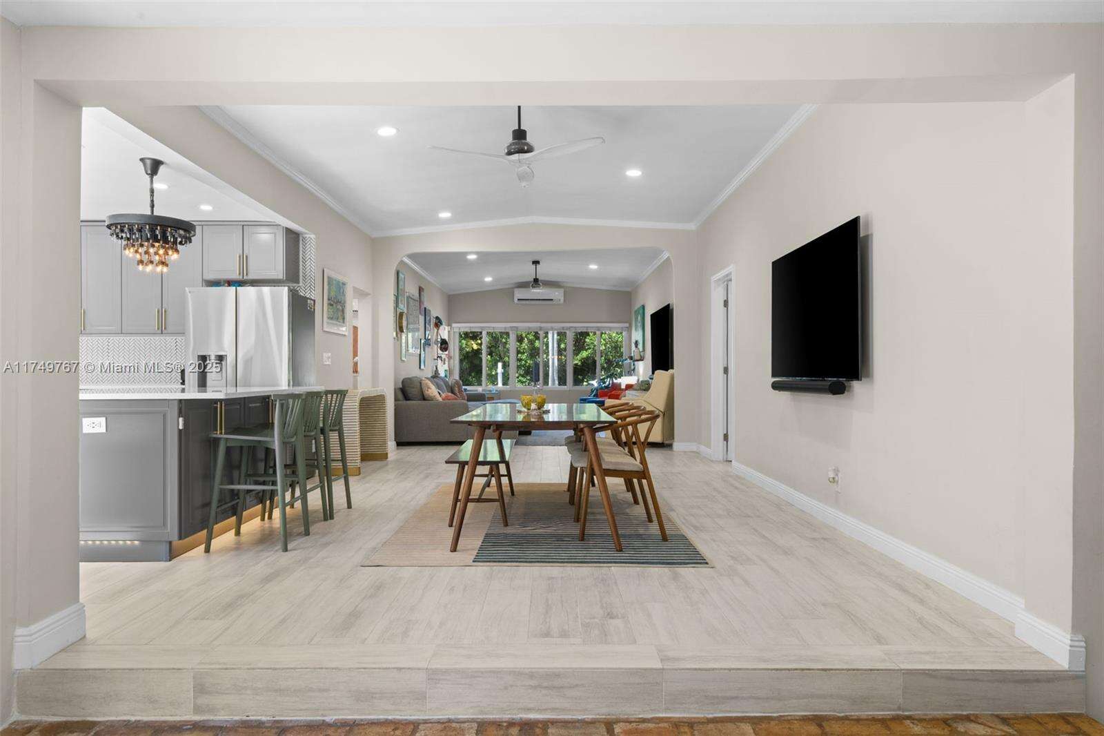 Stunningly renovated home in Hollywood Lakes! This gem combines modern elegance with timeless charm. The Primary Suite boasts a custom walk-in closet (easily converts back to a 5th bedroom), quartz island vanity, additional dual closets, double vanity, and a glass-enclosed shower. Spacious living areas include a grand family room, formal dining, and a versatile Florida room. Upstairs, a full kitchen, bath, and two large bedrooms provide a perfect guest or staff retreat. The private backyard oasis features a pristine pool and lush landscaping for the ultimate in privacy, relaxation, and entertainment. Full impact protection. Built-out garage with a laundry room. A Beautiful Home! Make It Rein!