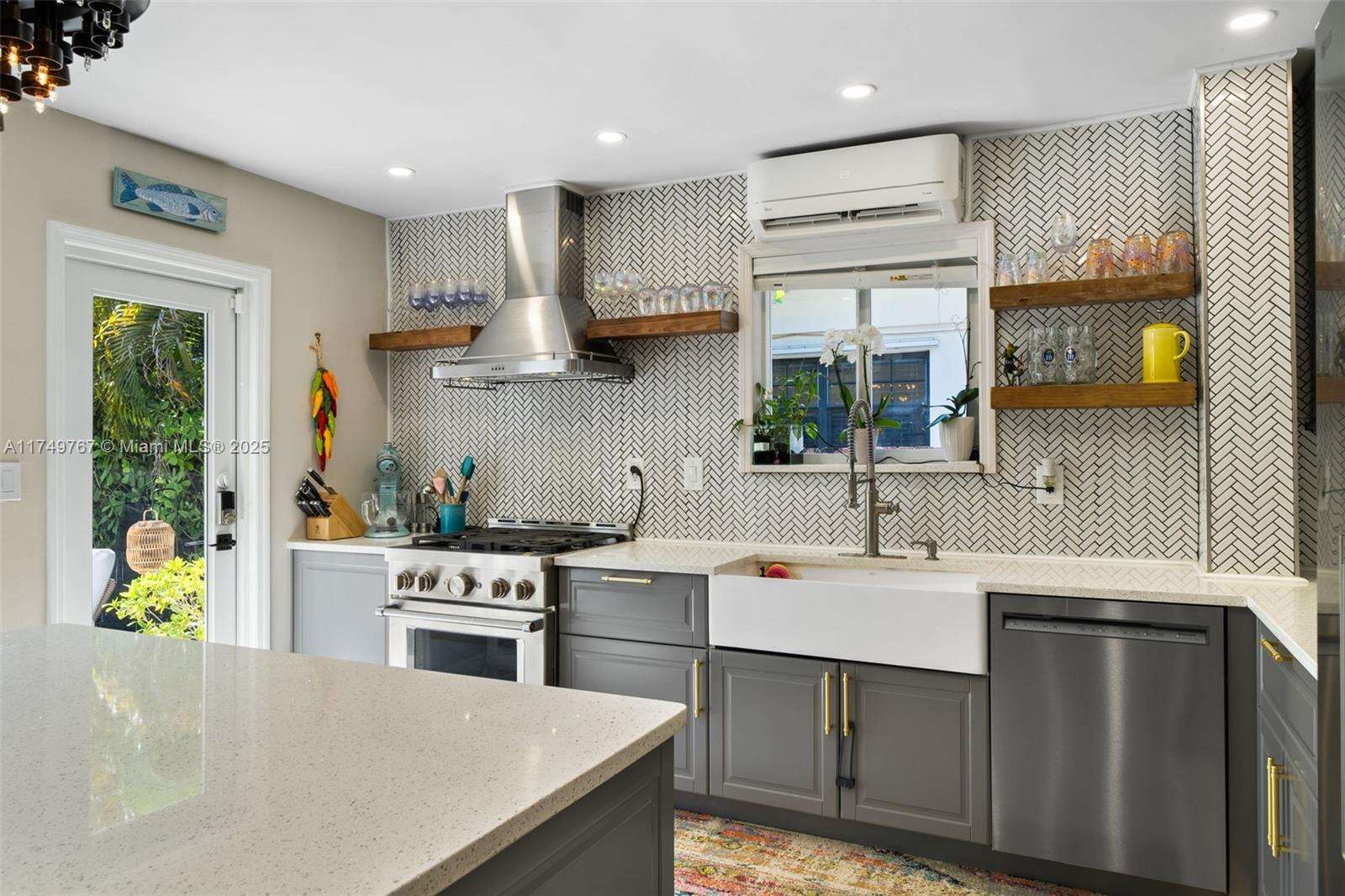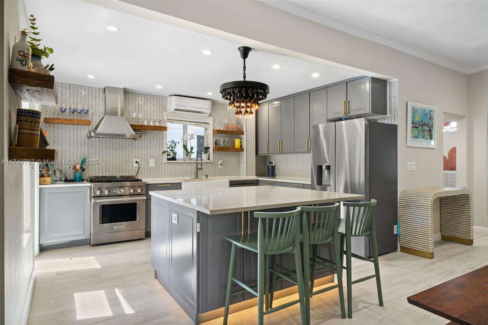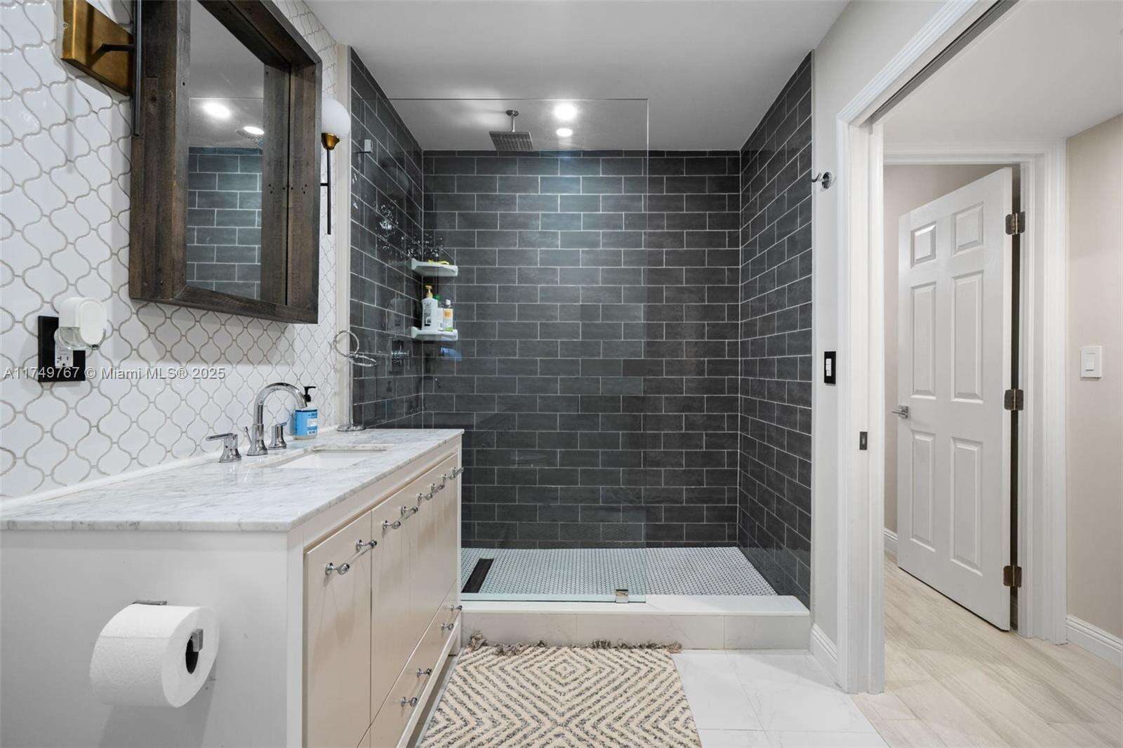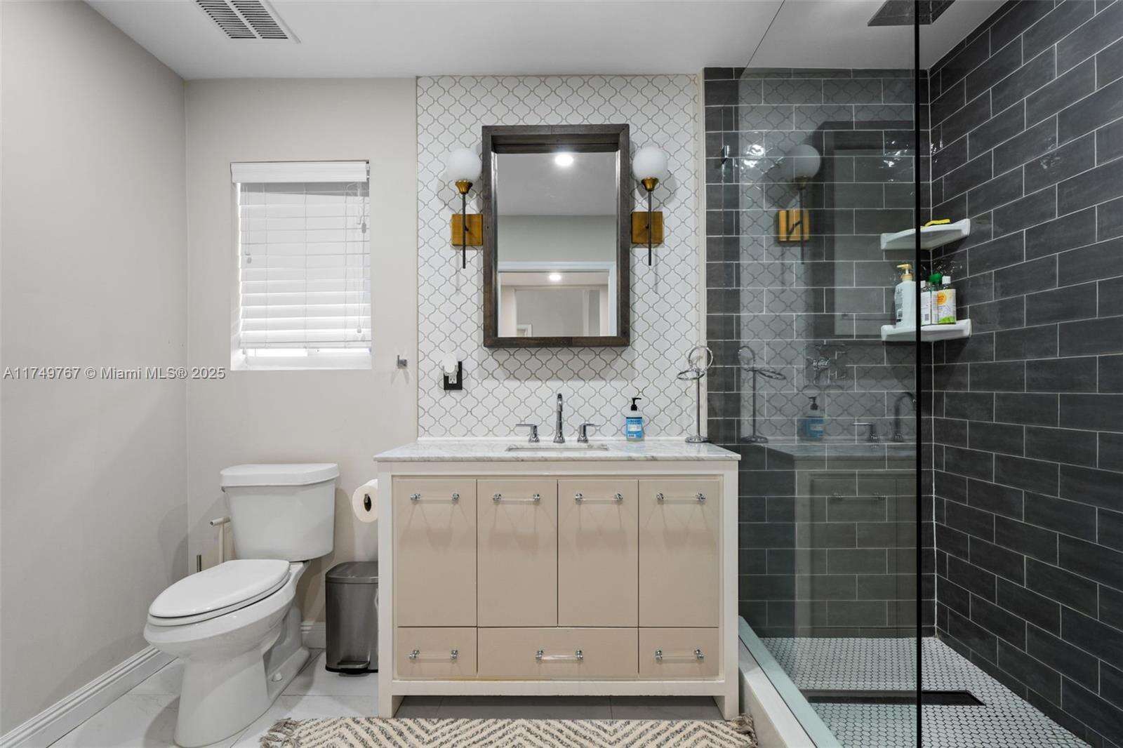 Stunningly renovated home in Hollywood Lakes! This gem combines modern elegance with timeless charm. The Primary Suite boasts a custom walk-in closet (easily converts back to a 5th bedroom), quartz island vanity, additional dual closets, double vanity, and a glass-enclosed shower. Spacious living areas include a grand family room, formal dining, and a versatile Florida room. Upstairs, a full kitchen, bath, and two large bedrooms provide a perfect guest or staff retreat. The private backyard oasis features a pristine pool and lush landscaping for the ultimate in privacy, relaxation, and entertainment. Full impact protection. Built-out garage with a laundry room. A Beautiful Home! Make It Rein!