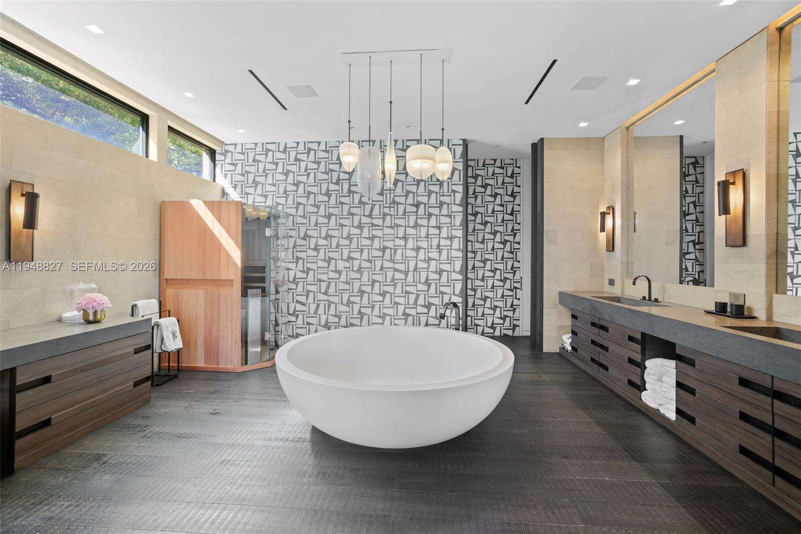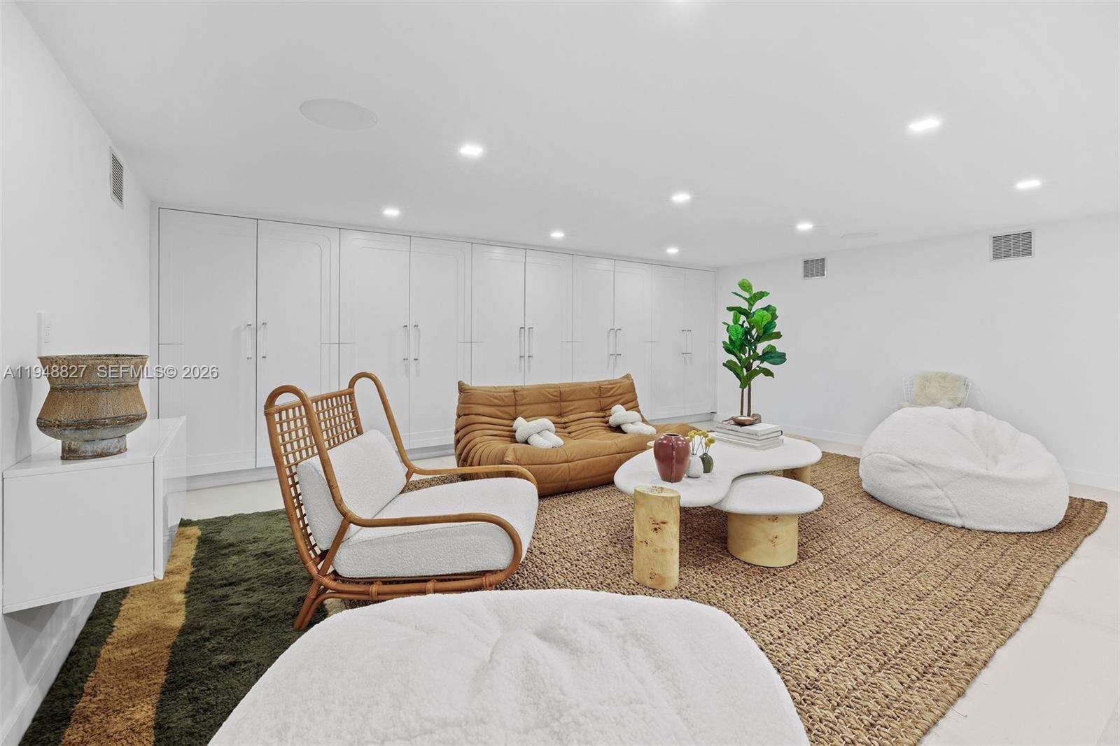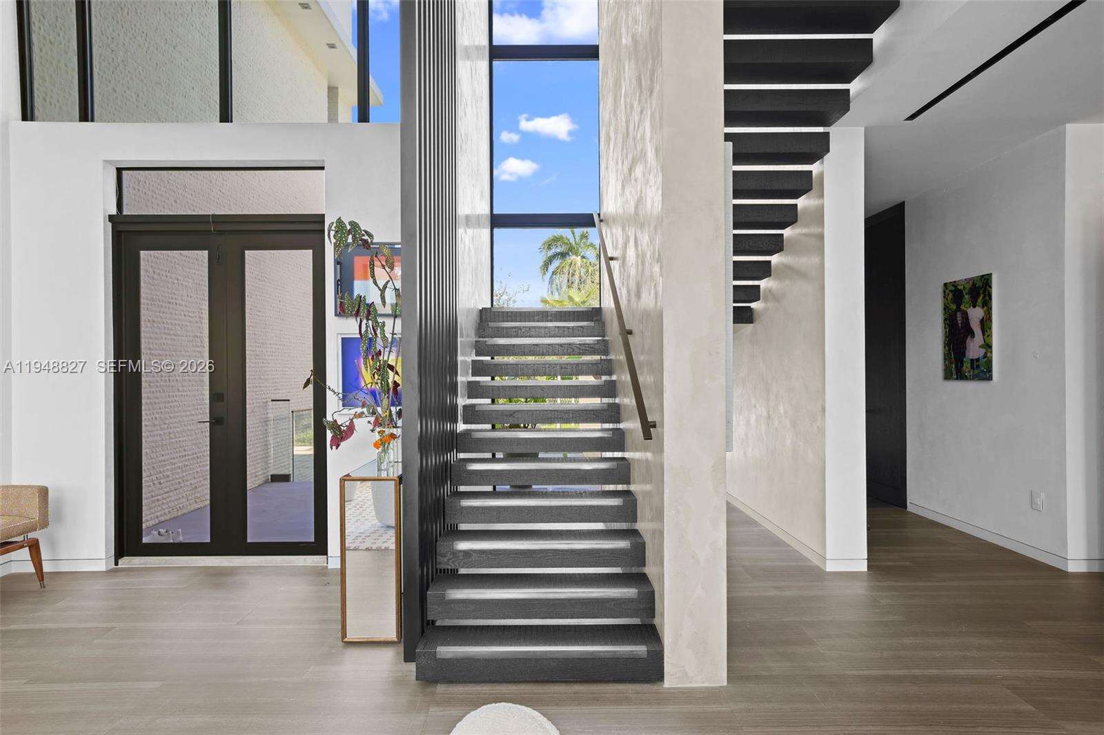 Maison Paloma - This Choeff Levy-designed custom-built waterfront Cocoplum estate blends sculptural architecture with refined contemporary finishes, including dual entry waterfalls, Venetian plaster interiors, limestone & Listone Giordano wood flooring, & expansive glass overlooking the canal. The Boffi-designed kitchen features Sub-Zero, Gaggenau & Miele appliances with porcelain slab surfaces & integrated cabinetry, while the family room includes LED-lit display shelving & a wet bar with Sub-Zero refrigeration & ice maker. A rare finished basement offers additional usable space not included in the living SF, with areas for 4 defined areas arts/crafts, home theatre, den & fitness. The second level includes a private primary suite with balcony, large dual closets & spa bath, with additional ensuite bedrooms & upstairs flex lounge, all connected by an elevator. Outdoor living includes a heated edgeless pool/spa, privacy landscaping & fully equipped summer kitchen, with approx. 100 ft frontage, newer seawall cap & utilities-ready dock. Additional features include Control4 automation, Sonos audio, 14 security cameras, generator & a gated carport in one of Miami's most sought-after gated residential enclaves.