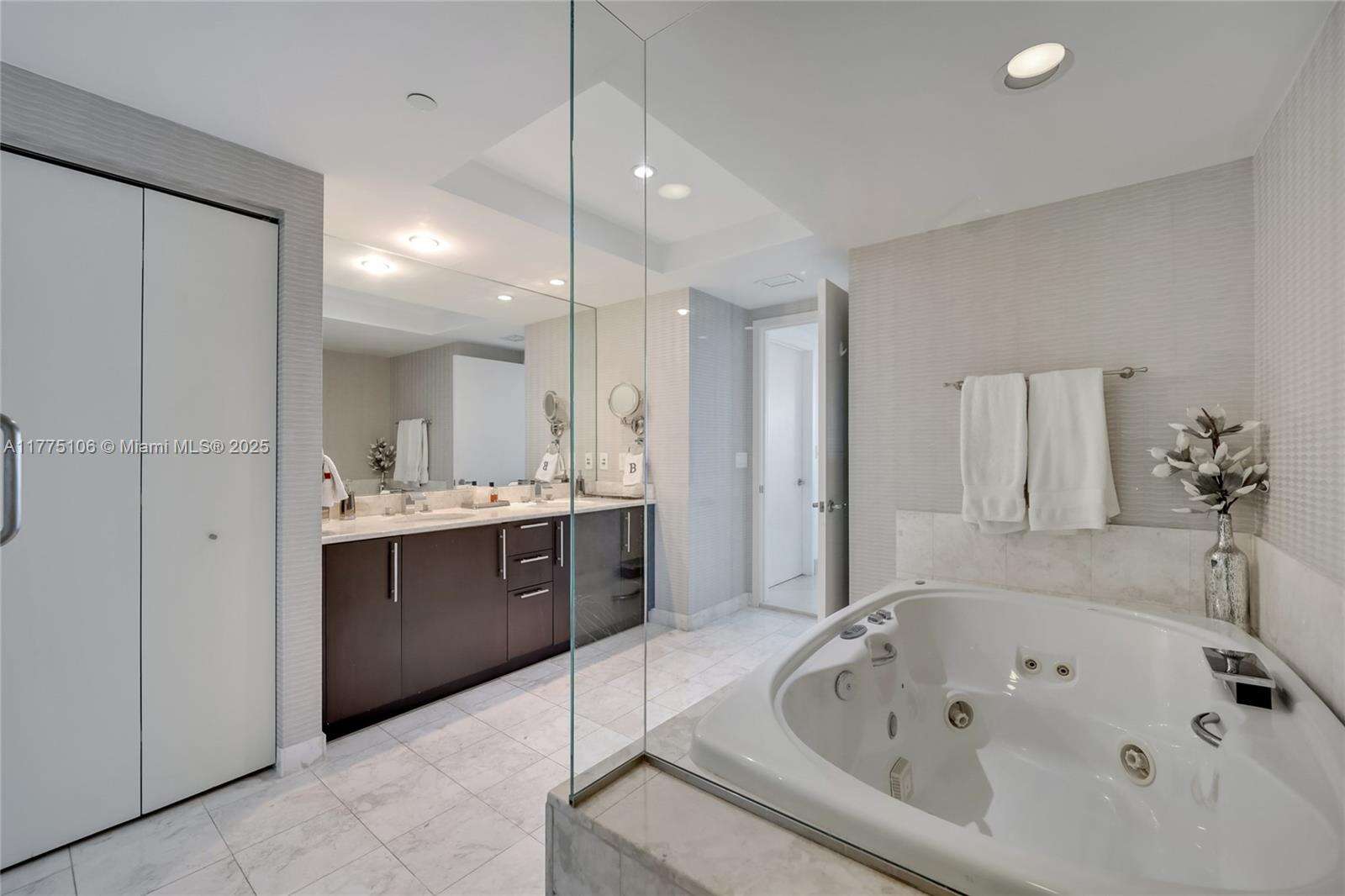 Experience luxury waterfront living in this stunning 3-bedroom, 3.5-bath residence at the prestigious Jade Brickell. Perched on the 26th floor, this flow-through unit boasts breathtaking bay and city views from floor-to-ceiling windows and two expansive balconies. A private elevator foyer leads to an elegant interior with marble floors, Italian cabinetry, and high-end appliances, including a built-in Miele coffee maker, dual ovens, and a wine cooler. The primary suite features two walk-in closets and a spa-like bath w/dual vanities, two water closets, a soaking tub, and a walk-in shower. 2 parking spots! Enjoy resort-style amenities, including an infinity-edge pool, fitness center, spa, 24-hour concierge, and valet. Prime Brickell location, steps from top dining, shopping, & entertainment.