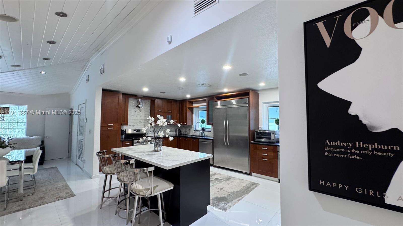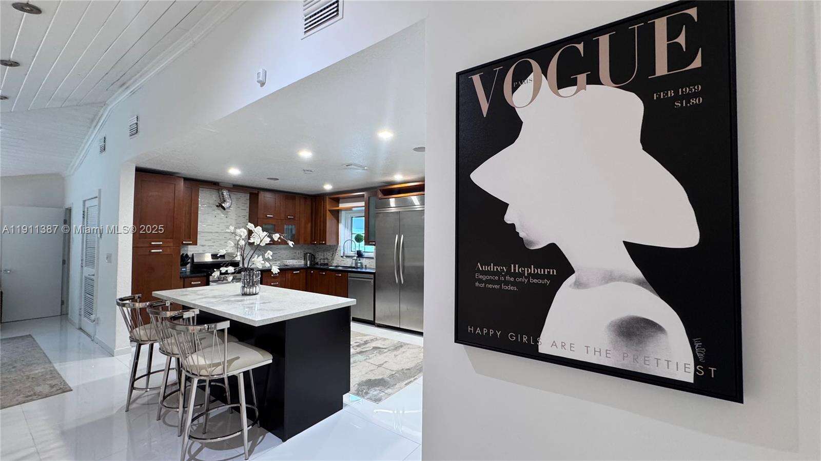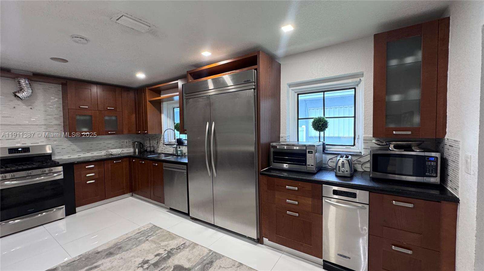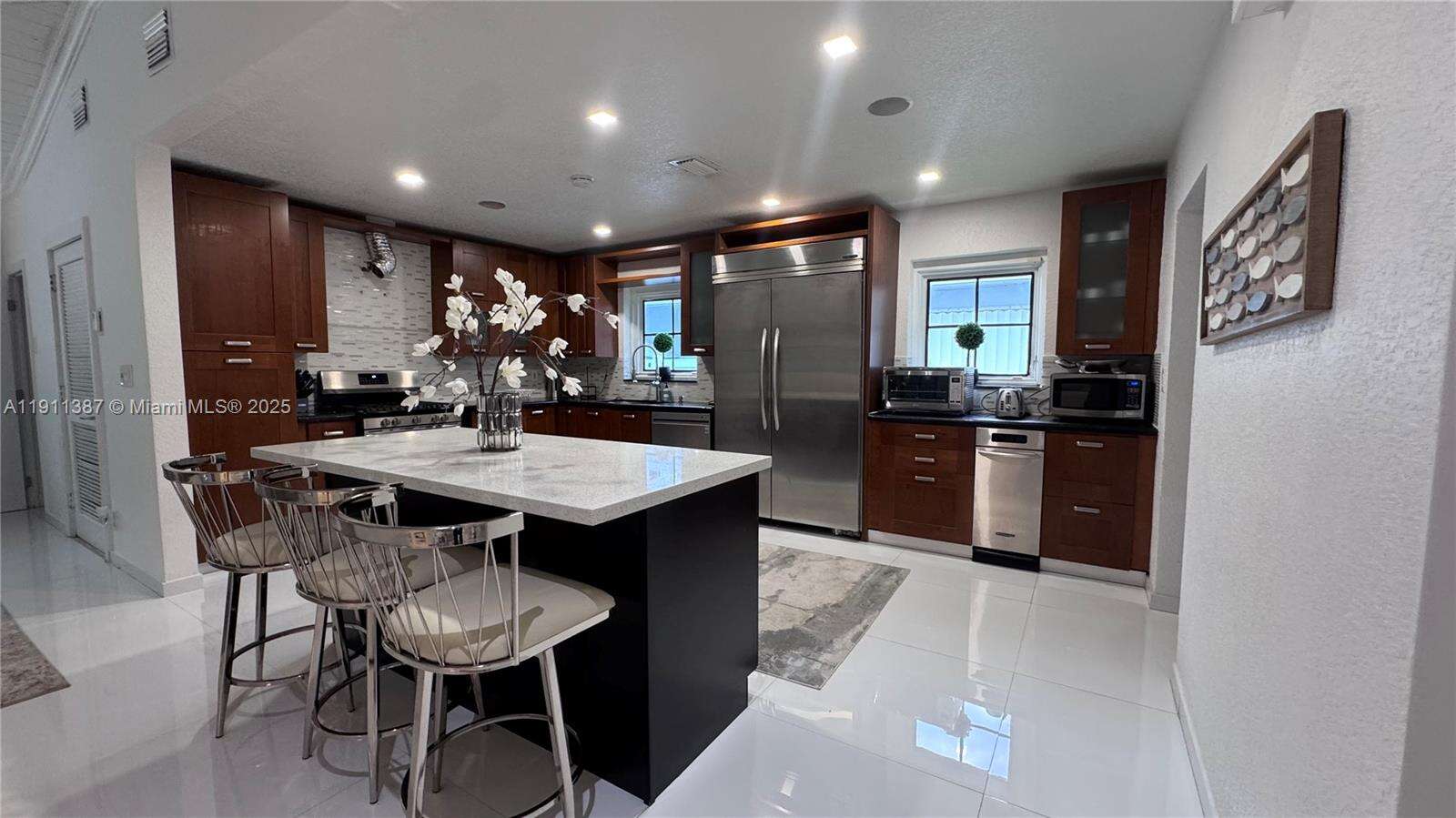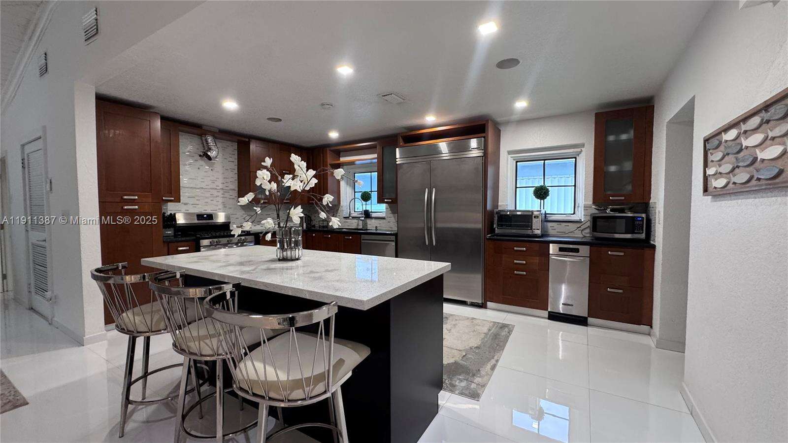 AVAILABLE 01/21/2026 -GORGEOUS fully furnished & ONLY FURNISHED gem in the heart of Hollywood Lakes, around the corner from Southlake and Hollywood downtown and 1/2 mile to the beach .This amazing 3BR+DEN /2BA with private pool, outdoor patio with sitting area,is fully furnished and totally remodeled. The great design makes this house a very unique one of kind for the the neighborhood. Very private and secluded with a fence and hedges amazing open kitchen/stainless steel appliances/huge living room with formal dining room overlooking the quiet backyard and pool is great for entertainment,l ots of light and great energy .Beautiful white glass floors throughout the house ,very easy to maintenance. Laundry room w.Commercial size washer dryer.2 king size beds full plus pull out sofas in media