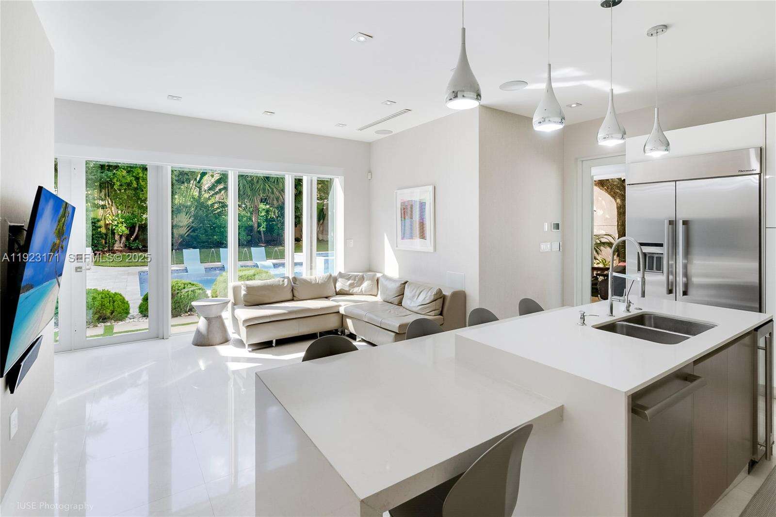 This luxury single-story modern residence offers 5 bed / 5.5 bath and an exceptional open layout that creates a seamless indoor-outdoor flow overlooking a lush tropical backyard. Located in Bay Heights—an exclusive, enclosed, and centrally located neighborhood with 24/7 patrol security—it offers unmatched convenience just steps from Brickell, Coconut Grove, and Coral Gables. The expansive patio features a heated pool with jacuzzi and cabana bath, complemented by an entertainer’s dream covered outdoor BBQ area/summer kitchen with TV and surround sound system. The home includes soaring ceilings, expansive impact windows, and refined finishes throughout. An attached 2-car carport and additional gated parking spaces add to the convenience. This prestigious community is walking distance to the area’s top restaurants, parks, schools, boutiques, and cafés.
