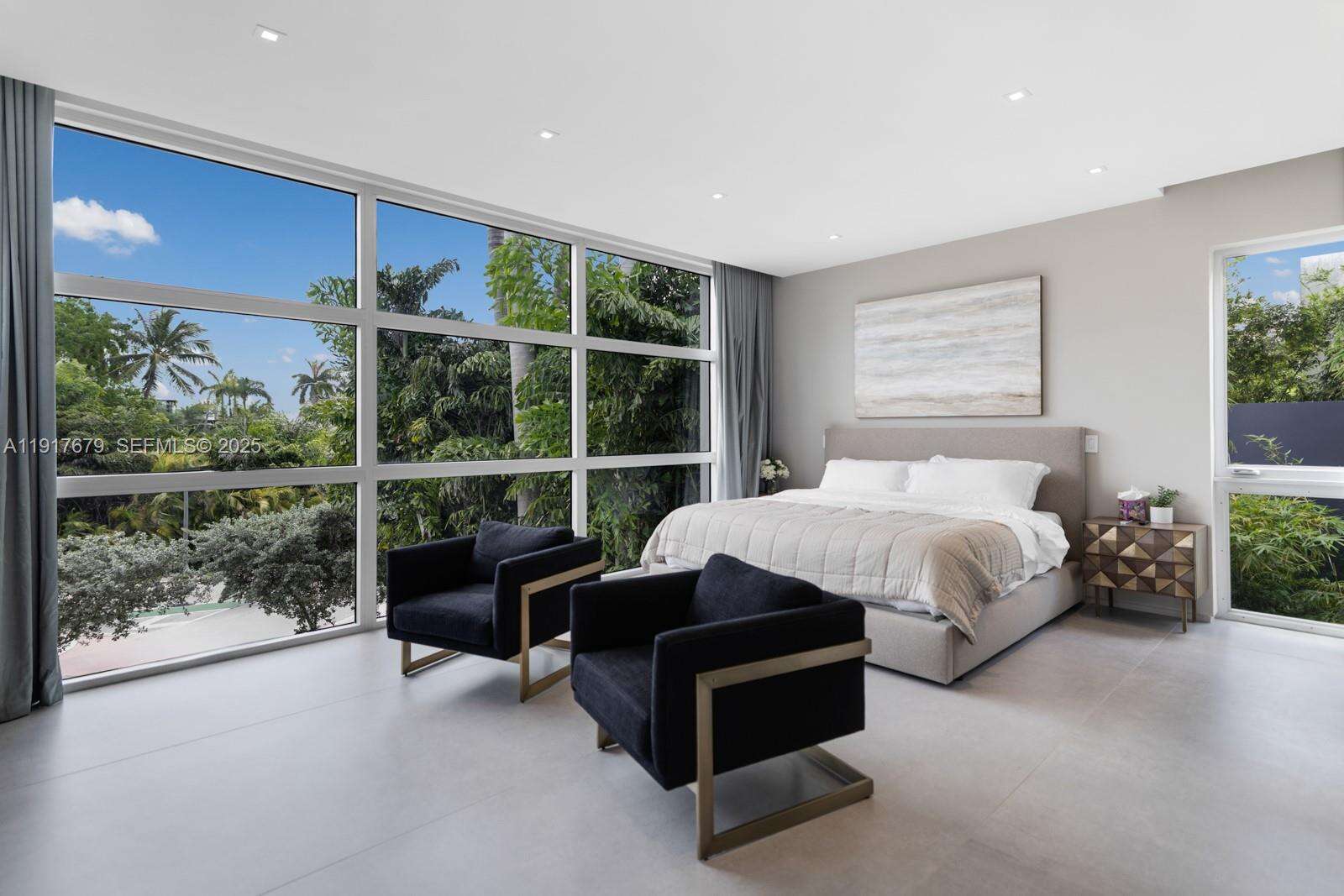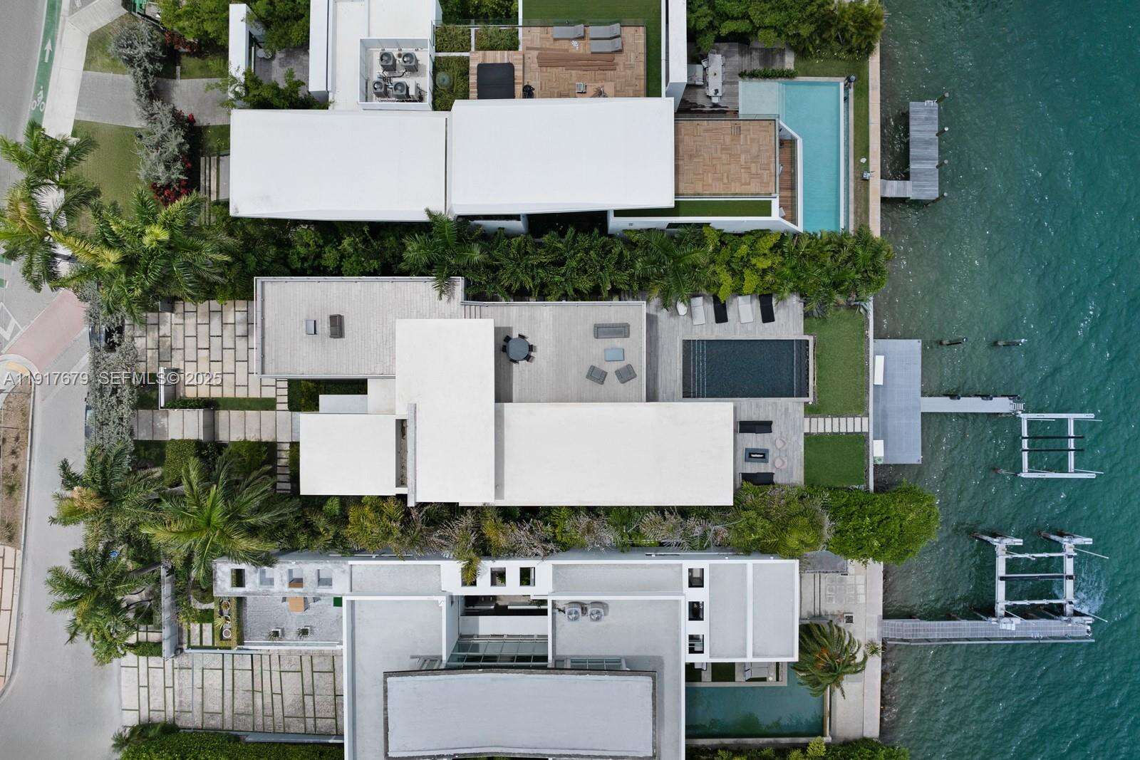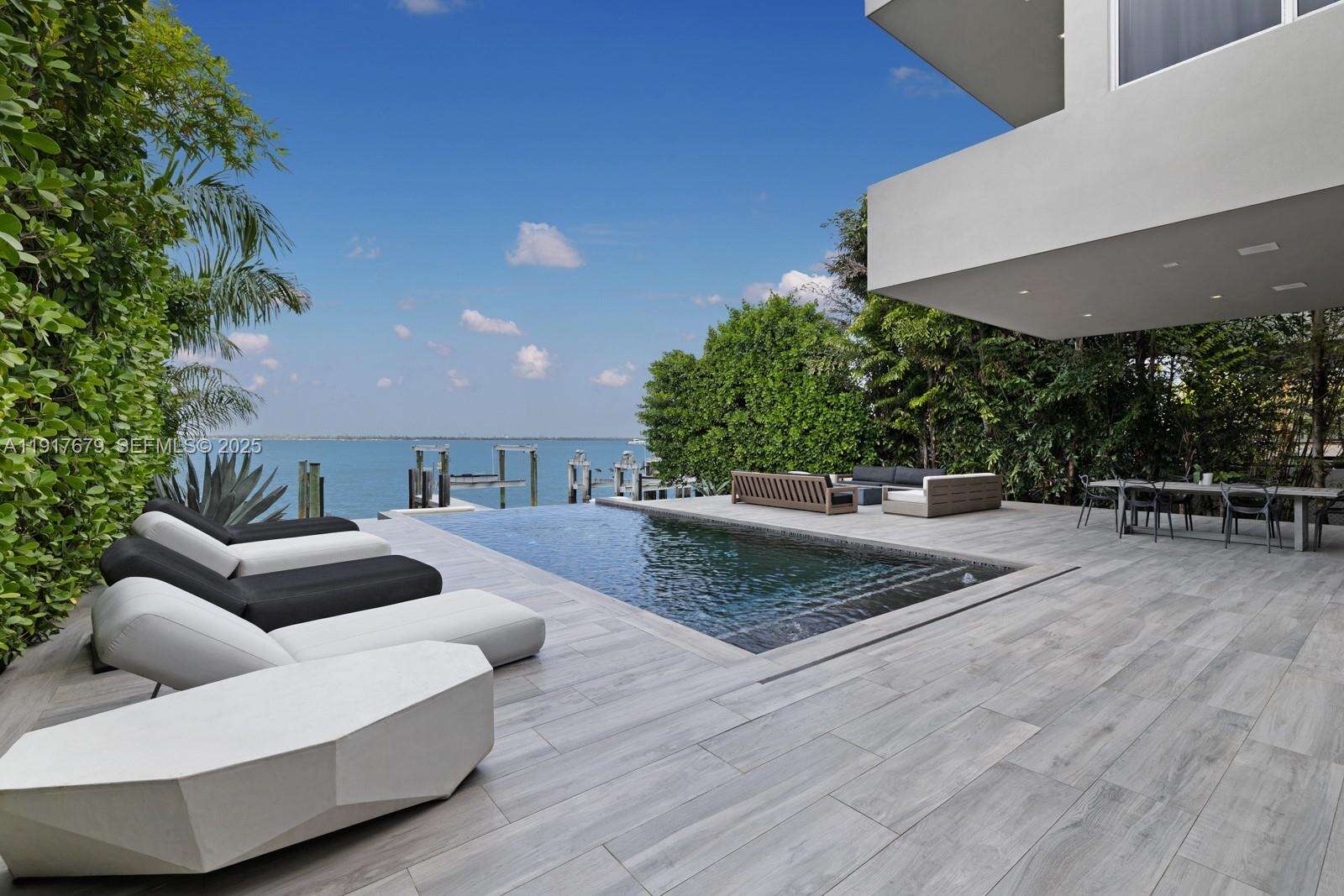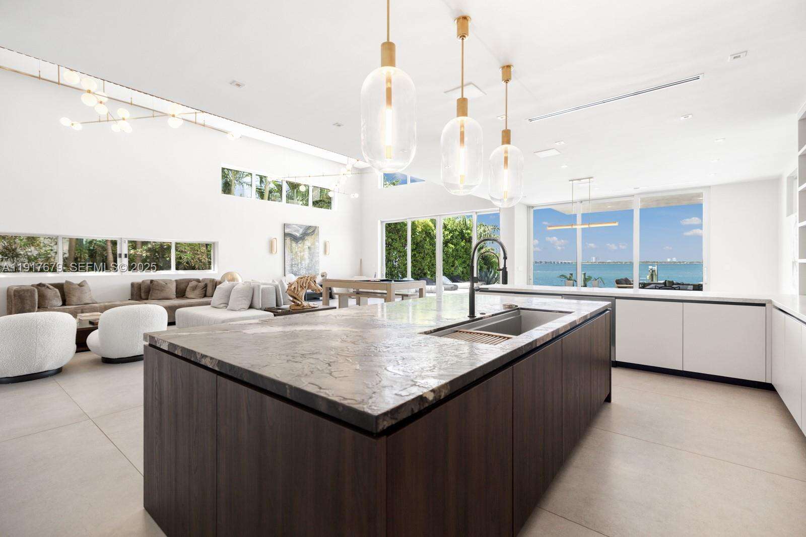 Experience the ultimate blend of waterfront serenity & modern luxury in this 5BD/5BA masterpiece, inspired by earthy sophistication. Enjoy 60' of open bay water frontage, a heated saltwater Infinity-edge pool & outdoor lounging areas. Grand open living spaces transition effortlessly to the outdoors, creating an ideal setting for entertaining. A sleek sunroom with floor-to-ceiling glass captures natural light & opens to an expansive rooftop terrace. Inside, the chef’s kitchen is outfitted with Taj Mahal quartzite, a custom island, bespoke cabinetry & Subzero/Wolf appliances. Travertine-clad walls & ambient-lit stairs frame the foyer. Primary suite features custom millwork, infinity leather-wrapped panel & steam shower. RH furnishings & curated finishes complete this one-of-a-kind residence.