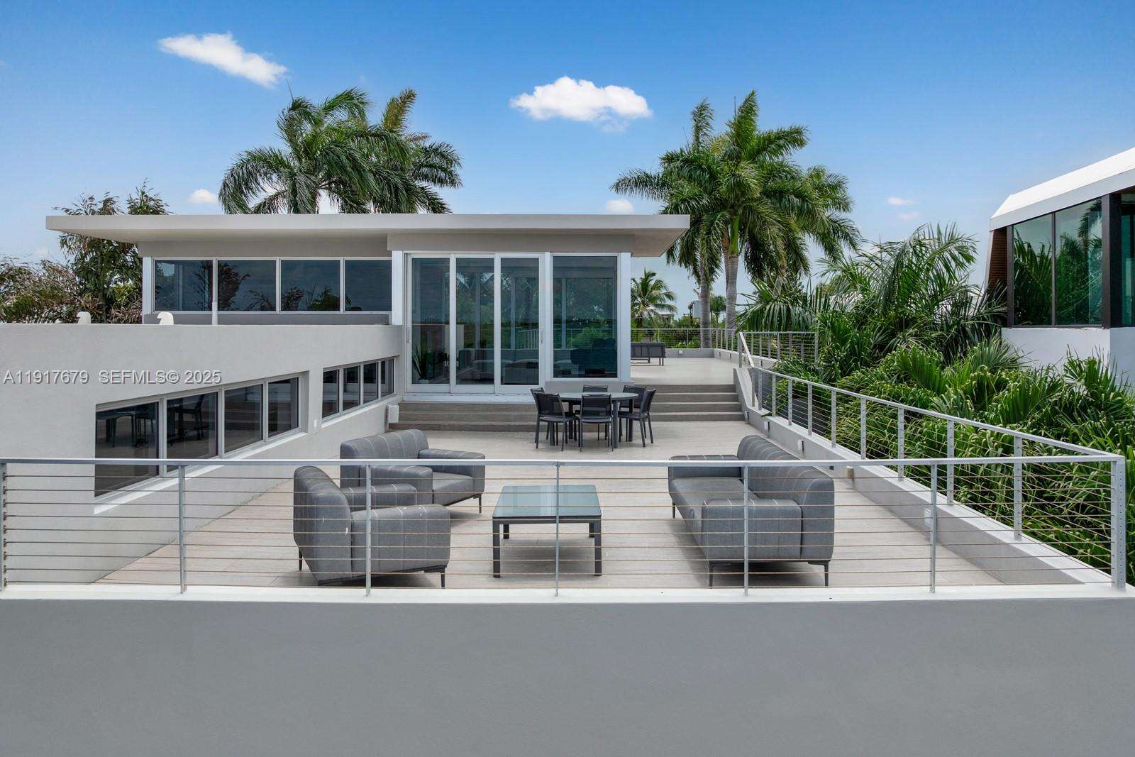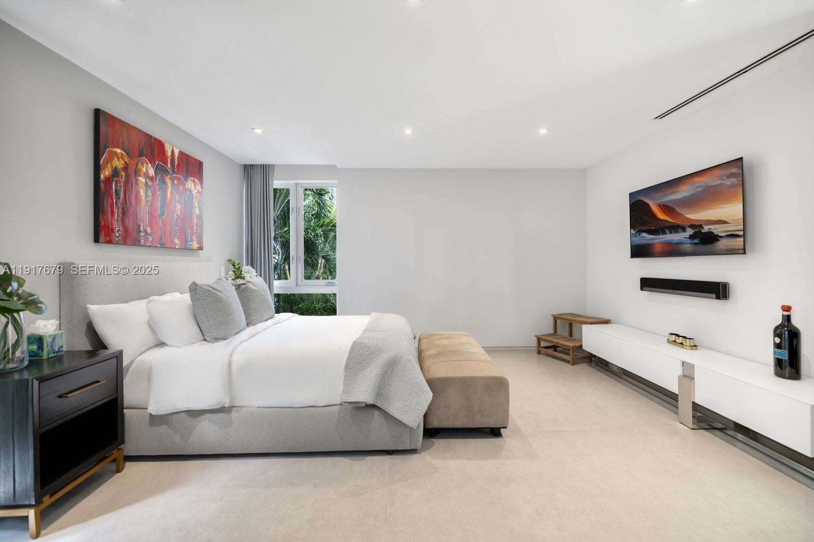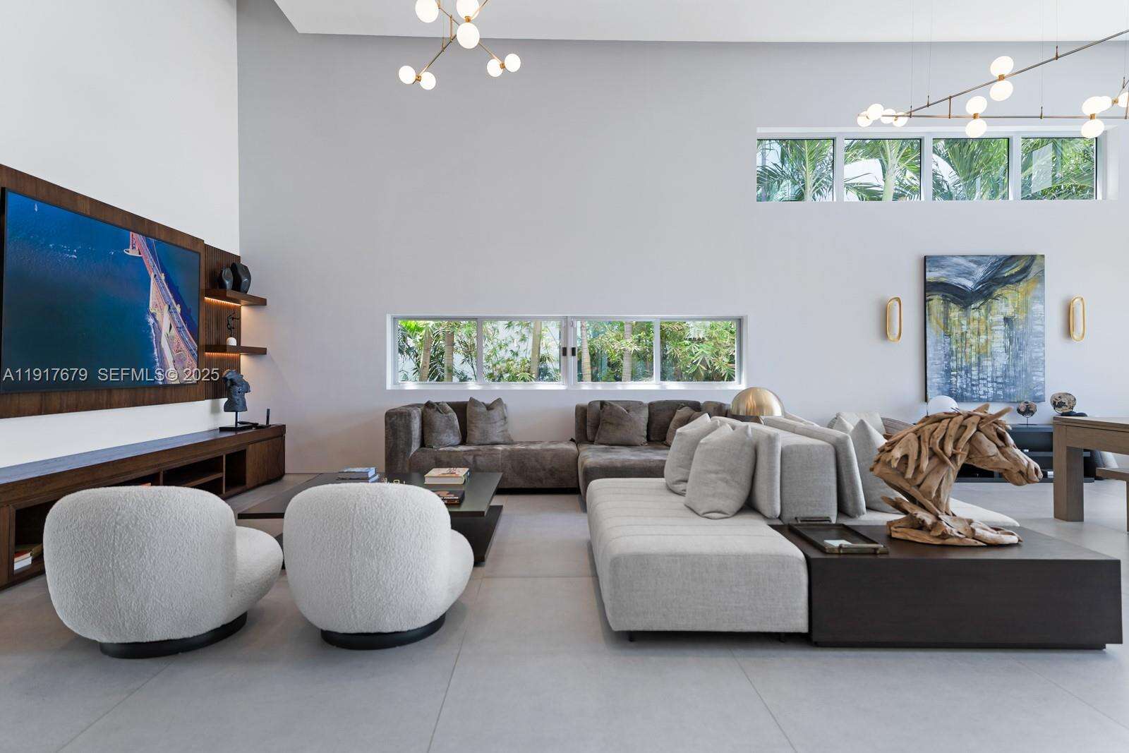 Experience the ultimate blend of waterfront serenity & modern luxury in this 5BD/5BA masterpiece, inspired by earthy sophistication. Enjoy 60' of open bay water frontage, a heated saltwater Infinity-edge pool & outdoor lounging areas. Grand open living spaces transition effortlessly to the outdoors, creating an ideal setting for entertaining. A sleek sunroom with floor-to-ceiling glass captures natural light & opens to an expansive rooftop terrace. Inside, the chef’s kitchen is outfitted with Taj Mahal quartzite, a custom island, bespoke cabinetry & Subzero/Wolf appliances. Travertine-clad walls & ambient-lit stairs frame the foyer. Primary suite features custom millwork, infinity leather-wrapped panel & steam shower. RH furnishings & curated finishes complete this one-of-a-kind residence.