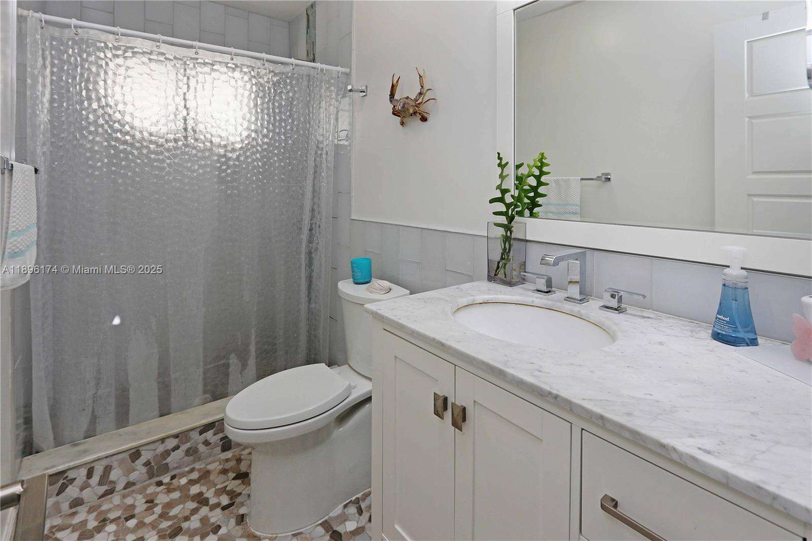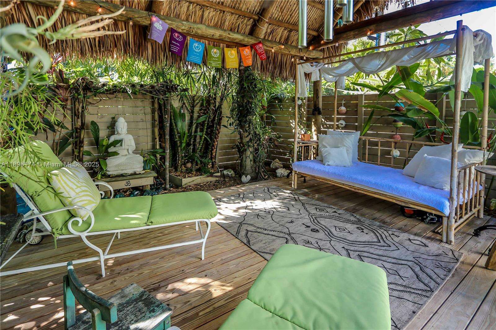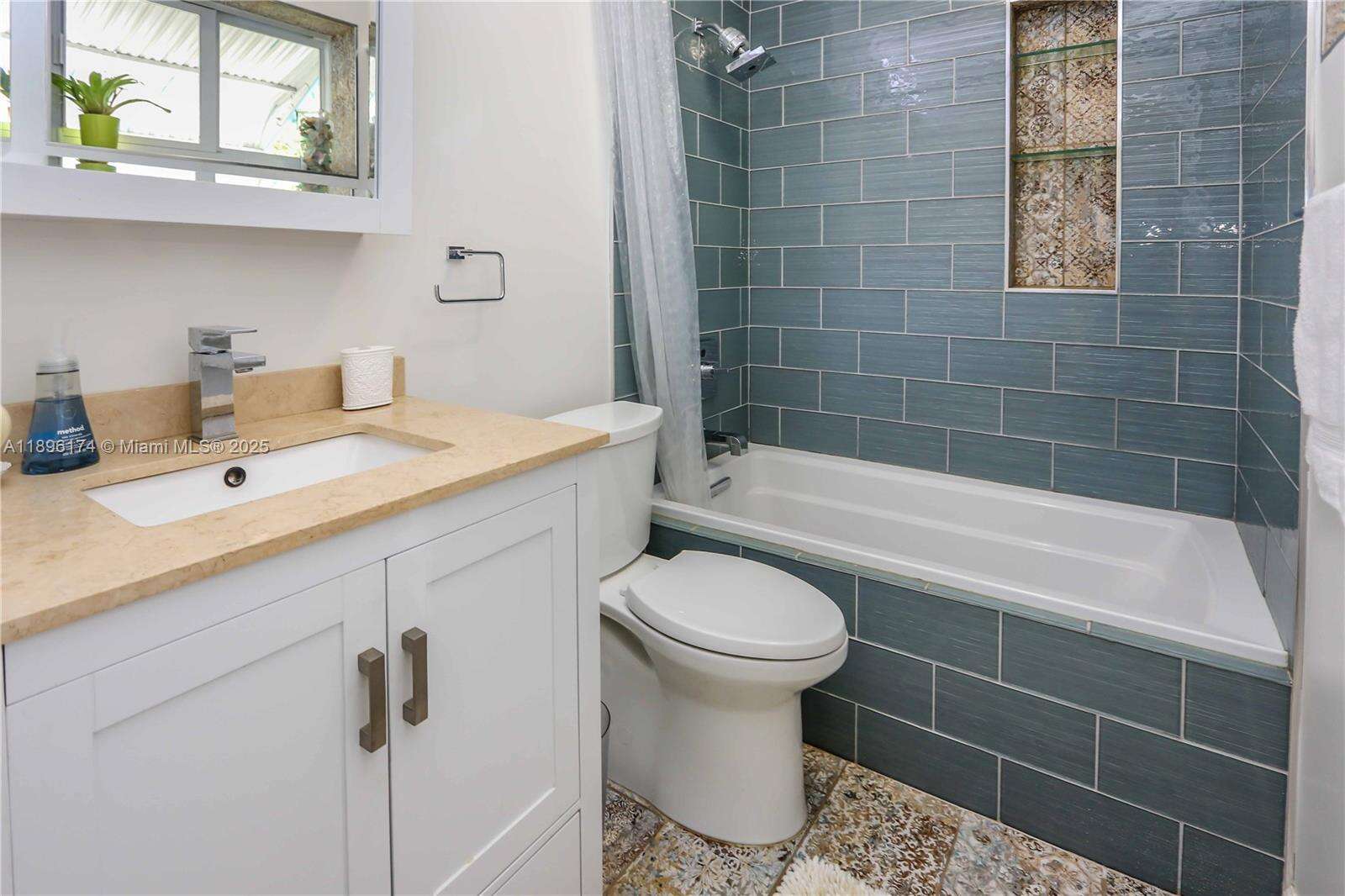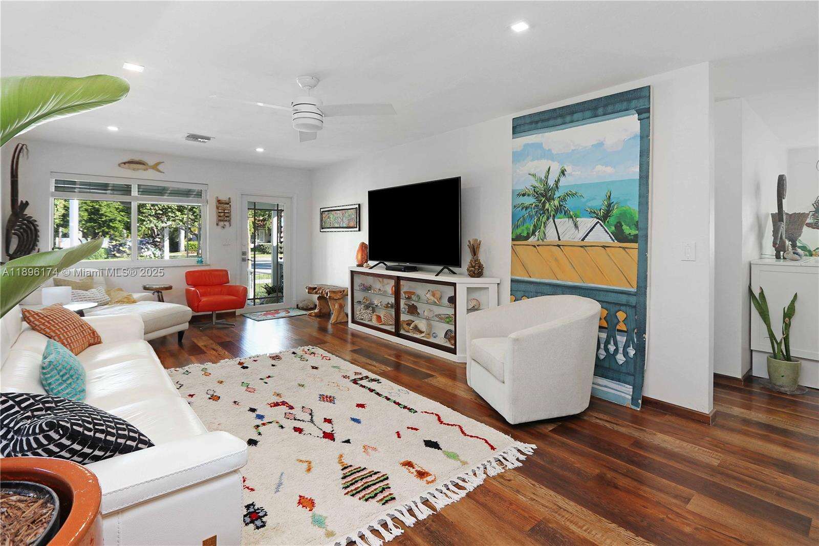 Beautifully updated 2-bed, 2-bath home with a 1-car garage! Inside features luxury vinyl plank flooring, modern lighting, and an open layout that connects the living, dining, and family rooms around a stunning central kitchen. The kitchen features quartz counters, a gas cooktop, double oven, stainless farmhouse sink, KitchenAid appliances, and soft-closing cabinetry. Both bathrooms are elegantly updated with stone floors, glass mosaic tile, and marble vanities. The spacious primary suite includes a spacious closet w/ a barn door and direct access to the fenced backyard. Enjoy outdoor living under the gazebo or on the patio, ideal for entertaining. Impact windows and doors, Bosch washer/dryer, tankless water heater. Every detail of this home feels cared for and ready to love.