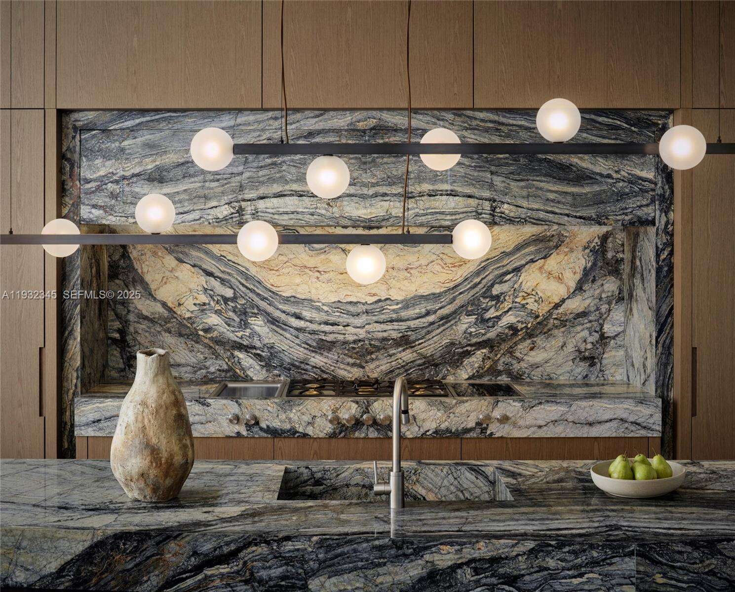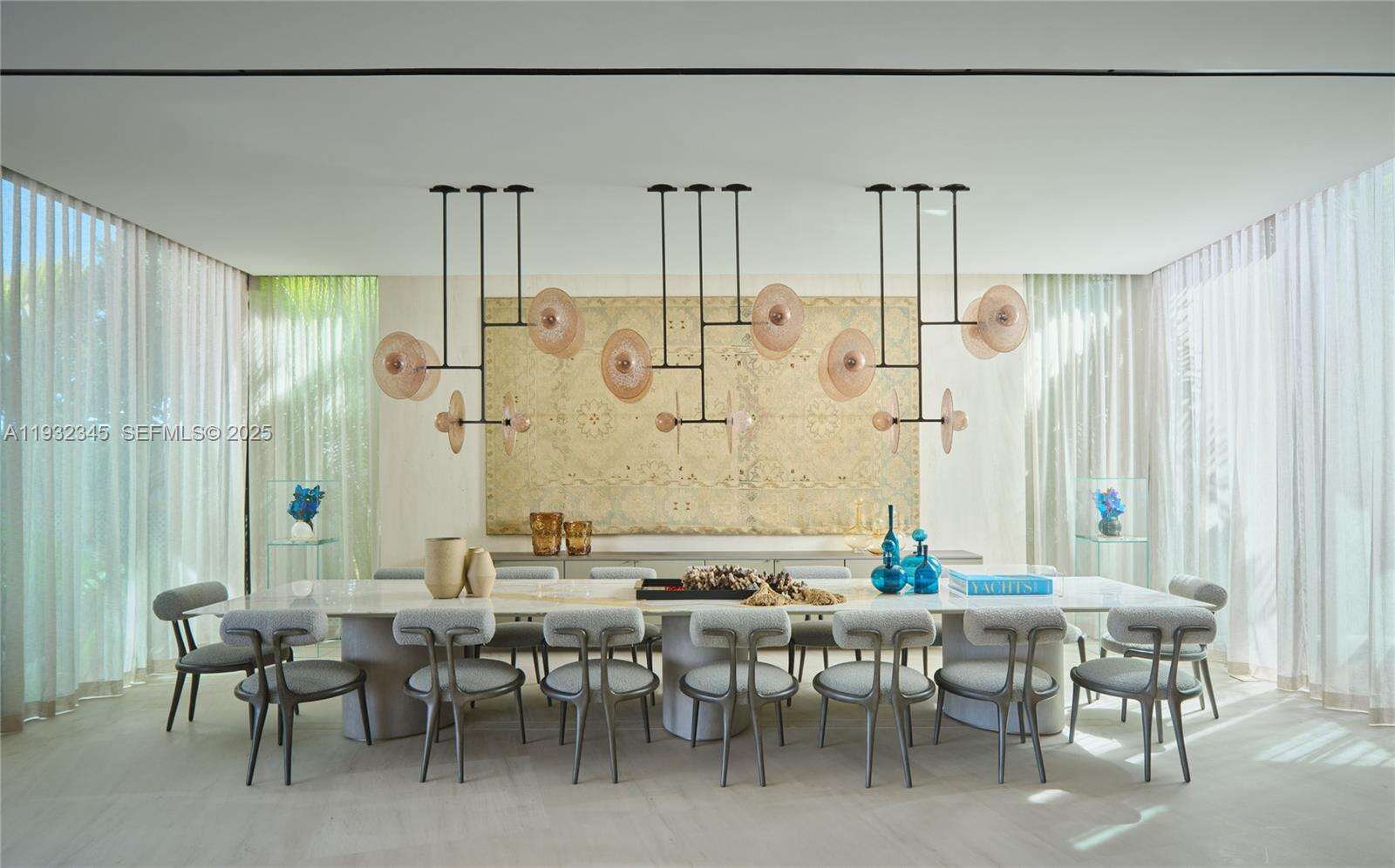 One of the most exceptional waterfront residences in Miami. This striking architectural estate offers 10,689 SF of luxurious interior living plus an additional 8,000 SF understory, featuring 7 bedrooms, 7.5 bathrooms, 12-foot ceilings, and expansive open living and entertaining spaces wrapped in walls of glass. An elevated waterfront terrace opens to a dramatic 70ft knife-edge pool and spa, summer kitchen, and extended deck with sweeping open bay and downtown skyline views, all set behind a rare 14-foot seawall. The home includes dual kitchens (display and staff), a state-of-the-art theater, private elevator, rooftop deck, and an innovative understory accommodating up to 10 vehicles. High-end finishes include Boffi kitchens and baths, Apure and Lumifer lighting, Ornare closets, and more. Situated on a 13,382-SF lot with 105 feet of prime waterfrontage, the property also features a new deep-water dock for a large yacht and a 50,000-lb boat lift.