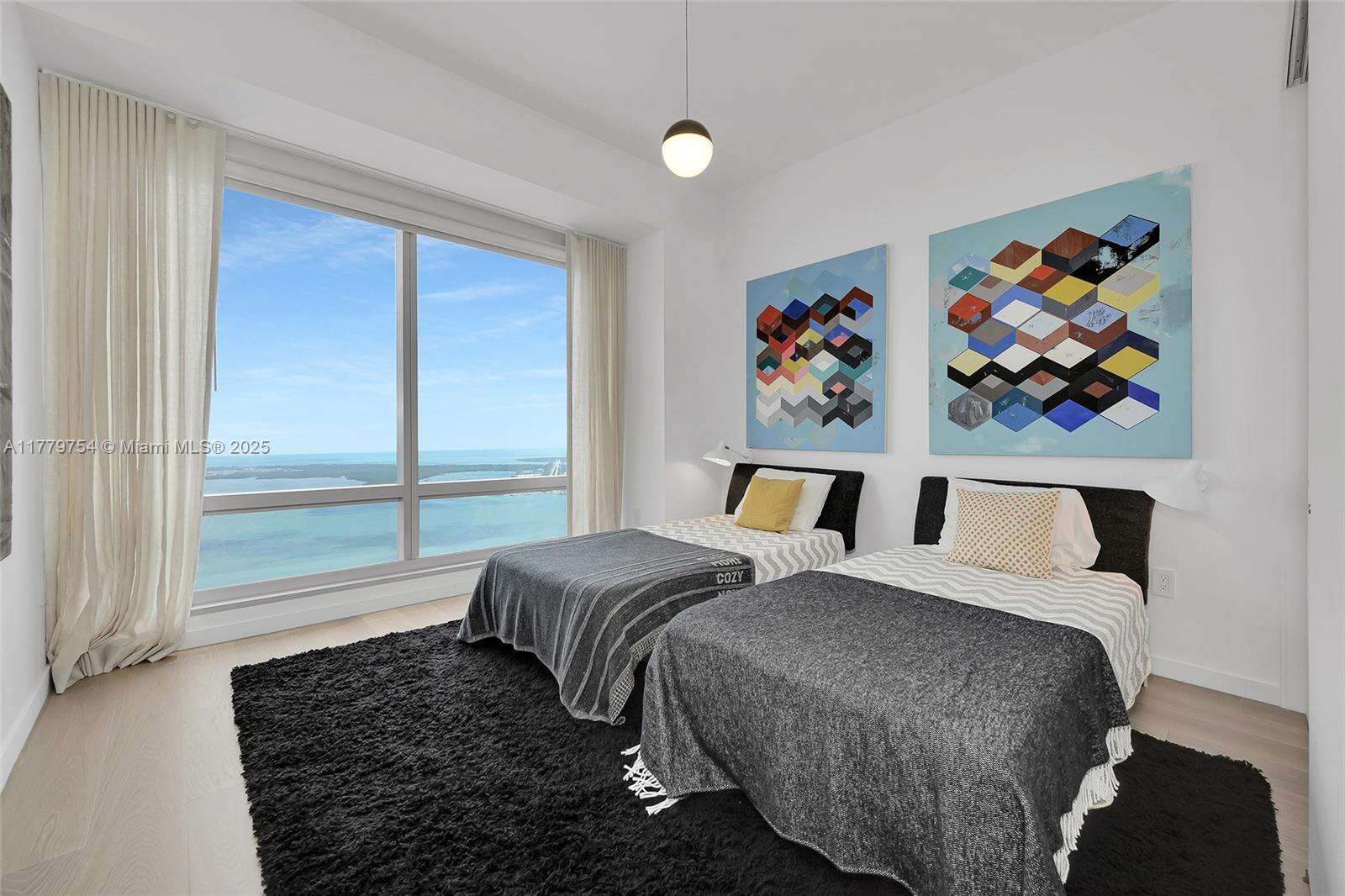 Exquisite and modern home in the sky on the 61st Floor at the exclusive and prestigious Four Seasons Residences on Brickell. Enjoy unparalleled views of Biscayne Bay, Miami Beach, Fisher Island, Key Biscayne, Atlantic Ocean and beyond from this very unique line E corner unit, rarely available. 2738 sq feet. 3 bedrooms in suite and an extra half bathroom. Featuring top of the line finishes including granite counter-tops, wood floor, Miele & Sub Zero appliances and more. Residents have access to all of the Four Seasons amenities and comforts of a 5 star building. Includes two Gym Memberships, one storage (A/C) and 2 assigned covered parking spaces.!!