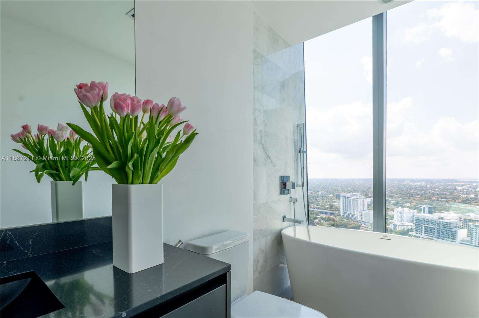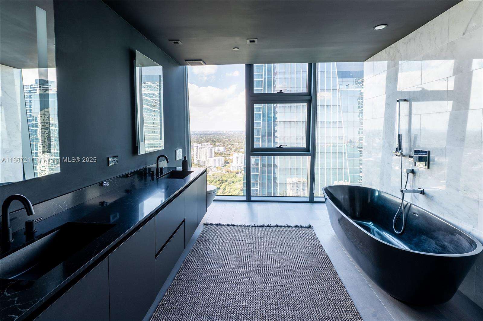SELLER FINANCING AVAILABLE. A Masterpiece in the Sky at Echo Brickell. This stunning 3,012 sqft residence combines two 2-bedroom units into a sophisticated home. It features 4 bedrooms (one used as a home office), 3.5 bathrooms, with the option to add a 4th full bath. Every inch is crafted to perfection, with high-end wood flooring, ambient LED lighting, Rimadesio wardrobes, and bespoke finishes. The 270-degree panoramic views of Brickell Avenue capture the magic of the city—breathtaking by day, dazzling by night. With FOUR assigned parking spaces, sophistication meets convenience. Unit is rented until August 31 2026.