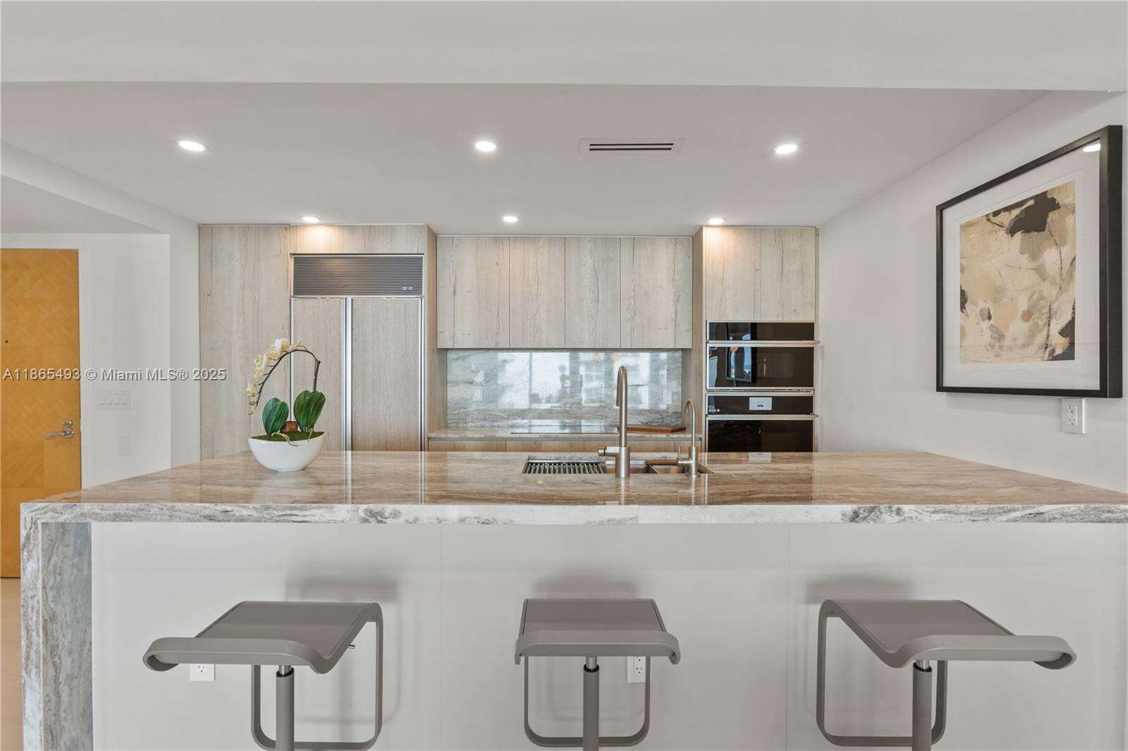 Experience unparalleled oceanfront living in this exquisitely redesigned residence by the award-winning NMR Design Group, where breathtaking ocean views greet you from every room. This stunning home features brand-new flooring and a sleek, contemporary kitchen with a quartzite waterfall island, all set in the heart of Miami Beach—a location with the highest walkability score. The spacious covered terrace acts as an outdoor living space, offering unobstructed views of the ocean and beach, perfect for relaxation or entertaining. Located in the boutique, award-winning Michael Graves Condo, this residence offers an array of upscale amenities, including private beach services, a barbecue area, a social room, climate-controlled bike and storage rooms, and a dedicated professional staff.