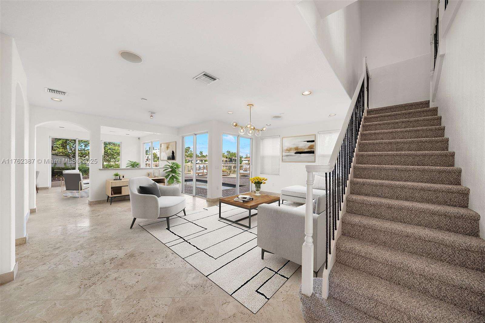 Experience the waterfront lifestyle in this two-story waterfront home, perfectly situated on the coveted bulb section of the water in Harbor Islands. Enjoy breathtaking wide-open water views from nearly every room, along with the convenience of a private dock. This 4-bedroom, 3-bathroom residence includes an additional office/sitting room within the primary suite, ideal for added comfort and flexibility. The home features impact windows and doors, along with a new roof installed in 2018. Outside a spacious deck, pool, and panoramic water views create an idyllic setting for relaxation and entertaining. Private boat dock for boating enthusiasts, offering seamless access to the water. All within the exclusive gated community of Harbor Islands—where luxury and waterfront living meet.