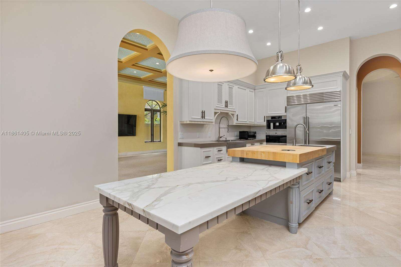 Tucked away on the tip of prestigious Williams Island, Villa Flora is a private enclave of just 14 stately villas. This 5,628 SF two-story residence features 4 bedrooms + office, 3.5 baths, an elevator, private resort-style pool, generator, 2-car garage, and parking for up to 6 cars. The updated kitchen, soaring ceilings, spacious custom built-in closets, and open layout offer refined, elegant living. Enjoy a lushly landscaped backyard and covered terrace—perfect for entertaining—along with the world-class amenities of the Island Club, including concierge, state-of-the-art gym, spa, dining, tennis, and marina access for vessels up to 120 ft with direct deep-water Intracoastal and Atlantic Ocean access.
