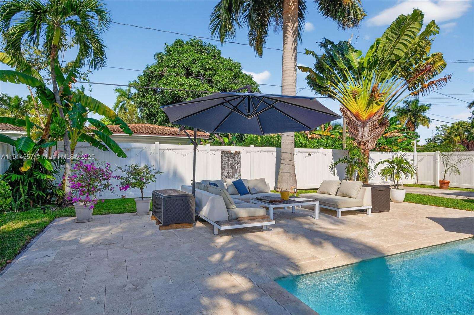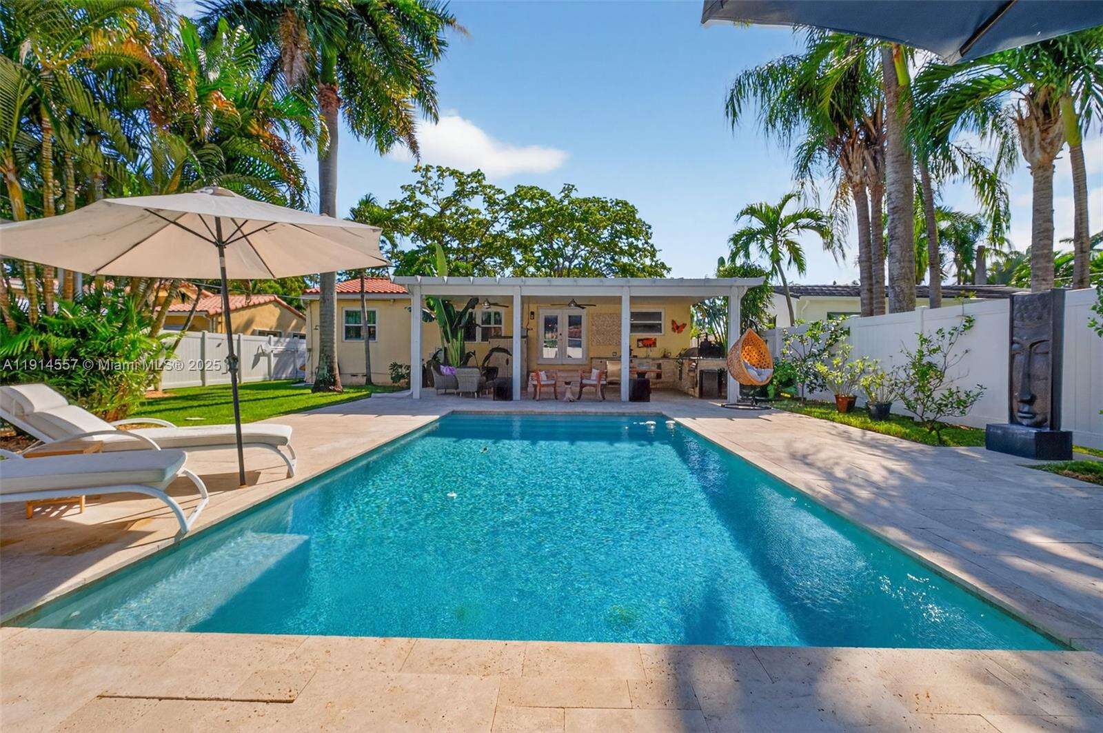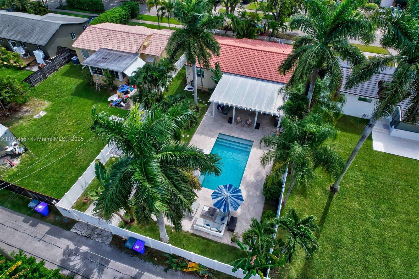 This stylish 3BD/2BA plus Den home brings Hollywood living just minutes from the ocean and Young Circle. Classic Florida charm meets modern comfort with wood floors, renovated baths, full impact windows and doors, and a newer roof. The 2016 saltwater pool creates a true tropical oasis with lush landscaping, citrus trees, a summer kitchen, a covered lounge, and a fully fenced yard. Private alley access leads to a motorized gate carport. City gas powers the range, dryer, and tankless water heater. A perfect blend of vintage charm and coastal living, where every day feels like a beach day. Wonderful parks nearby for easy strolls and kid and dog friendly fun. Very friendly and sought after neighborhood with highly rated schools close by.