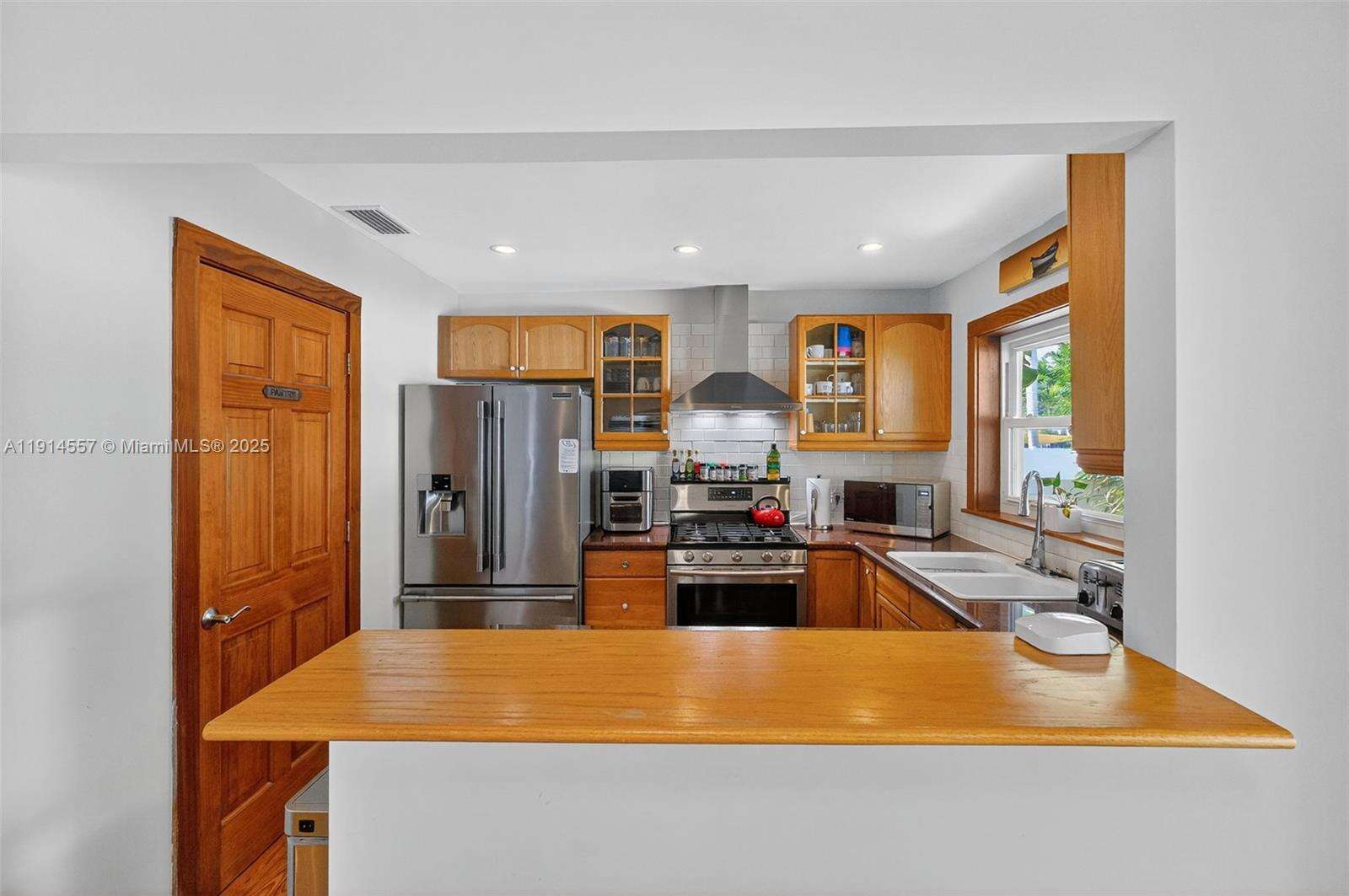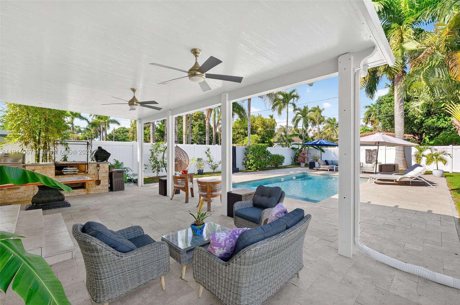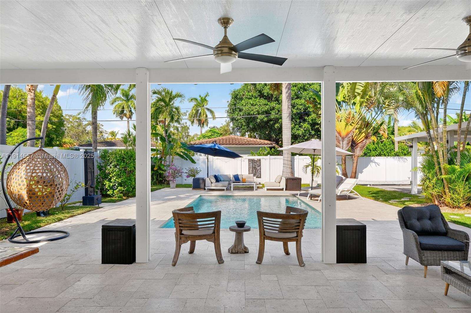 This stylish 3BD/2BA plus Den home brings Hollywood living just minutes from the ocean and Young Circle. Classic Florida charm meets modern comfort with wood floors, renovated baths, full impact windows and doors, and a newer roof. The 2016 saltwater pool creates a true tropical oasis with lush landscaping, citrus trees, a summer kitchen, a covered lounge, and a fully fenced yard. Private alley access leads to a motorized gate carport. City gas powers the range, dryer, and tankless water heater. A perfect blend of vintage charm and coastal living, where every day feels like a beach day. Wonderful parks nearby for easy strolls and kid and dog friendly fun. Very friendly and sought after neighborhood with highly rated schools close by.