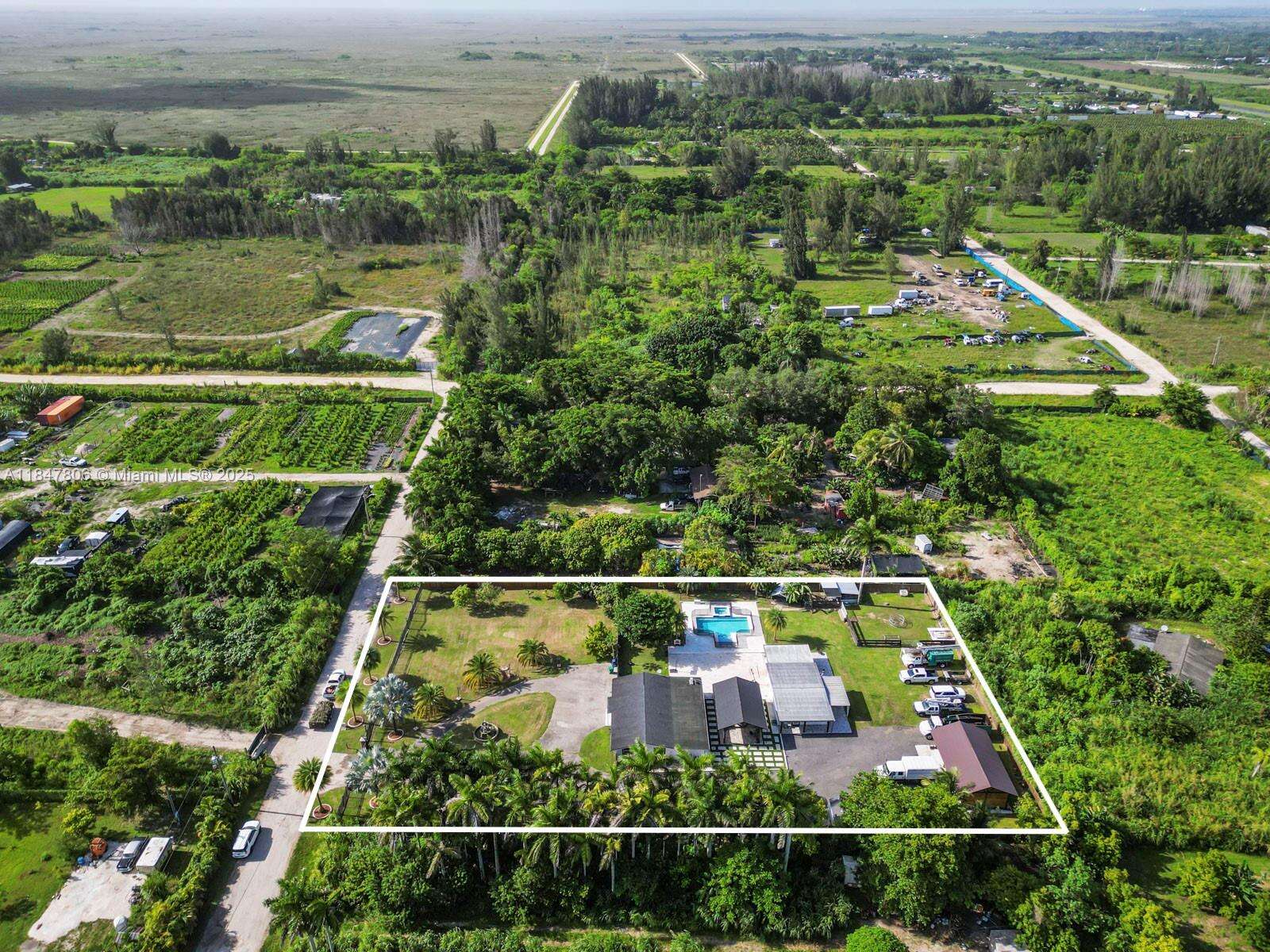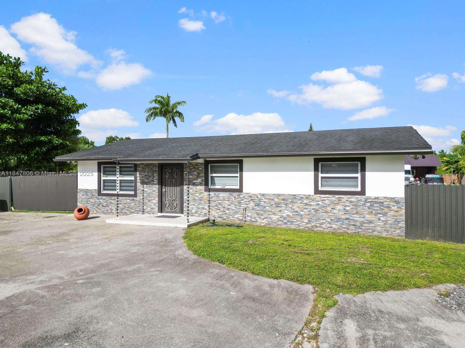 Welcome to this beautifully renovated property. The main residence features 4 bedrooms & 2 bathrooms across 1,885 sq ft, complemented by a fully upgraded guest house offering 2 bedrooms & 1 bathroom within 1,400 sq ft., ideal for multi-generational living or guest accommodations. The home showcases high-end finishes, including quartz countertops, natural stone accents, stainless steel appliances, and modern LED lighting. Impact-resistant doors & windows, electric blackout and zebra blinds. Outdoor living is unparalleled, featuring a resort-style pool (equipped with heating system) with a dedicated children’s area and Jacuzzi, covered ranch-style patio with an insulated roof—perfect for entertaining. Chef-style outdoor kitchen with BBQ. Welcome to your dreamed oasis! *** Conveniently located just 7 minutes from the new location of the famous KNAUS BERRY FARM, one of South Florida’s most iconic spots for the best cinnamon rolls, delicious shakes, baked goods & more ***