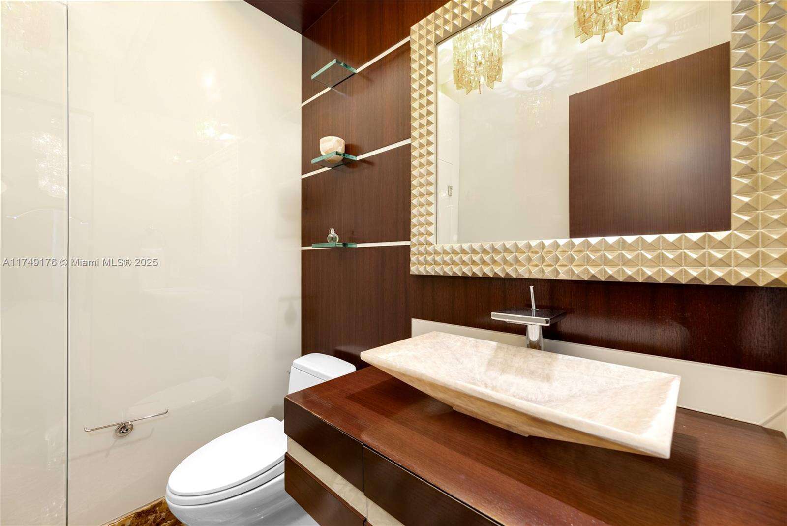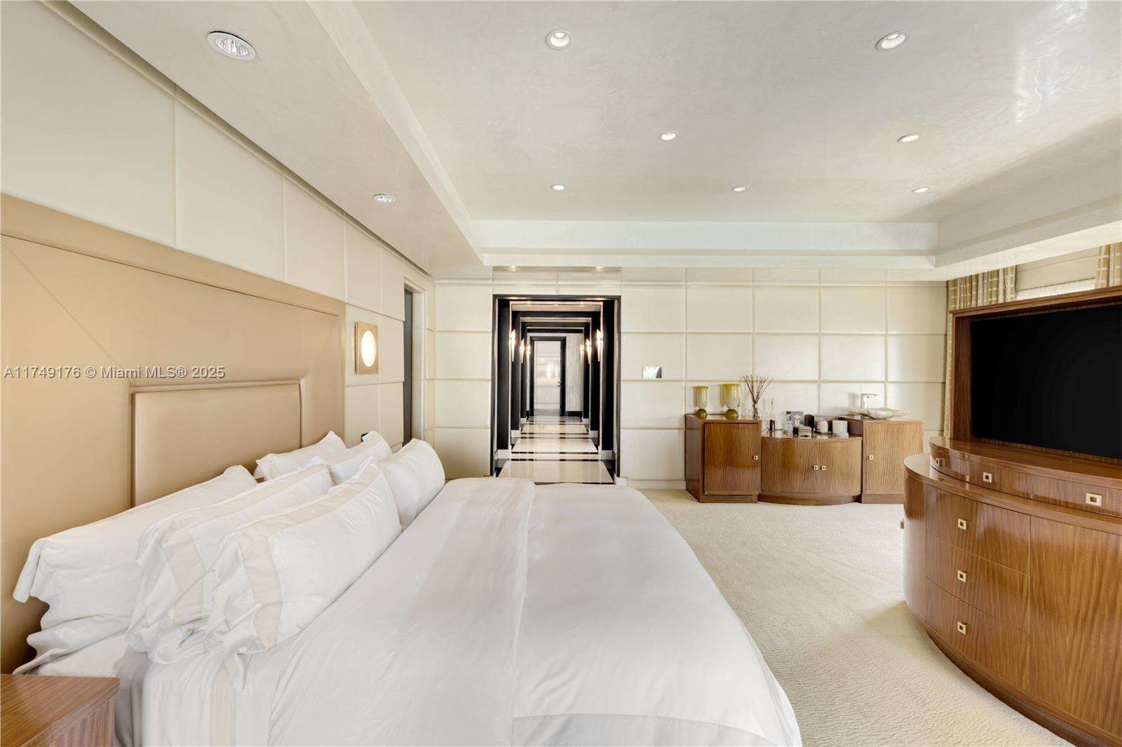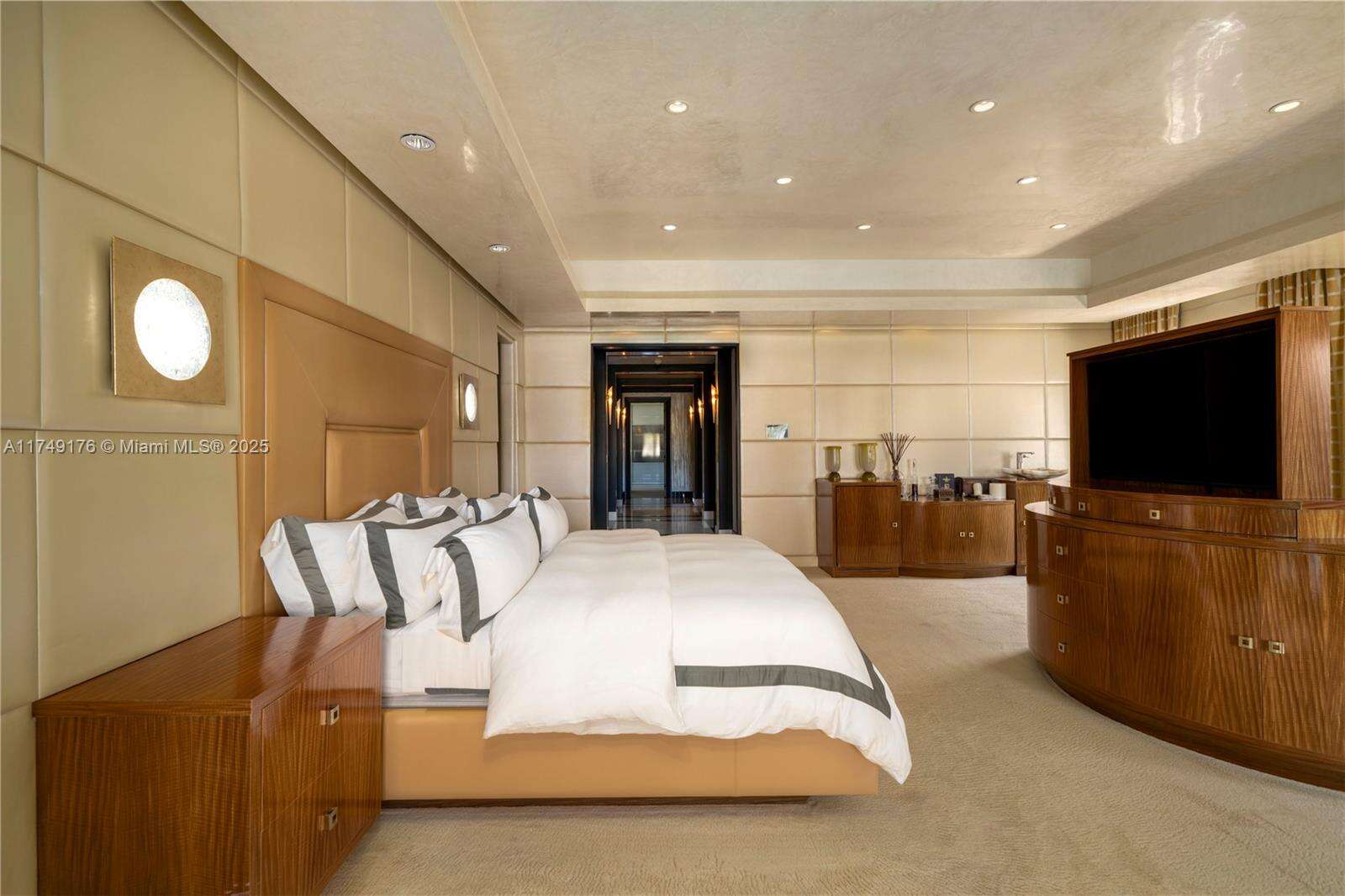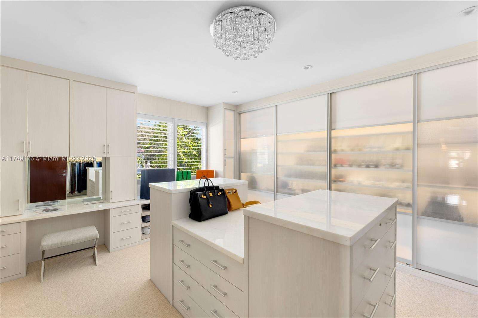 Prepare to be swept away by architectural artistry as this 13,924 SF estate on Sunset Island II debuts on the market for the first time ever. Embrace an opulent lifestyle with 9 beds, 9.5 baths, and a grand 2-story guest house. Uniquely crafted with a rose onyx living room, a Napoleon red marble speakeasy bar, chef’s dream kitchen with walk-in freezer, a regal dining hall, stunning custom walls, and an elevator. The generous primary suite features a private office, sitting area, a wet bar, and a private balcony with water views. An entertainer’s paradise with a bougainvillea-lined courtyard, fountain, summer kitchen, pool with spa, and 100' of waterfront with a private dock. This estate truly speaks for itself as a once-in-a-lifetime opportunity in a prime Miami Beach neighborhood.