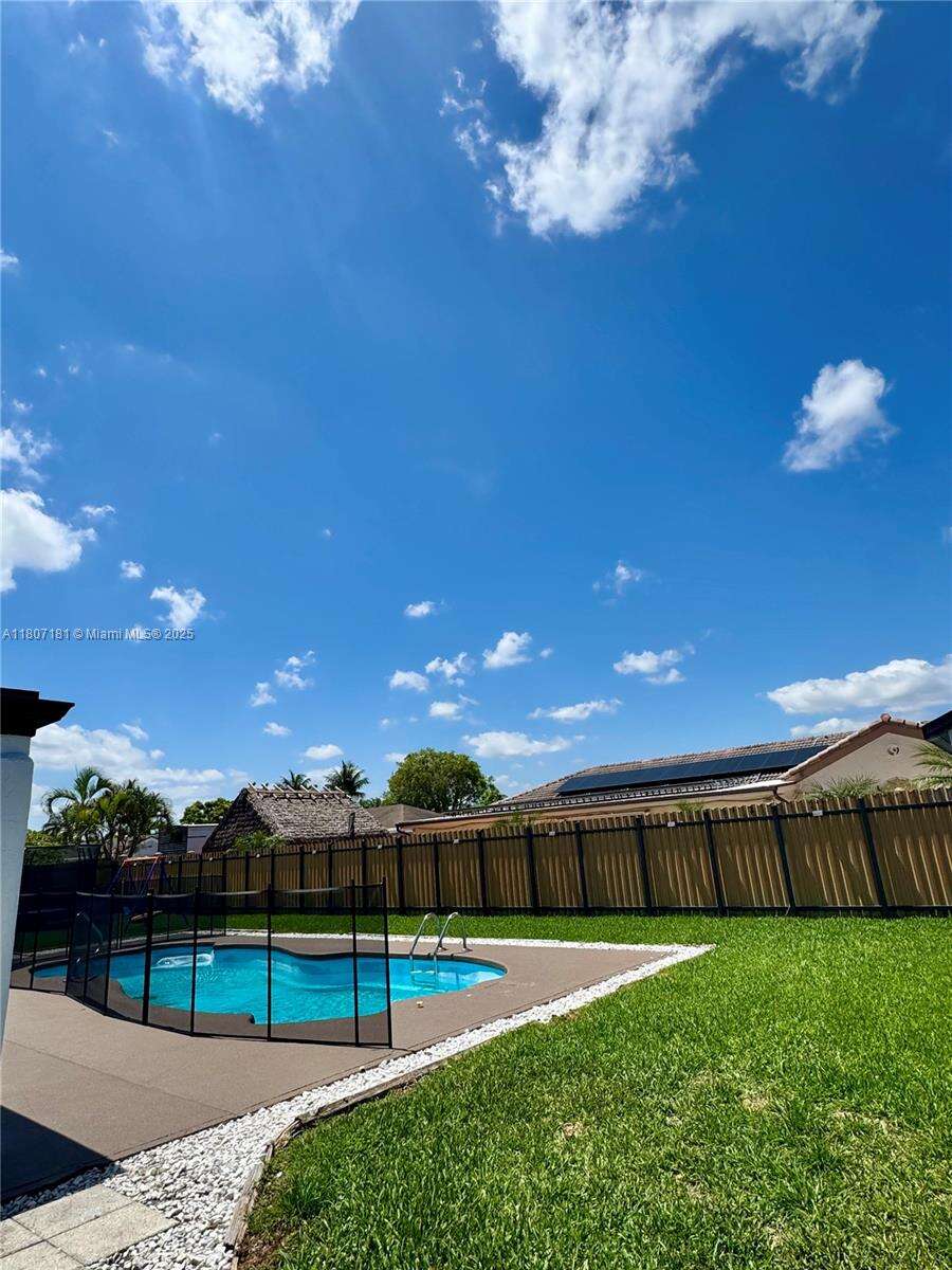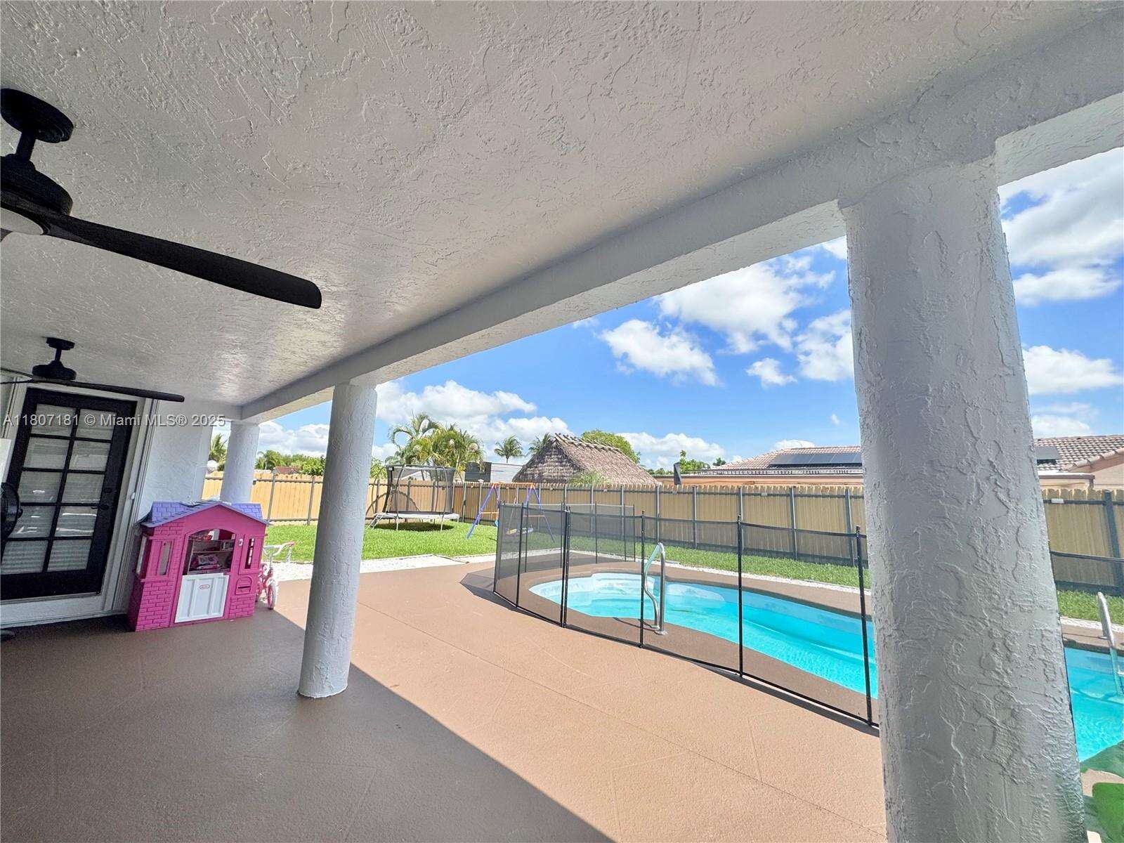 Look no further! Motivated seller! Beautiful 5BD/2BA pool home with 2-car garage in a highly sought-after neighborhood. New kitchen, bathrooms, exterior paint, lighting, and rear flat roof. Spacious layout includes formal living, dining, and family rooms with French doors opening to a screened pool/patio—perfect for entertaining. Primary suite features large ensuite, walk-in closet, and pool access. Home has tile, laminate, and carpet flooring, plus volume ceilings. 4-yr-old A/C (warranty), new drain field, RV/generator plug, well water system, accordion shutters, Ring doorbell, aluminum fencing, carport, shed, and more. 3,151 SF on 12,500 SF lot.