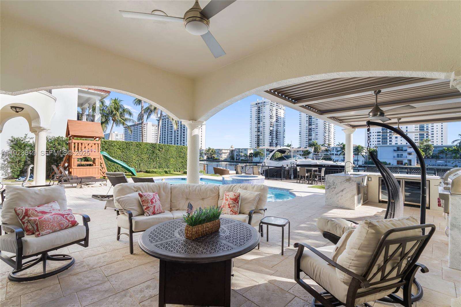 Experience Luxury Waterfront Living at 1555 Windjammer Way, Hollywood, FL! This exceptional waterfront estate offers nearly 5,000 sq ft of refined elegance and a lifestyle only South Florida can provide. Featuring a brand-new roof installed in November 2025, this home offers peace of mind and immediate equity. Situated on a prime waterfront lot, the property includes a recently extended private dock with boat lift, providing direct Intracoastal access and easy ocean access—perfect for boating, sunset cruises, and waterside dining. Enjoy meals in the state-of-the-art outdoor summer kitchen with breathtaking water views. Inside, the home boasts expansive living areas with volume ceilings, marble and wood flooring, a movie room, and a chef’s kitchen with dual gas stoves, stainless steel appliances, a large pantry, and quartz countertops. Five bedrooms and six-and-a-half bathrooms ensure comfort for family and guests. The outdoor spaces feature a sparkling pool, hot tub, terraces, balconies, and stunning water vistas. Additional features include storm-proof windows and deep-water access with no fixed bridges. Community amenities include a marina clubhouse, parks, tennis and basketball courts, fitness center, and gated security. Less than 10 minutes from Hollywood Beach, this home is a rare opportunity to own a luxury waterfront estate ideal for entertaining and coastal living.