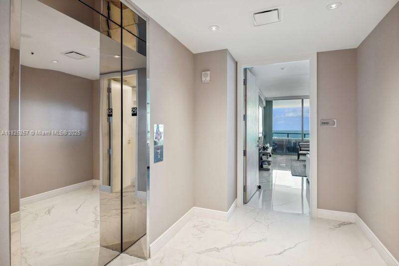 Welcome to Unit 2902 a flow-through, oceanfront luxury retreat on the 29th floor with stunning direct Atlantic and intracoastal views. Featuring 3 bedrooms with full en-suite bathrooms and a powder room for guests. The spacious 2,137 sq. ft. of elegant living space with marble flooring is complemented by two balconies: one ocean-facing terrace for sunrise views and another overlooking the city skyline for sunsets, totaling approximately 325 sq. ft. Floor to ceiling windows and private elevator lobby, Italian cabinetry, stone countertops with Gaggenau appliances. Prime beachfront living within minutes of Aventura Mall and Bal Harbour Shops, and 30 minutes to MIA or FLL airports. Motivated Seller!