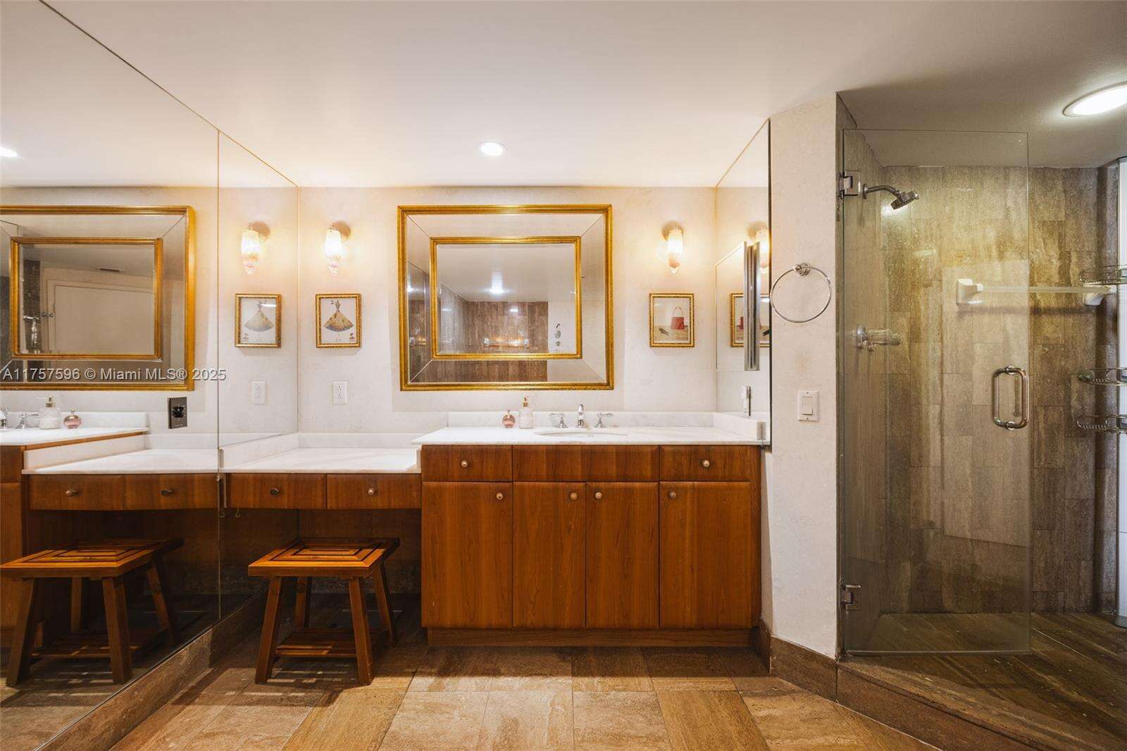 Enjoy beautiful Biscayne Bay views from this warm and welcoming 2 Bed / 2 Bath plus den/office, with split floor plan. Living room and second bedroom open onto bright, spacious balcony. Primary bedroom features double en-suite bathrooms and additional, private balcony. Take advantage of all that elegant Villa Regina has to offer, including complimentary valet for guests, large bay-view pool, outdoor hot tub, barbeque, private marina, state-of-the-art gym with steam and dry heat spas, multiple party rooms, and children's playroom. Two assigned, covered parking spaces. Completed 40-year recertification No special assessments. Situated in the tree-lined residential section of Brickell, within walking distance to shops and restaurants of Mary Brickell Village and Brickell City Center.