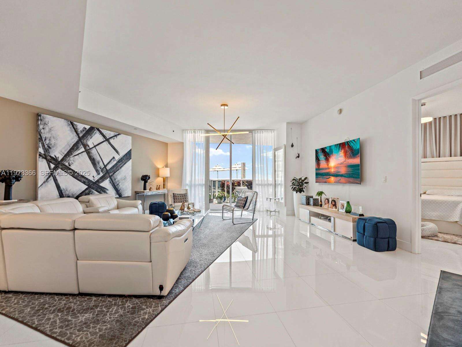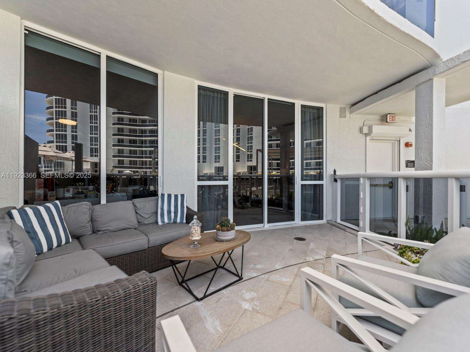 Luxury two-bedroom, two-bathroom oceanfront lanai condominium offering 1850 square feet of living space and features an oversized private terrace with direct access to the pool deck. Resembling a beach house, it boasts a generously high ceiling living room with views through 10-foot-to-ceiling windows. The spacious master bedroom with an en-suite bathroom, a modern kitchen, Exclusive beachfront amenities include private beach chairs, an oceanfront gourmet restaurant with on-demand delivery to your beach chair, an opulent clubhouse, a state-of-the-art fitness center, his and her health spas, two lap pools with attendants, valet service for two cars accessible via an on-call app, and a business center. Additionally, the property features a newly and spectacular renovated patio and pool area.
