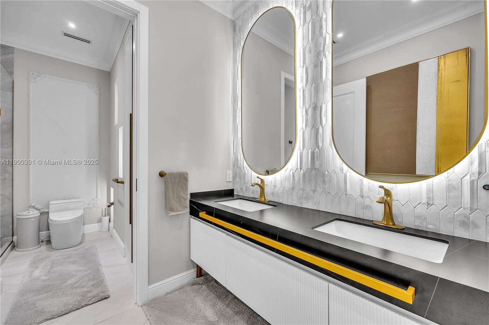 Experience the epitome of waterfront luxury living in this exquisitely furnished designer residence. Featuring 5 bedrooms and 4 bathrooms across more than 3,400 sq ft of refined interiors, this home showcases soaring ceilings and sophisticated finishes throughout. The detached guest house offers a private retreat. Enjoy serene water views from the oversized lot, complemented by a beautifully landscaped backyard and a heated pool—creating the perfect resort-style comfort.