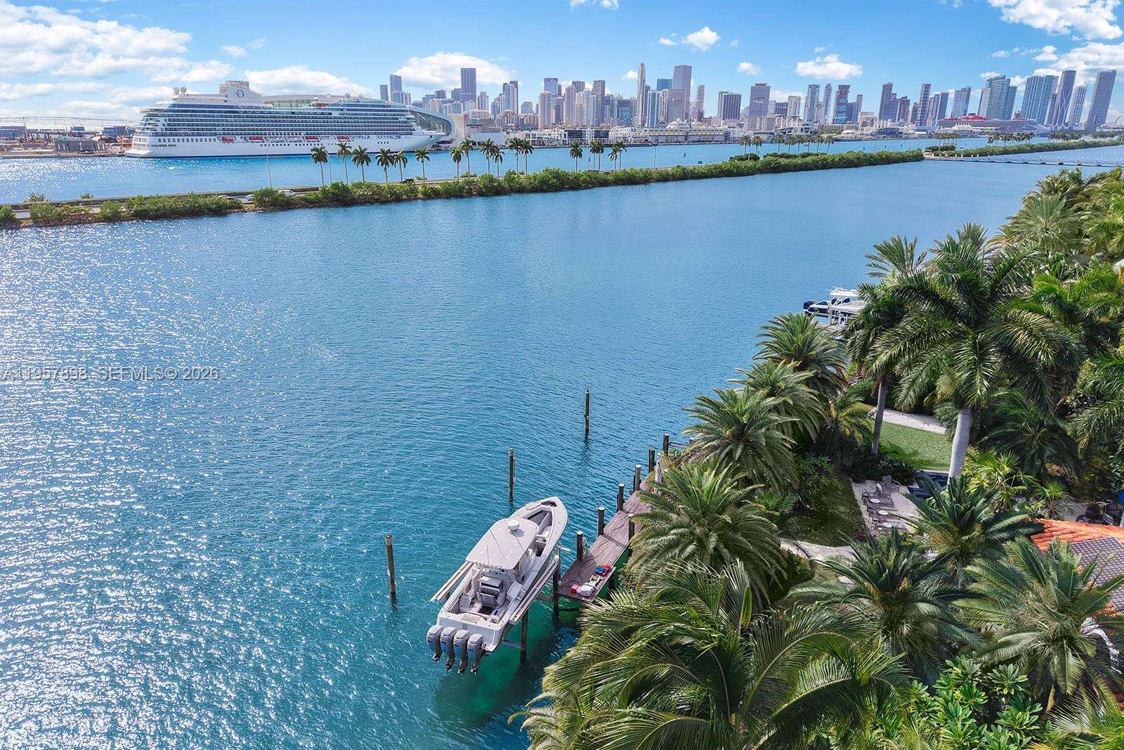 Step Inside With Me! This Palm Island Estate spans over 35,000 SF of prime waterfront land with an extraordinary 220 linear feet on Biscayne Bay. 16 Palm is a monumental parcel of true magnitude offering the potential to enhance the existing Mediterranean Revival home (see renderings) or create a new 17,500 SF modern mansion. The choice is yours! A trophy residence can be achieved here within one of Miami Beach’s most exclusive gated island communities. The present-day home, renovated in 2009, welcomes you with sun-filled interiors, lush courtyards, and grand entertaining spaces. Additional amenities elevate the residence with a theater, gym, dual steam rooms, and a wine cellar. With Southeast exposure and captivating downtown skyline views, the site allows for a visionary new construction or a significant expansion of the existing structure. Live minutes to South of Fifth and in close proximity to Downtown Miami while enjoying Palm Island's rare amenities: playground, tennis and basketball courts.
