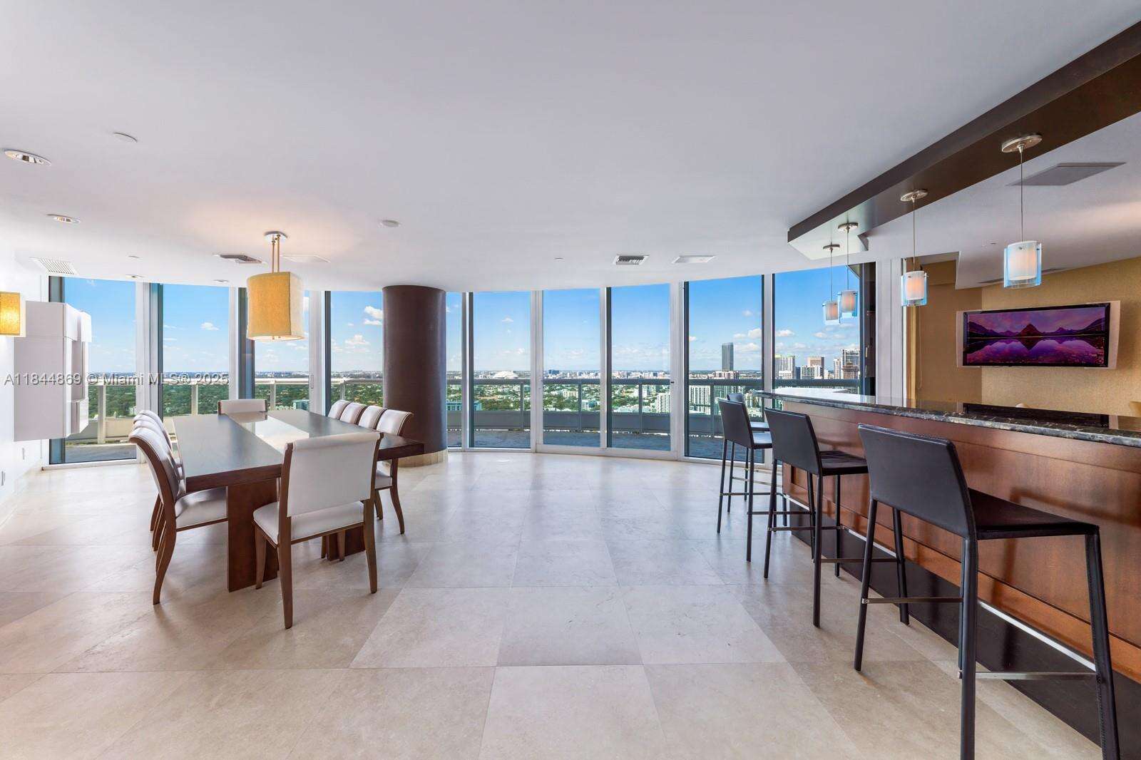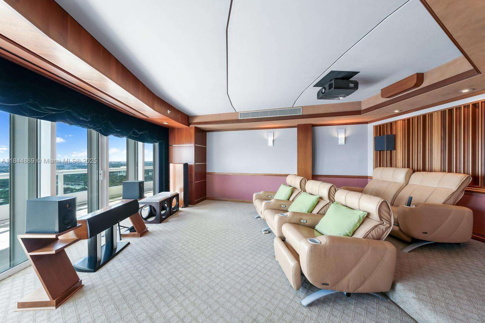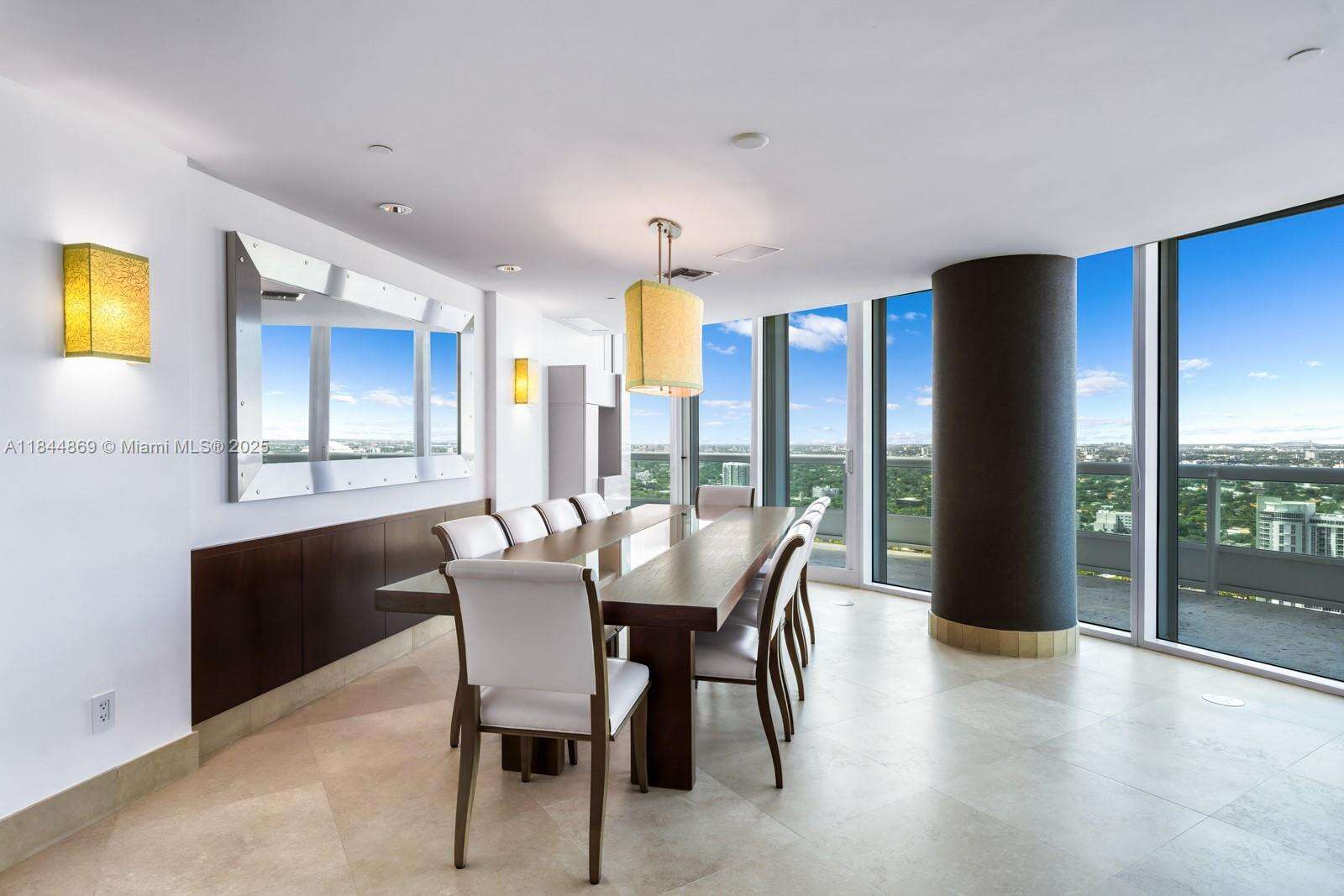 Discover this stunning 2-story corner residence at the iconic Santa Maria in Brickell. This sky-high home features an expansive wraparound terrace with sweeping ocean and bay views. Enter through a private foyer to walls of glass framing dazzling water vistas, and entertain with ease across multiple living and gathering spaces. The gourmet kitchen, with Gaggenau and Sub-Zero appliances, flows seamlessly into the dining area. The lavish primary suite offers a walk-in closet and spa-like bath with stone finishes, rainfall shower, and jacuzzi tub. Additional highlights include a soundproof movie theater, versatile den, high-end finishes, 3 parking spaces, storage, and more. Residents also enjoy newly reimagined amenities including a state-of-the-art fitness center, pool, tennis court, & more.