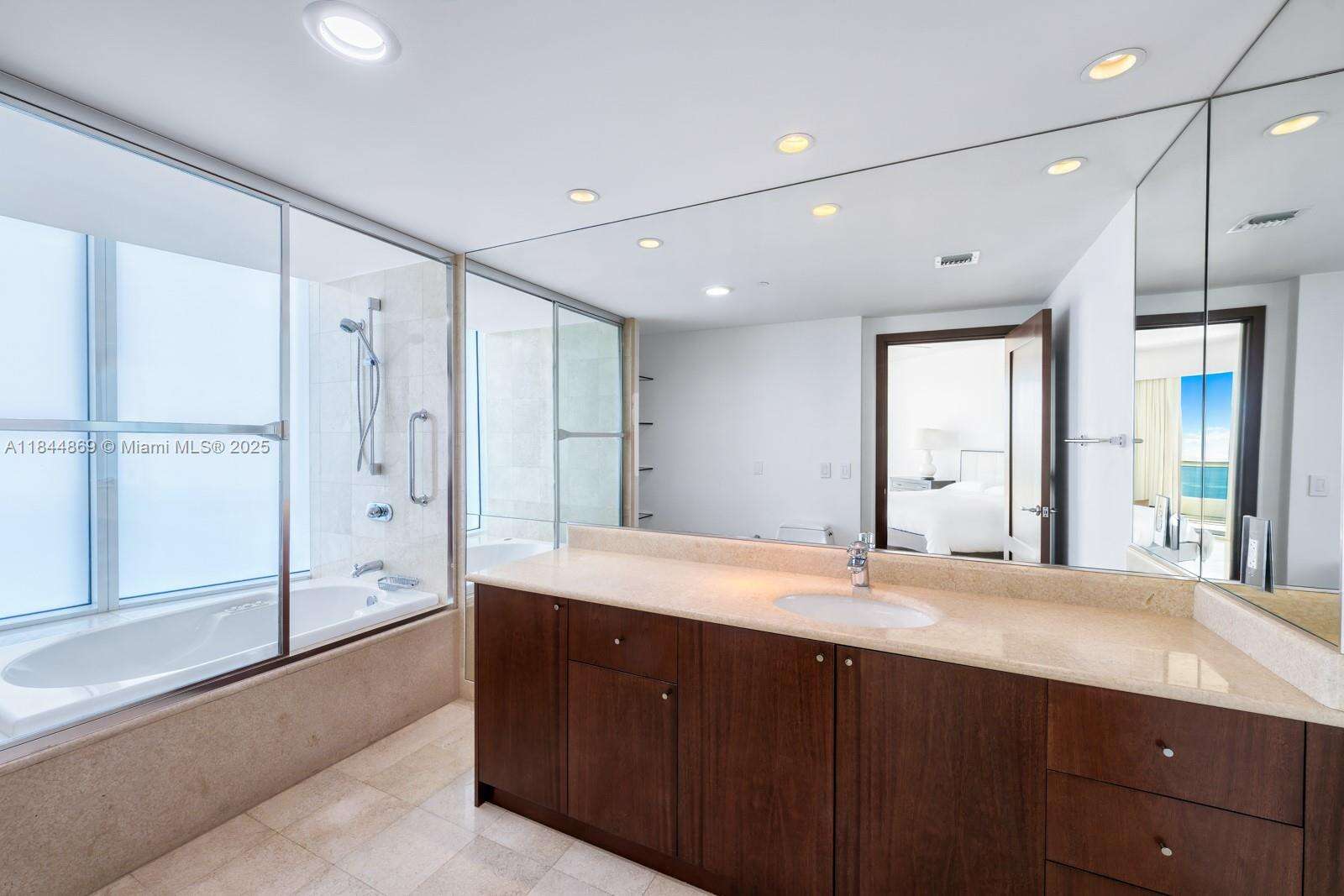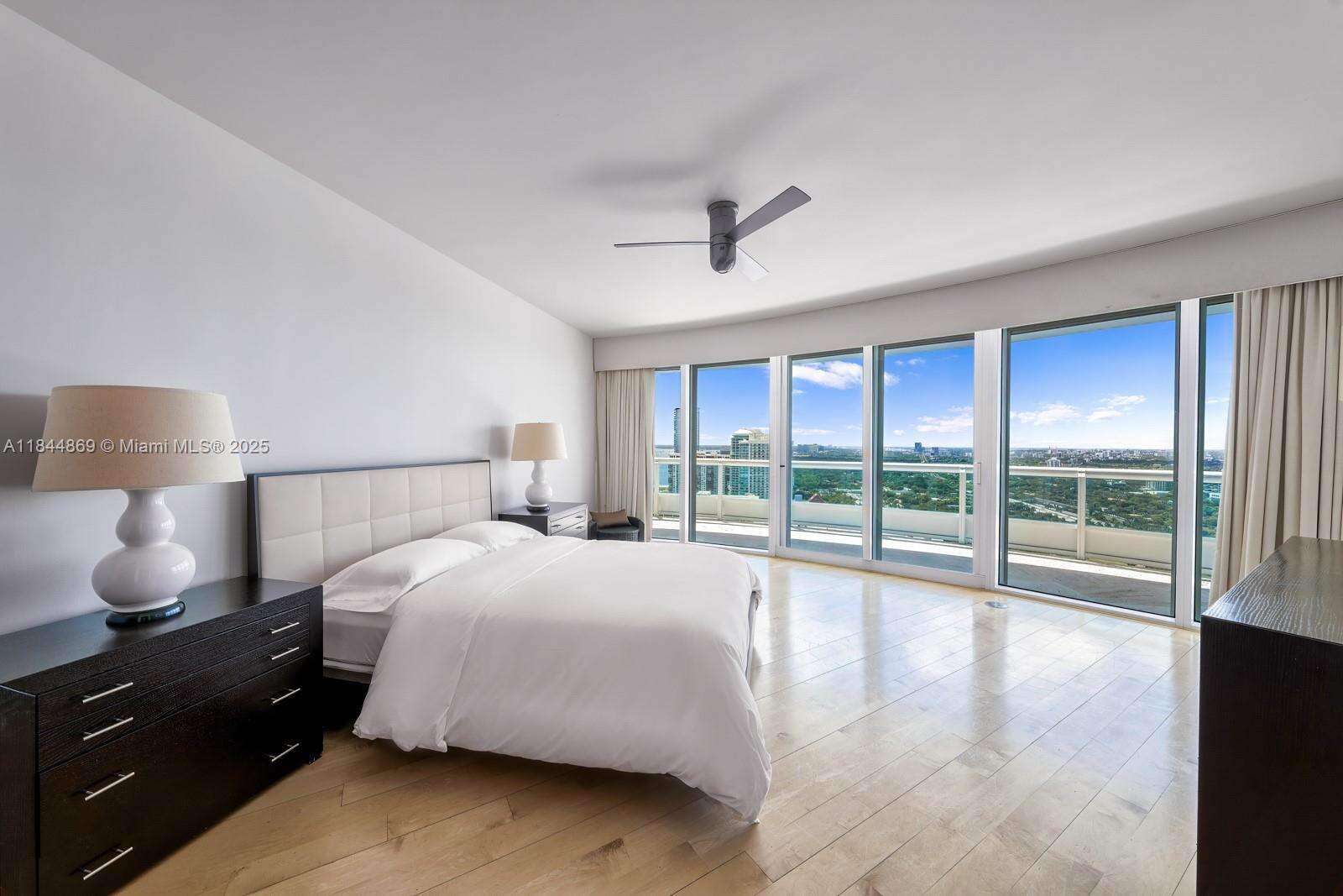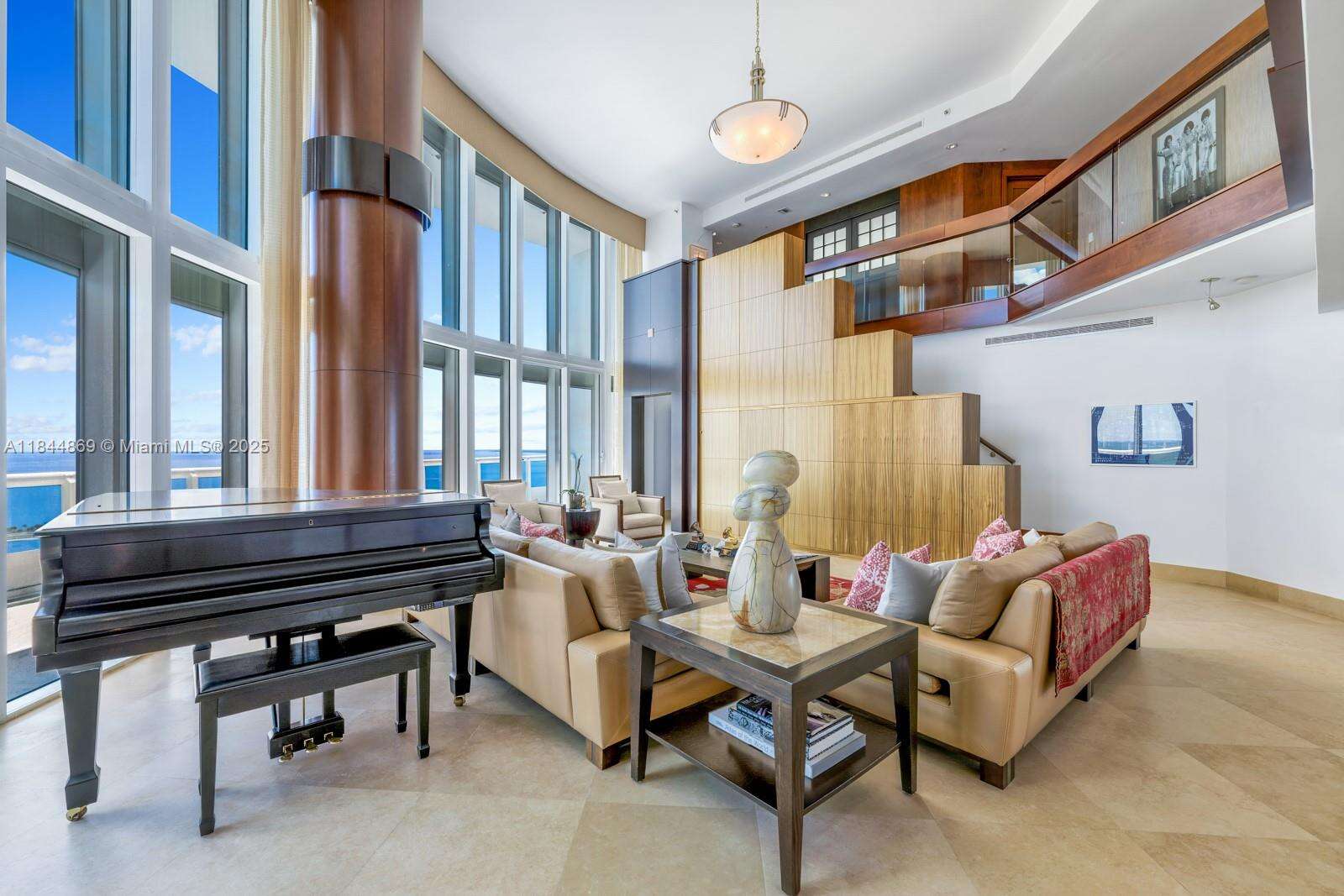 Discover this stunning 2-story corner residence at the iconic Santa Maria in Brickell. This sky-high home features an expansive wraparound terrace with sweeping ocean and bay views. Enter through a private foyer to walls of glass framing dazzling water vistas, and entertain with ease across multiple living and gathering spaces. The gourmet kitchen, with Gaggenau and Sub-Zero appliances, flows seamlessly into the dining area. The lavish primary suite offers a walk-in closet and spa-like bath with stone finishes, rainfall shower, and jacuzzi tub. Additional highlights include a soundproof movie theater, versatile den, high-end finishes, 3 parking spaces, storage, and more. Residents also enjoy newly reimagined amenities including a state-of-the-art fitness center, pool, tennis court, & more.