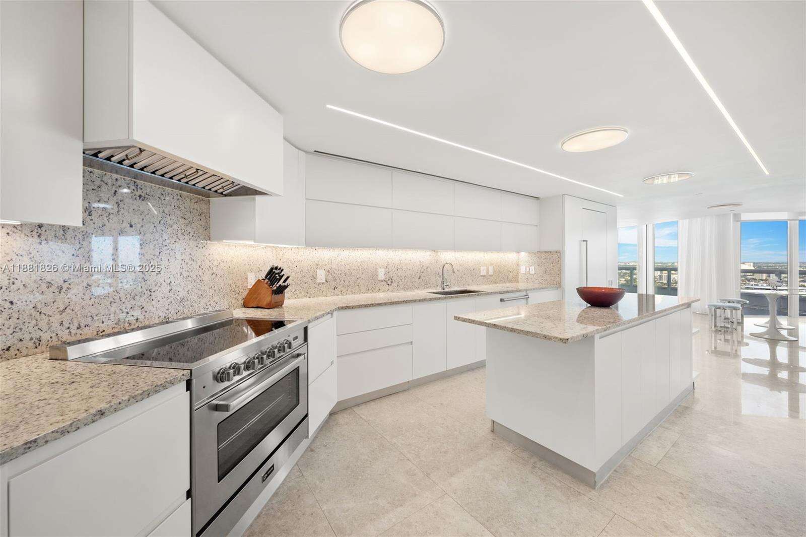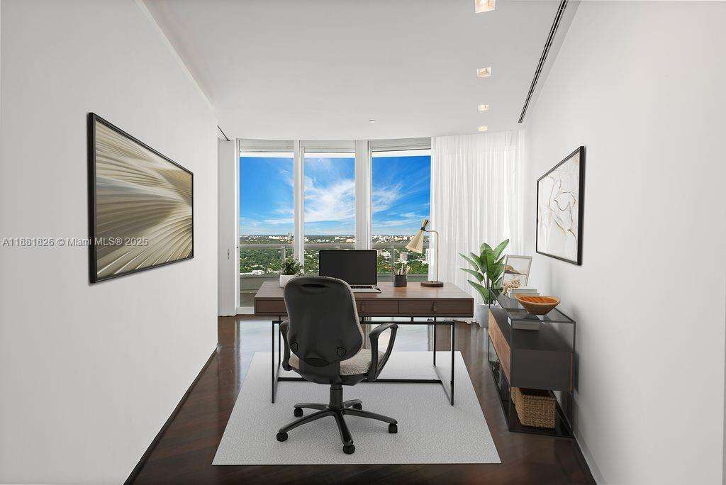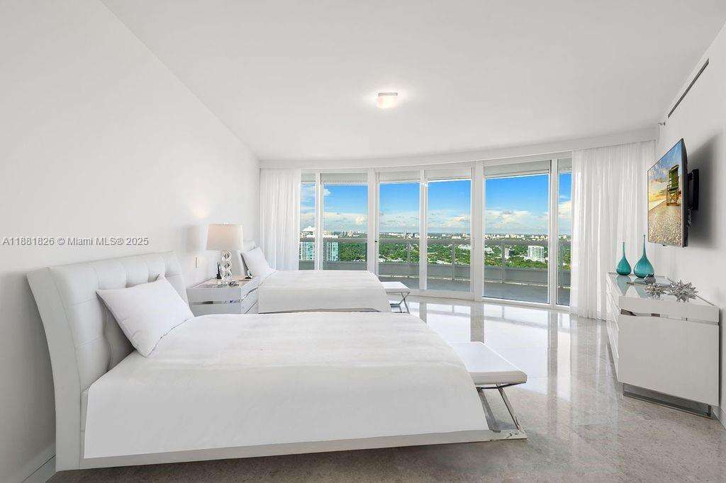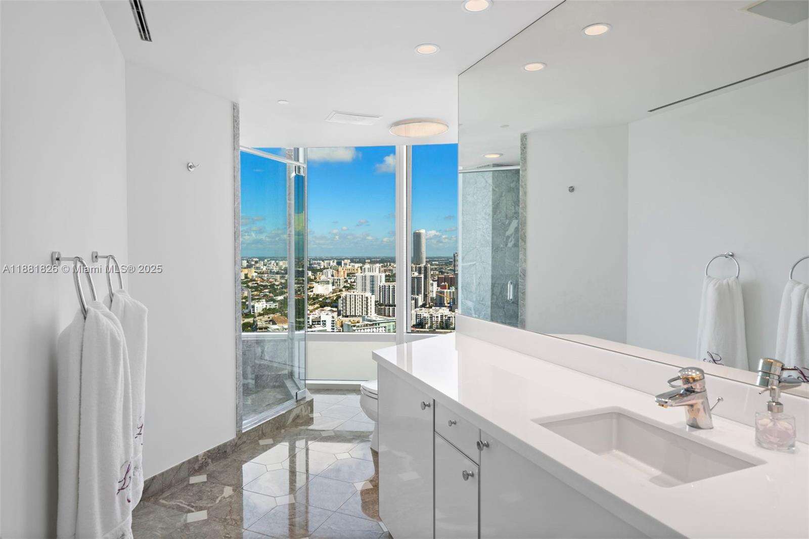 Breathtaking sweeping views of the Bay and Ocean greet you as you step into this highest 2 level townhouse on the 41st and 42nd floors. 5,730 sq ft interiors were redesigned by a renowned architect and feature contemporary sleek finishes such as cream marble flooring throughout, glass and stainless steel staircase, built-ins, customized walk-in closets, motorized shades and so much more. Soaring 20 ft ceilings and refined craftmanship convey a sense of elegance and glamour coupled with unsurpassed relaxation. Santa Maria offers 5 star amenities, a brand new fitness center, a bistro, lighted tennis court, marina access, 24 hour security and a totally redesigned pool and upper deck to be completed in the first quarter of 2026. Included: 3 assigned parking spaces and 1 storage unit.