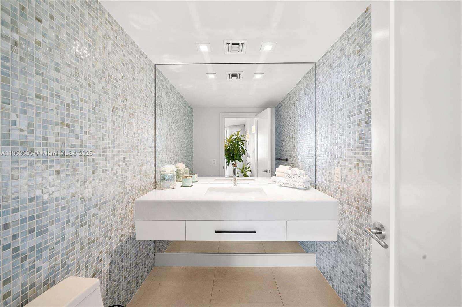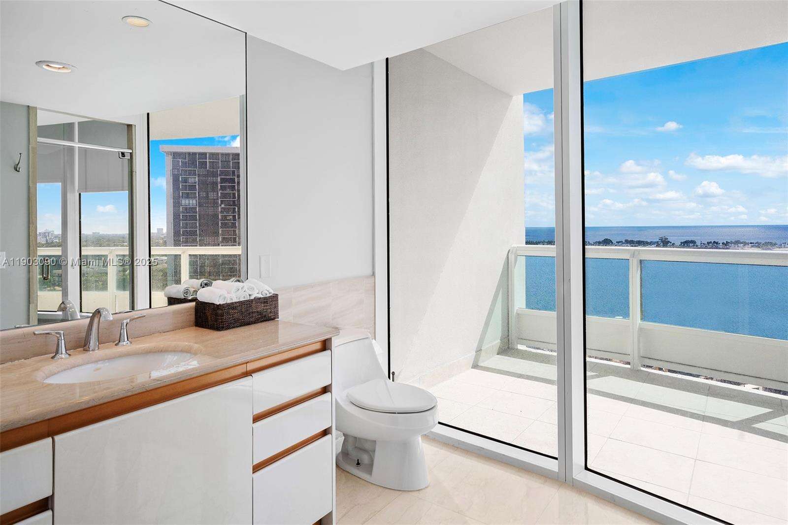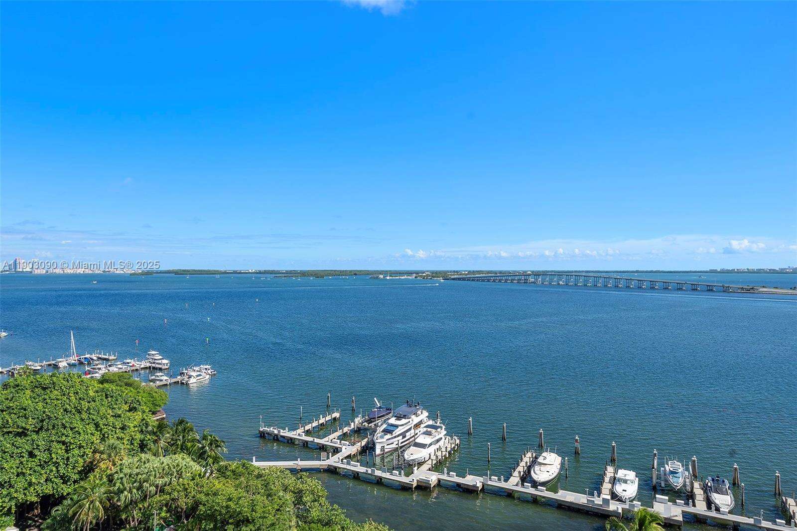 Experience luxury living on the 16th floor of the iconic Santa Maria. This upgraded flow-through residence offers 3,170 sq. ft. of interiors plus 1,250 sq. ft. of expansive terraces with panoramic views of the Atlantic Ocean, Biscayne Bay, and the Miami skyline. Features include a private foyer, 3 bedrooms, 4.5 baths, a grand primary suite with dual bathrooms and a remodeled and expansive walk-in closet, upgraded kitchen with Sub-Zero refrigerator & top of the line appliances. Includes laundry room, 2 parking spaces, and storage. Enjoy 5-star amenities: 24/7 security, valet, fitness center, tennis, racquetball, marina, pool, bistro, children’s playroom, and a historic mansion for private events.