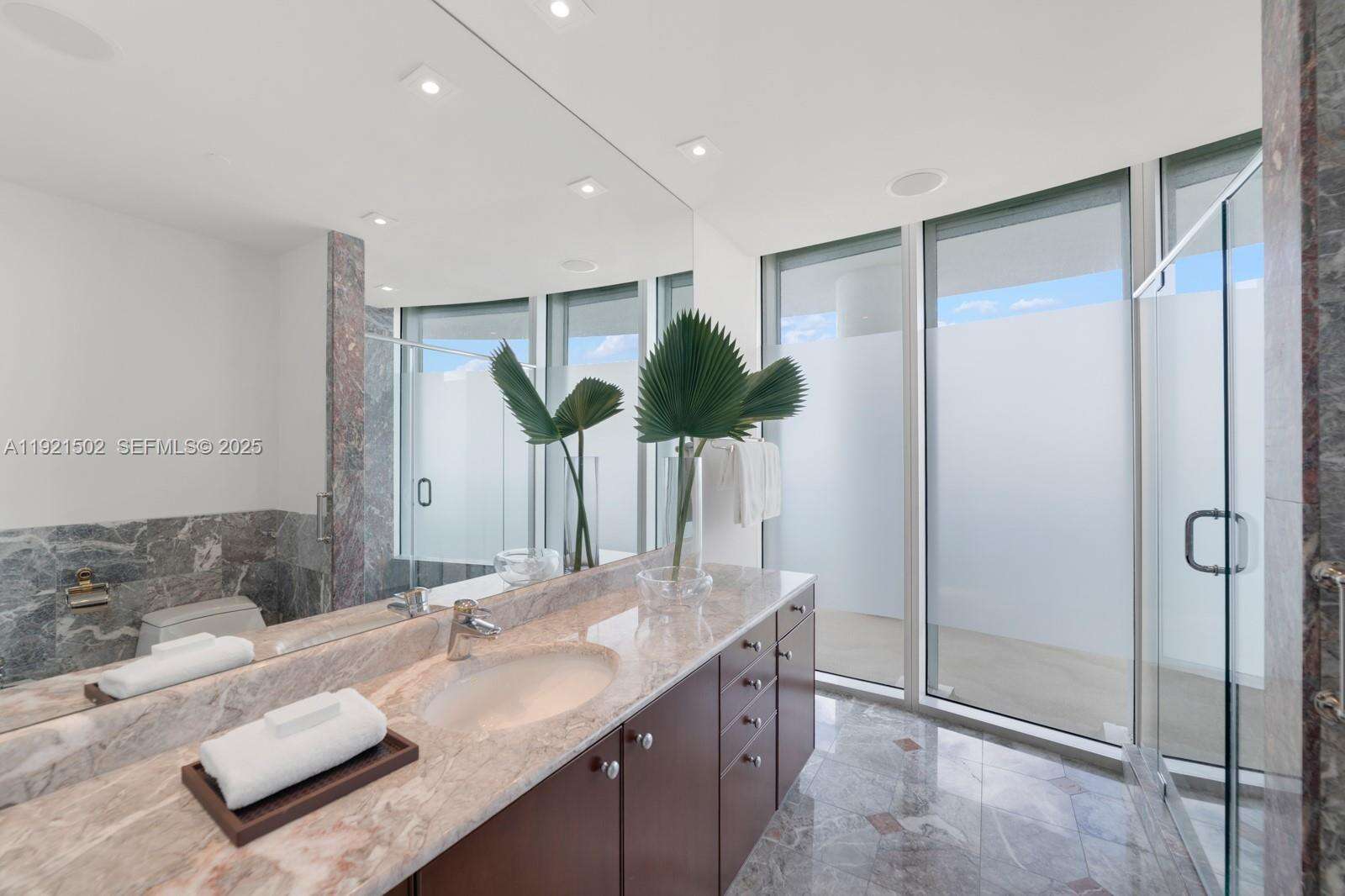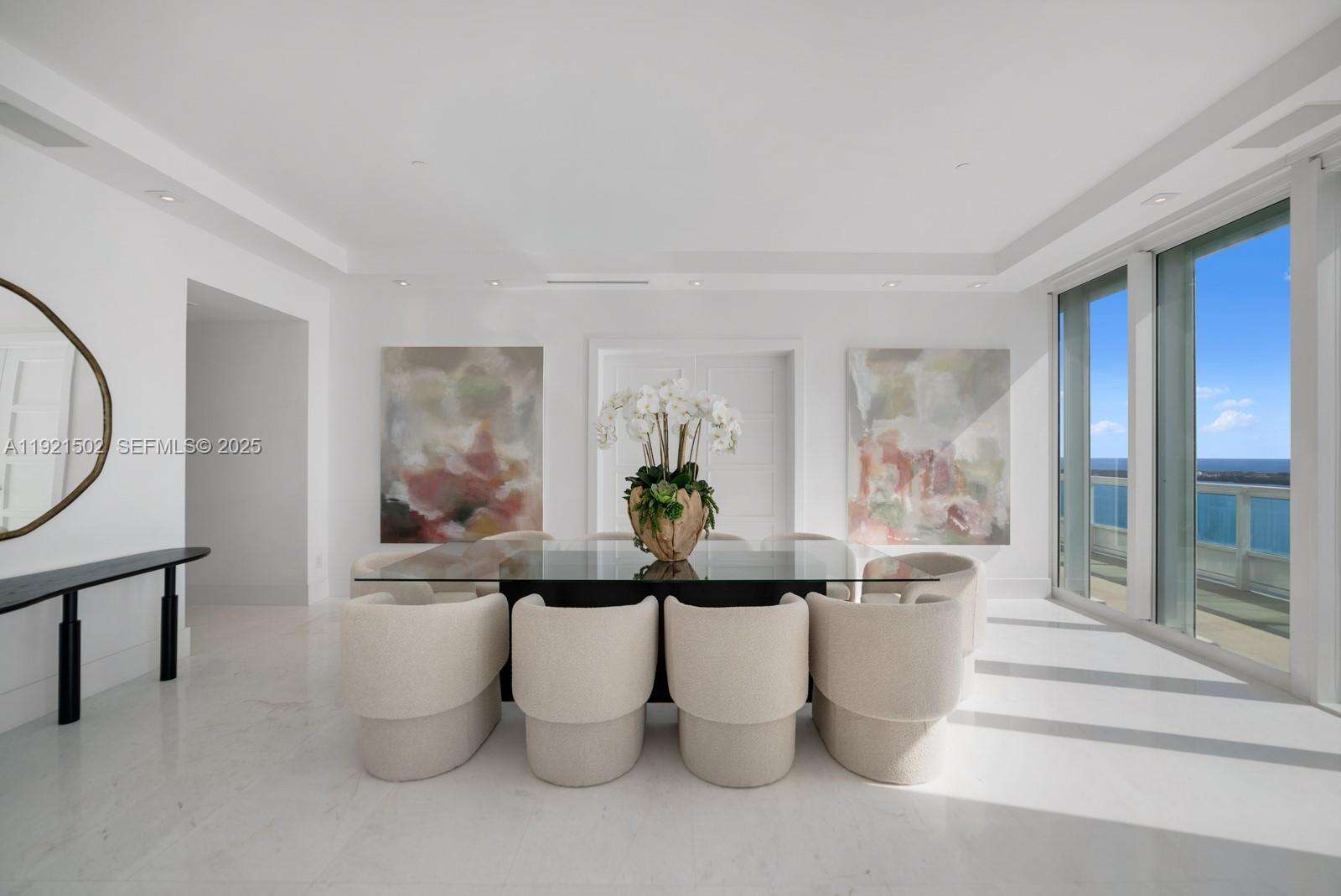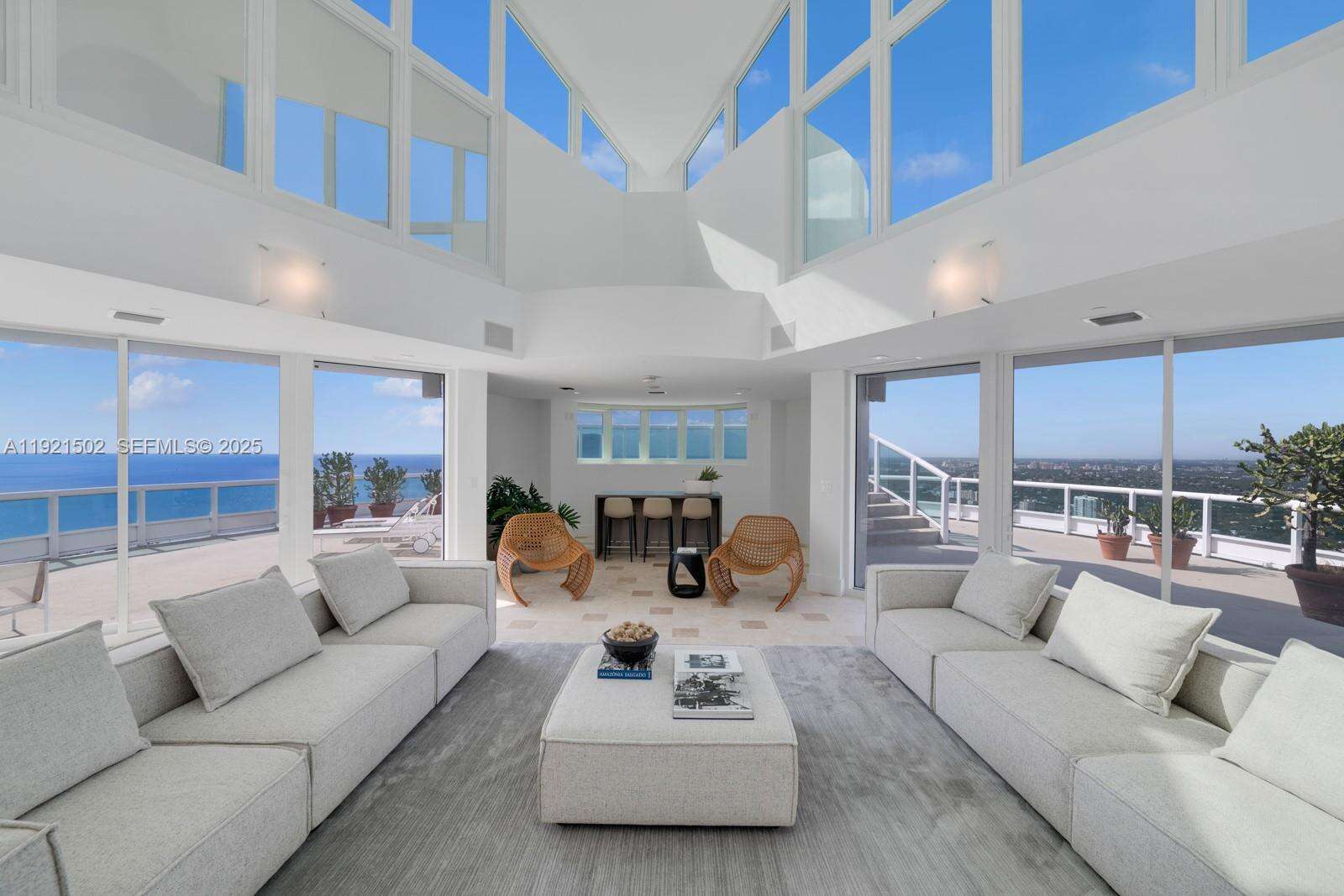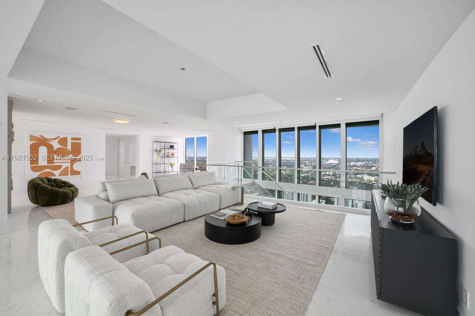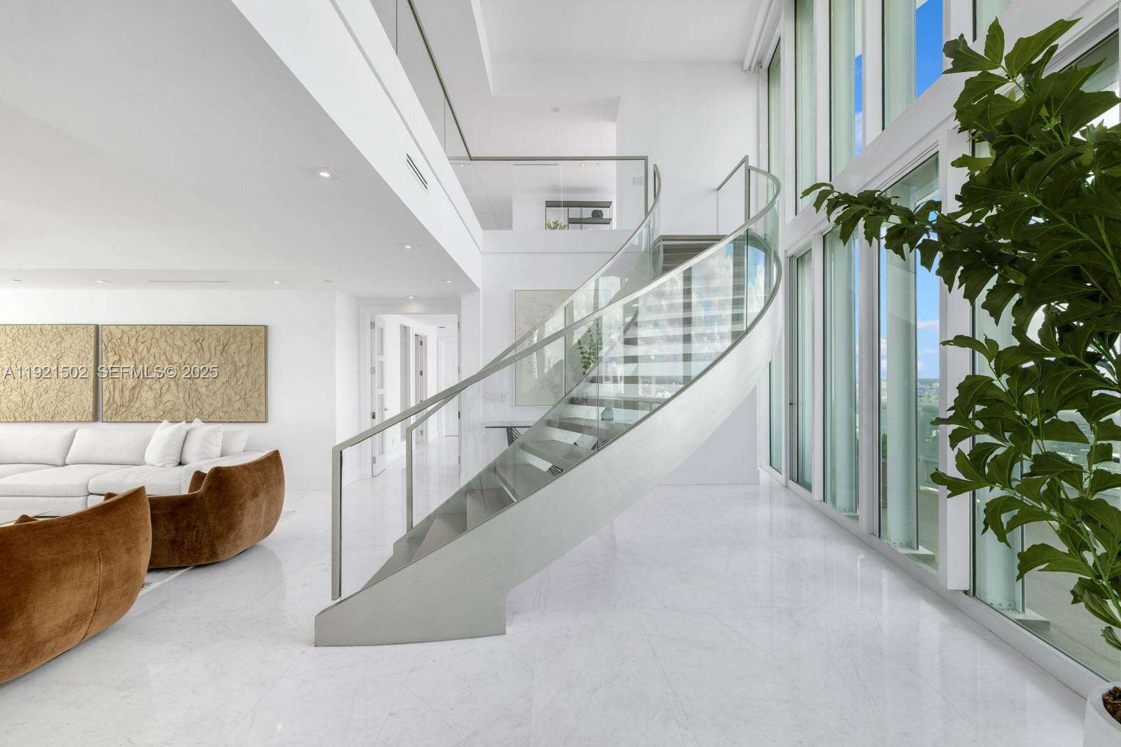 Experience unparalleled luxury in this breathtaking 2-story penthouse featuring sweeping 270° views of Biscayne Bay and the Miami skyline. Located on the 49th and 50th floors of the coveted Santa Maria in Brickell, this 10,000 SF sky mansion comes artfully furnished with curated pieces from All About the Wow. The private primary suite wing includes its own terrace, dual spa-style bathrooms, and expansive walk-in closets. Additional highlights include dual-level floor-to-ceiling glass windows, multiple generous entertaining spaces including a bright sunroom, a gourmet chef’s kitchen with a butler’s pantry and premium appliances, and a private rooftop plunge pool with stunning panoramic views. Residents enjoy exceptional amenities, including a newly completed fitness center, spa, pool, tennis court, on-site restaurant, and 24-hour concierge. Boat slips are available for purchase.