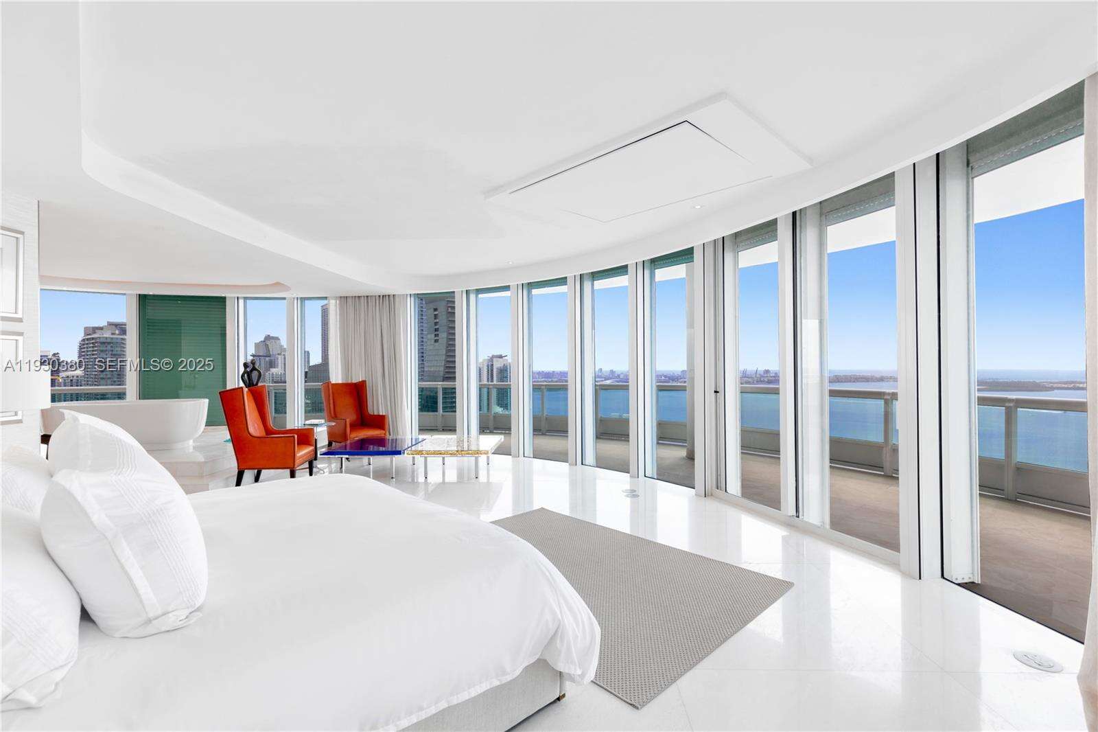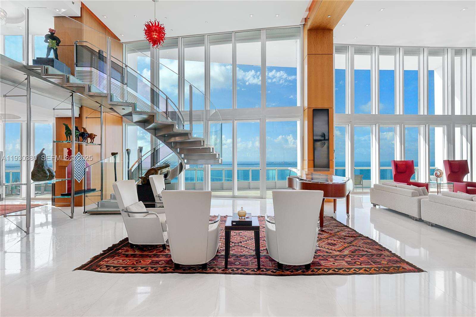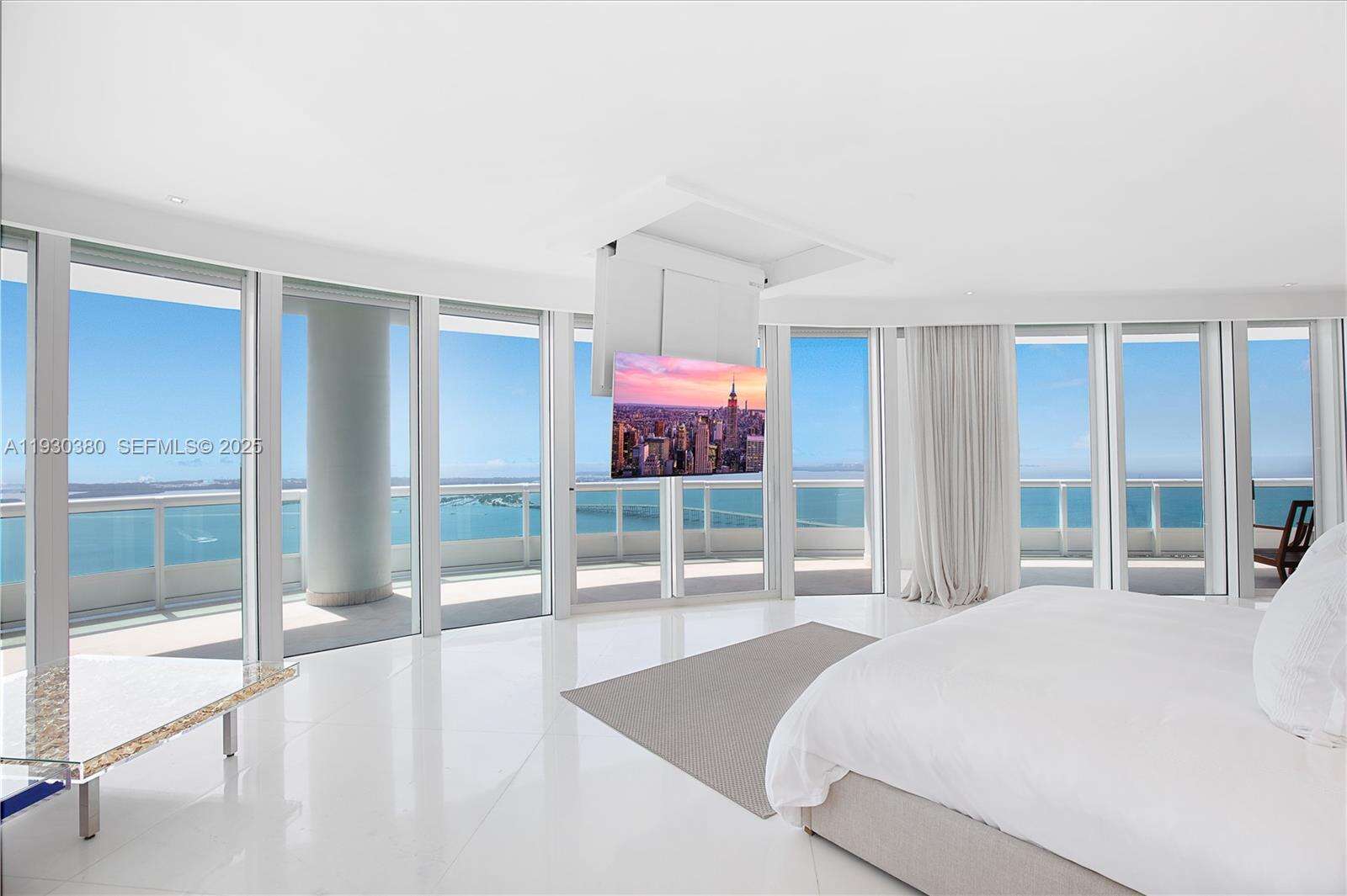Rare opportunity to own an almost 15,000 SqFt waterfront Duplex PH on the 49 and 50 Floors with your own 97 Ft dock for your yacht and private rooftop terrace pool. Originally 7 bedrooms, remodeled, and currently configured as 3 primary bedrooms each with dual baths and sitting areas, can be easily converted back to increase bedrooms. The main primary bedroom features its own wing and spans over 1,800 SqFt. This architectural masterpiece faces East, North, and West, features double height ceilings, floor-to-ceiling windows, fully unobstructed 270-degree views of Biscayne Bay, Atlantic Ocean, islands of Miami Beach, Miami's skyline and beyond from every corner, and is designed for seamless entertainment. Santa Maria is an iconic building located in the estate section of Brickell where the new St Regis is being built immediately to the South (will not cover this unit’s view), offering 24/7 security, guard gated entry, tennis court, Health Club, gym, spa, restaurant, pool, resident’s marina, event space, and more remodeled resort style amenities and services. The building’s lot size is unmatched and although a high rise, unit count is considered boutique. All while being within a short walk to gourmet restaurants, upscale shopping and entertainment in the heart of Brickell, and a short drive to Coconut Grove, Miami Beach, Key Biscayne, and the Design District. All assessments for the unit have been paid by seller. Lives as waterfront single family house with condo conveniences.