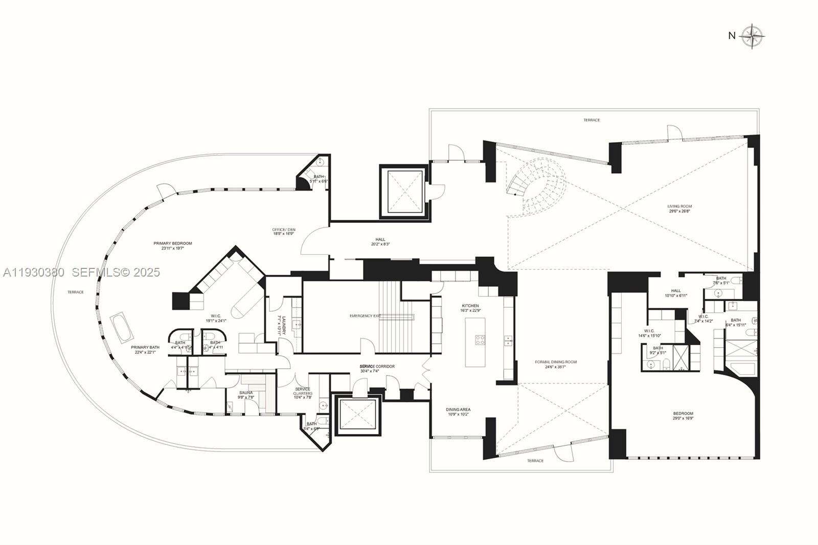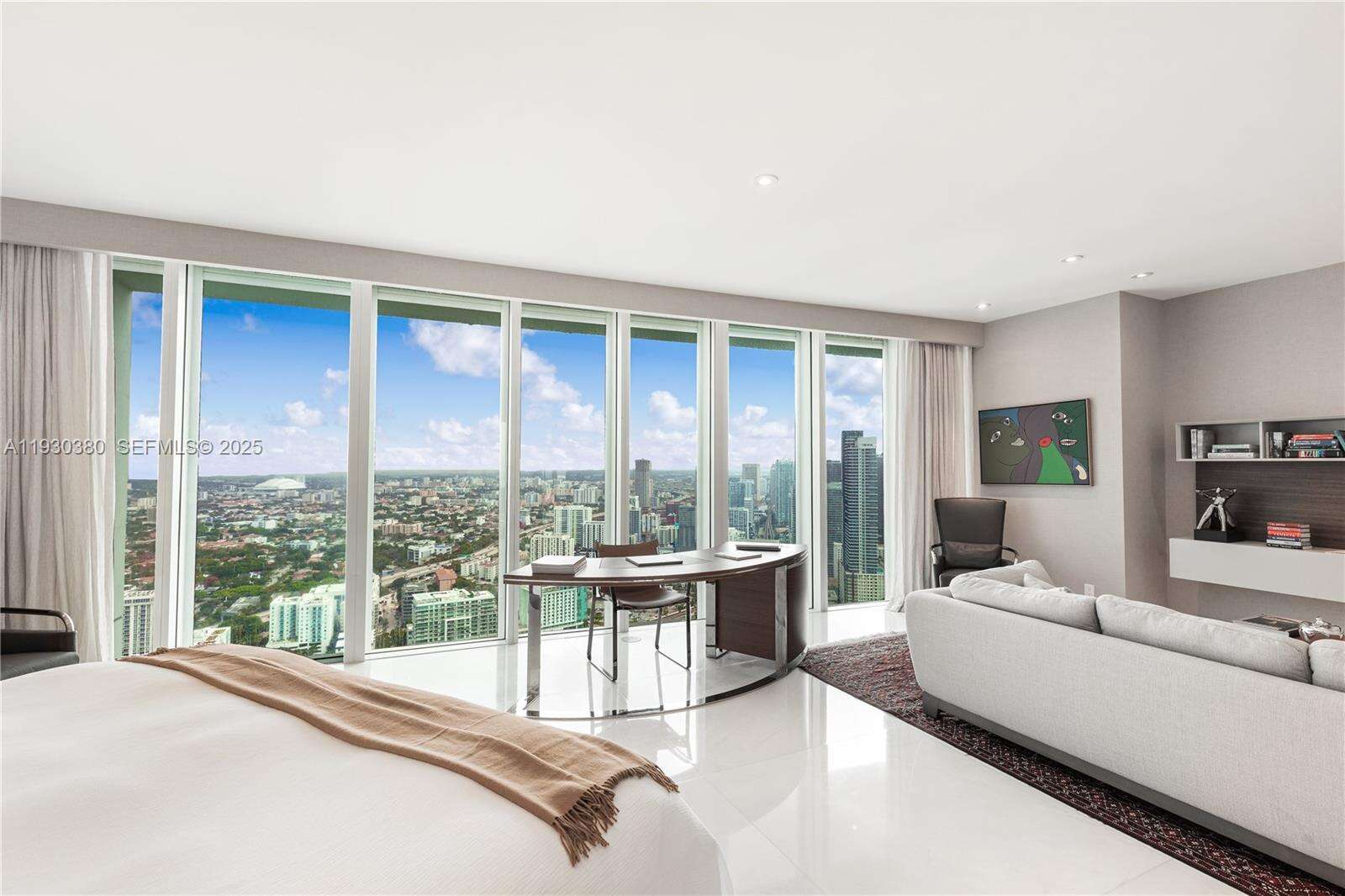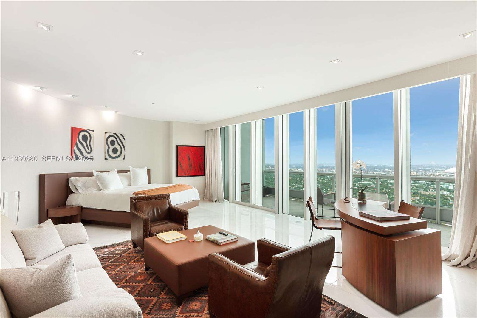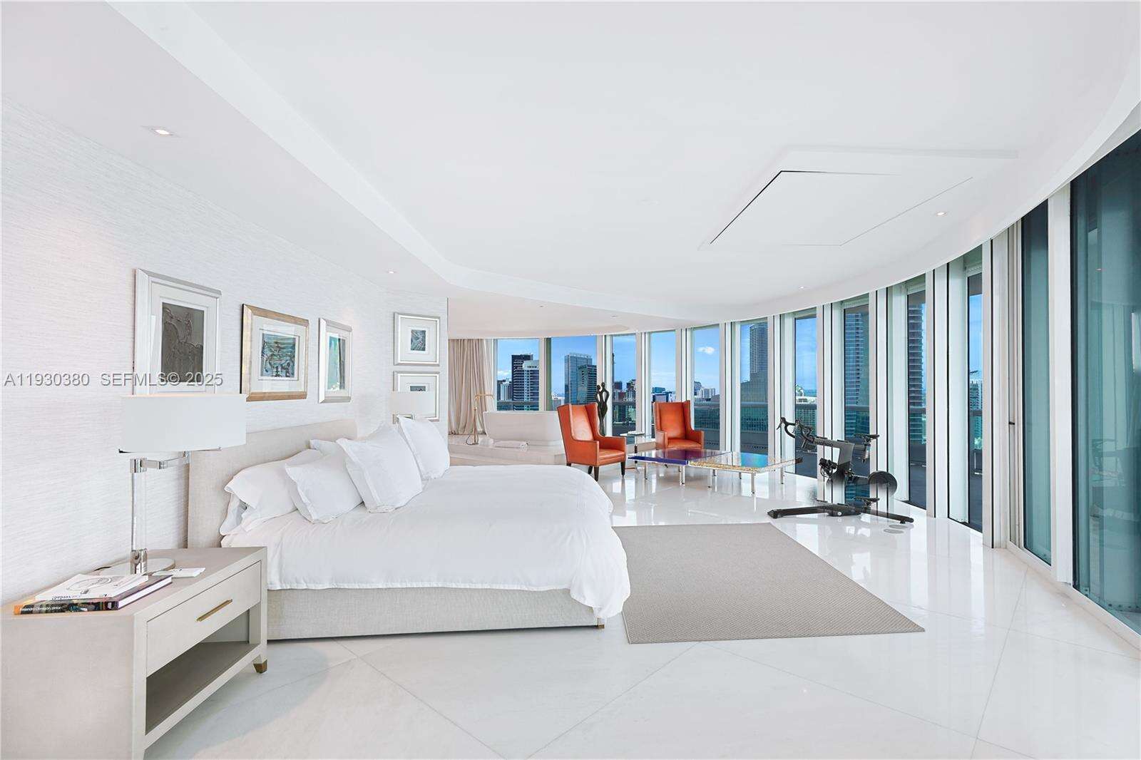 Rare opportunity to own an almost 15,000 SqFt waterfront Duplex PH on the 49 and 50 Floors with your own 97 Ft dock for your yacht and private rooftop terrace pool. Originally 7 bedrooms, remodeled, and currently configured as 3 primary bedrooms each with dual baths and sitting areas, can be easily converted back to increase bedrooms. The main primary bedroom features its own wing and spans over 1,800 SqFt. This architectural masterpiece faces East, North, and West, features double height ceilings, floor-to-ceiling windows, fully unobstructed 270-degree views of Biscayne Bay, Atlantic Ocean, islands of Miami Beach, Miami's skyline and beyond from every corner, and is designed for seamless entertainment. Santa Maria is an iconic building located in the estate section of Brickell where the new St Regis is being built immediately to the South (will not cover this unit’s view), offering 24/7 security, guard gated entry, tennis court, Health Club, gym, spa, restaurant, pool, resident’s marina, event space, and more remodeled resort style amenities and services. The building’s lot size is unmatched and although a high rise, unit count is considered boutique. All while being within a short walk to gourmet restaurants, upscale shopping and entertainment in the heart of Brickell, and a short drive to Coconut Grove, Miami Beach, Key Biscayne, and the Design District. All assessments for the unit have been paid by seller. Lives as waterfront single family house with condo conveniences.