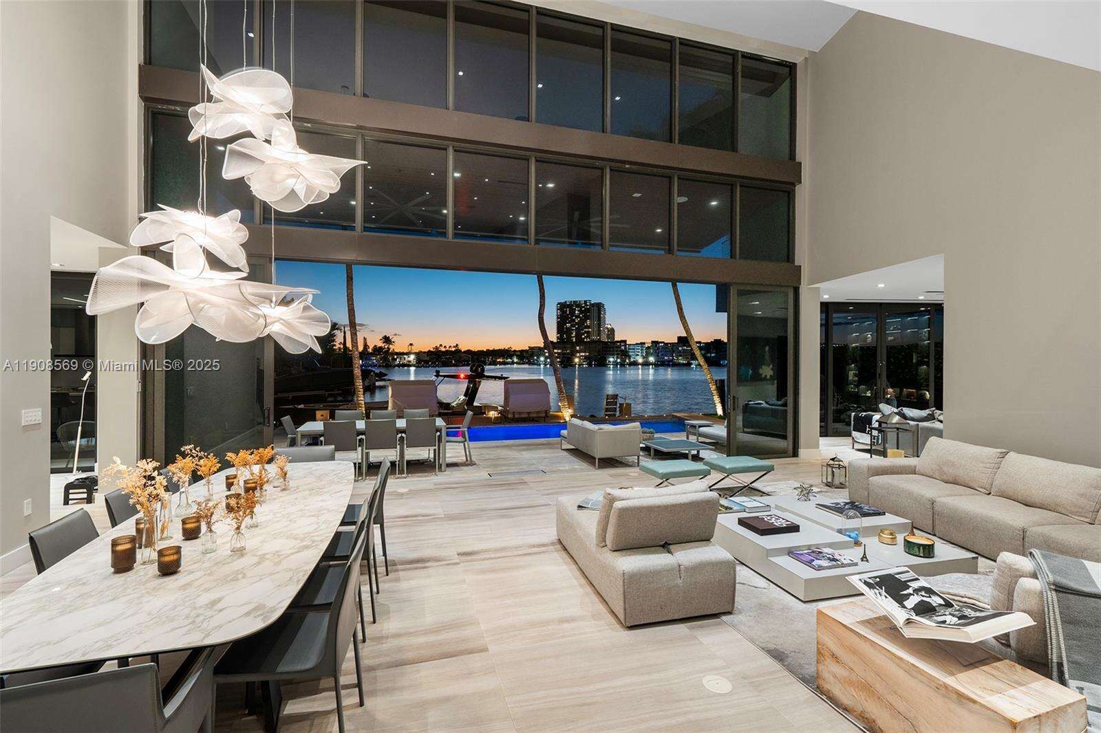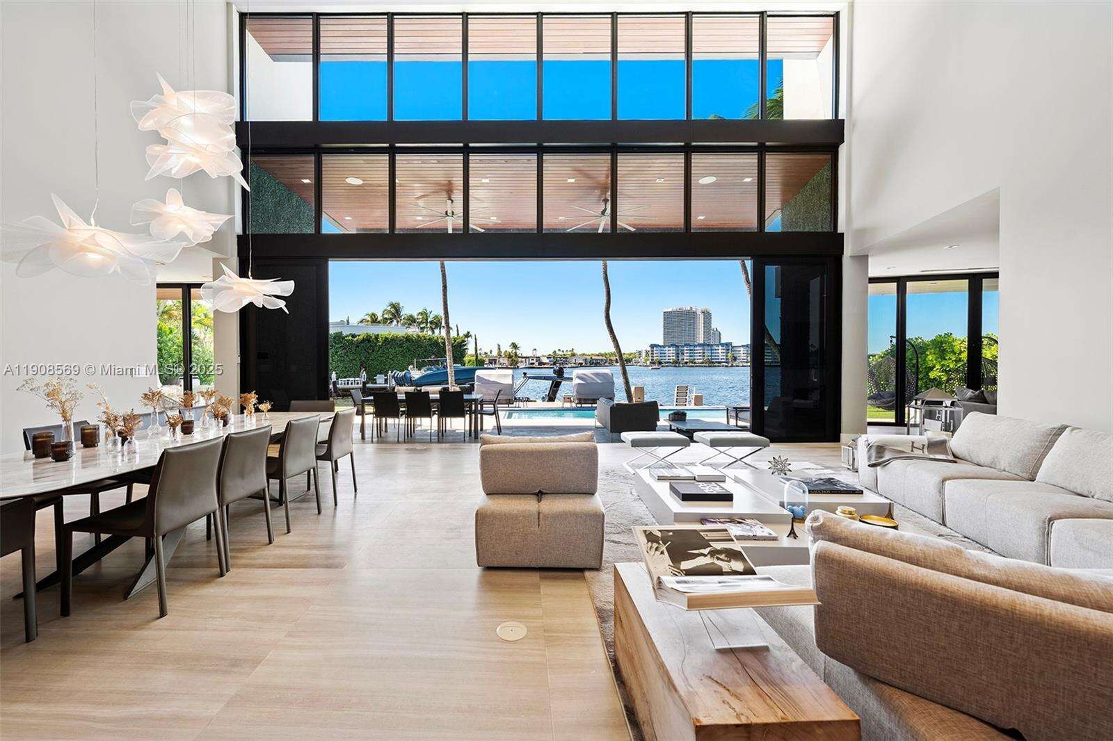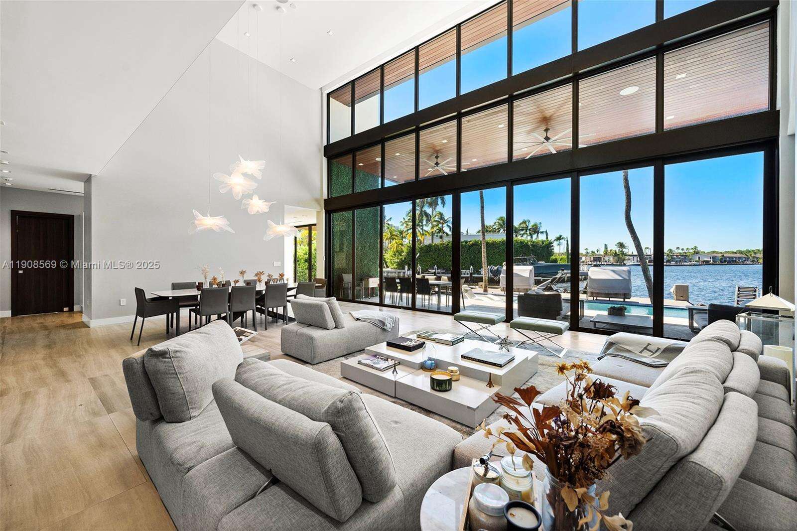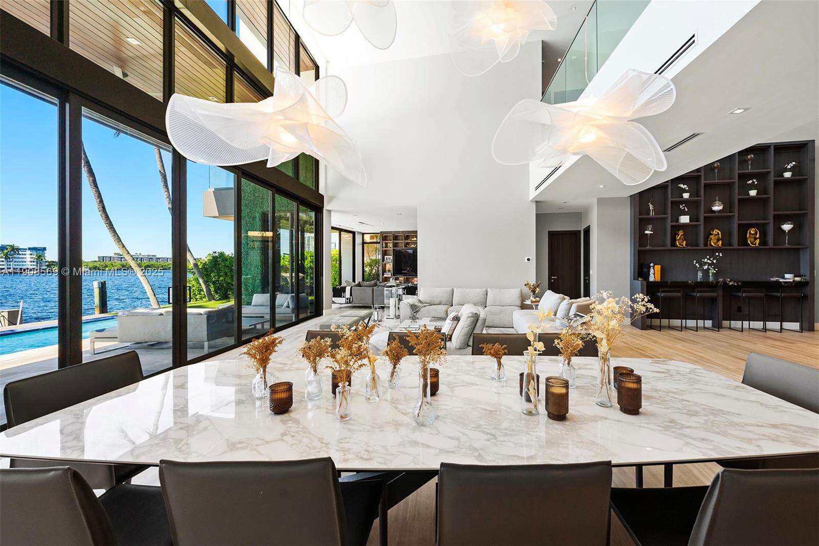 Located in exclusive gated neighborhood of Eastern Shores, perfectly positioned between Aventura, Sunny Isles, and Bal Harbour, this newly built modern masterpiece captures one of the rare wide-open views of Maule Lake. Soaring ceilings and a full wall of glass draw the water straight into the living space, while 100 feet of waterfront provides prime dockage in a calm no-wake zone. The private backyard and peaceful setting make it ideal for quiet luxury living, with ocean access in under ten minutes. Featuring a top-of-the-line Italian chef’s kitchen and fully built-out closets, this is Eastern Shores at its best.