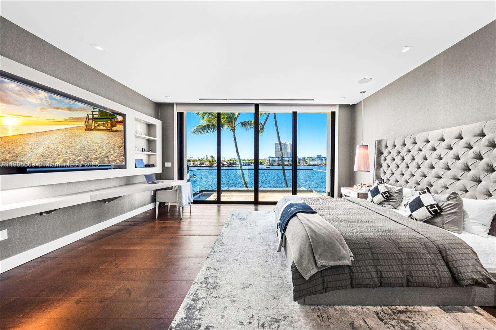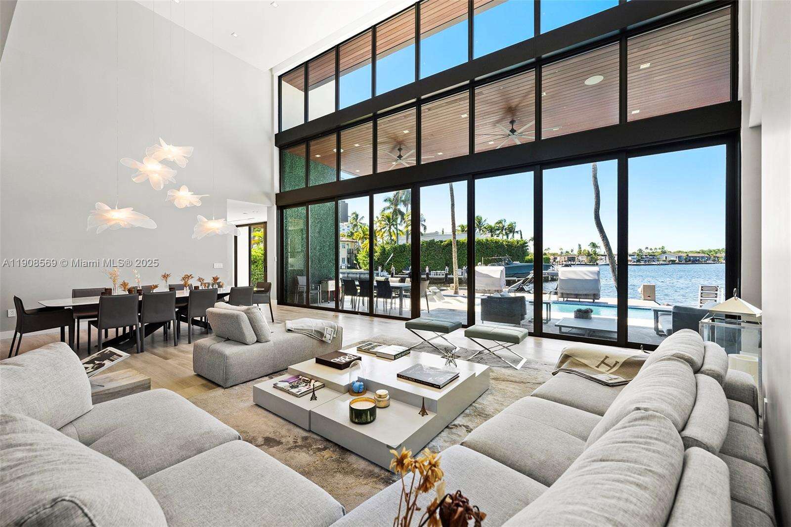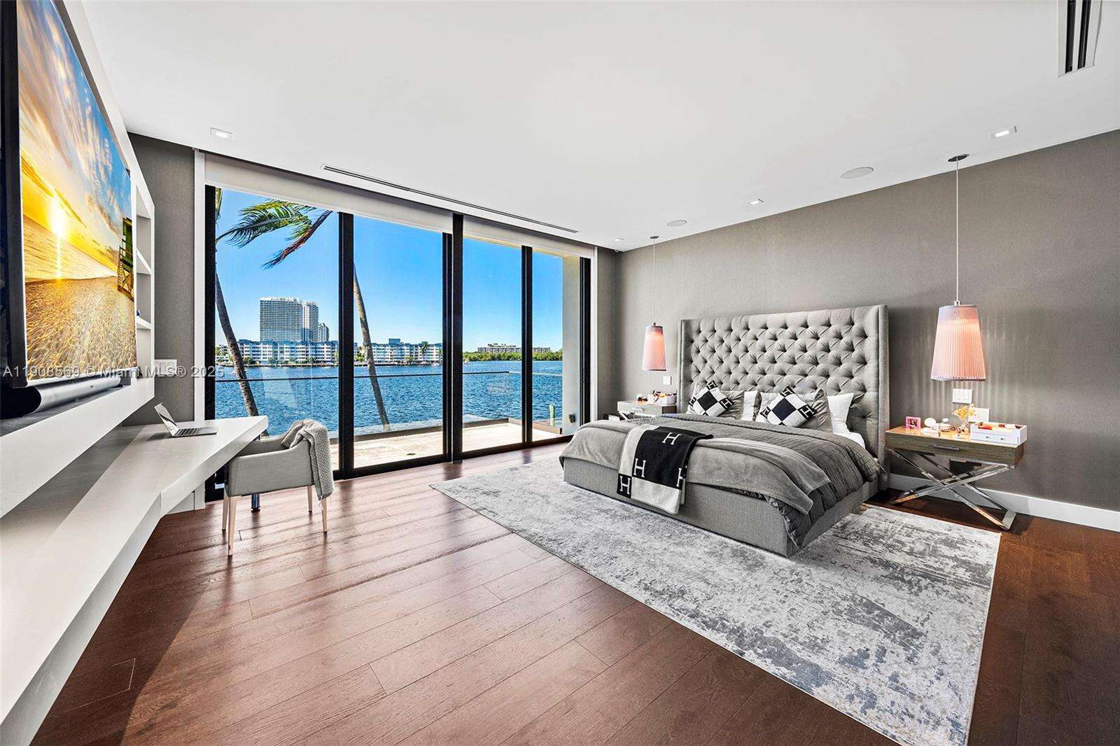 Located in exclusive gated neighborhood of Eastern Shores, perfectly positioned between Aventura, Sunny Isles, and Bal Harbour, this newly built modern masterpiece captures one of the rare wide-open views of Maule Lake. Soaring ceilings and a full wall of glass draw the water straight into the living space, while 100 feet of waterfront provides prime dockage in a calm no-wake zone. The private backyard and peaceful setting make it ideal for quiet luxury living, with ocean access in under ten minutes. Featuring a top-of-the-line Italian chef’s kitchen and fully built-out closets, this is Eastern Shores at its best.