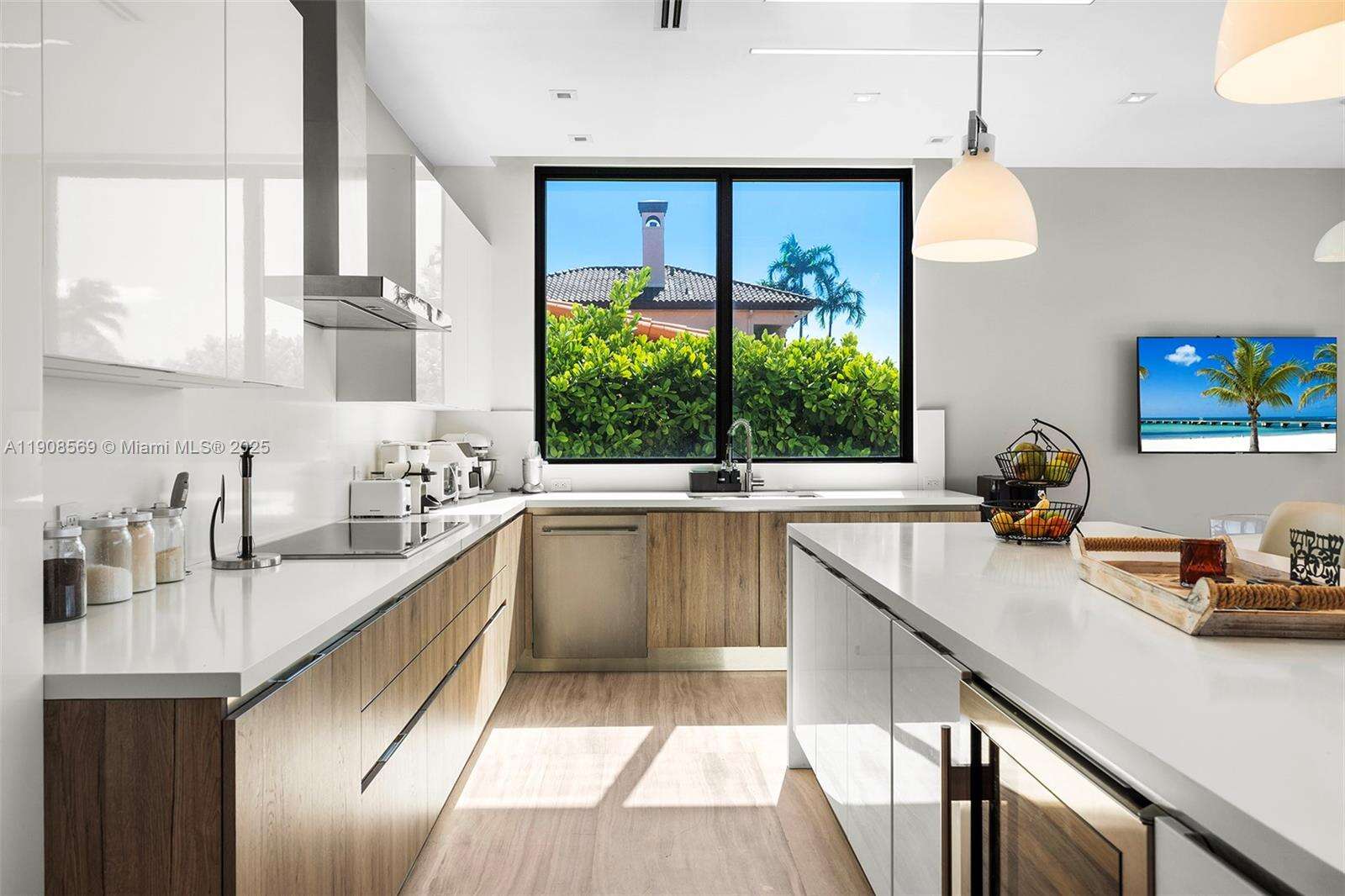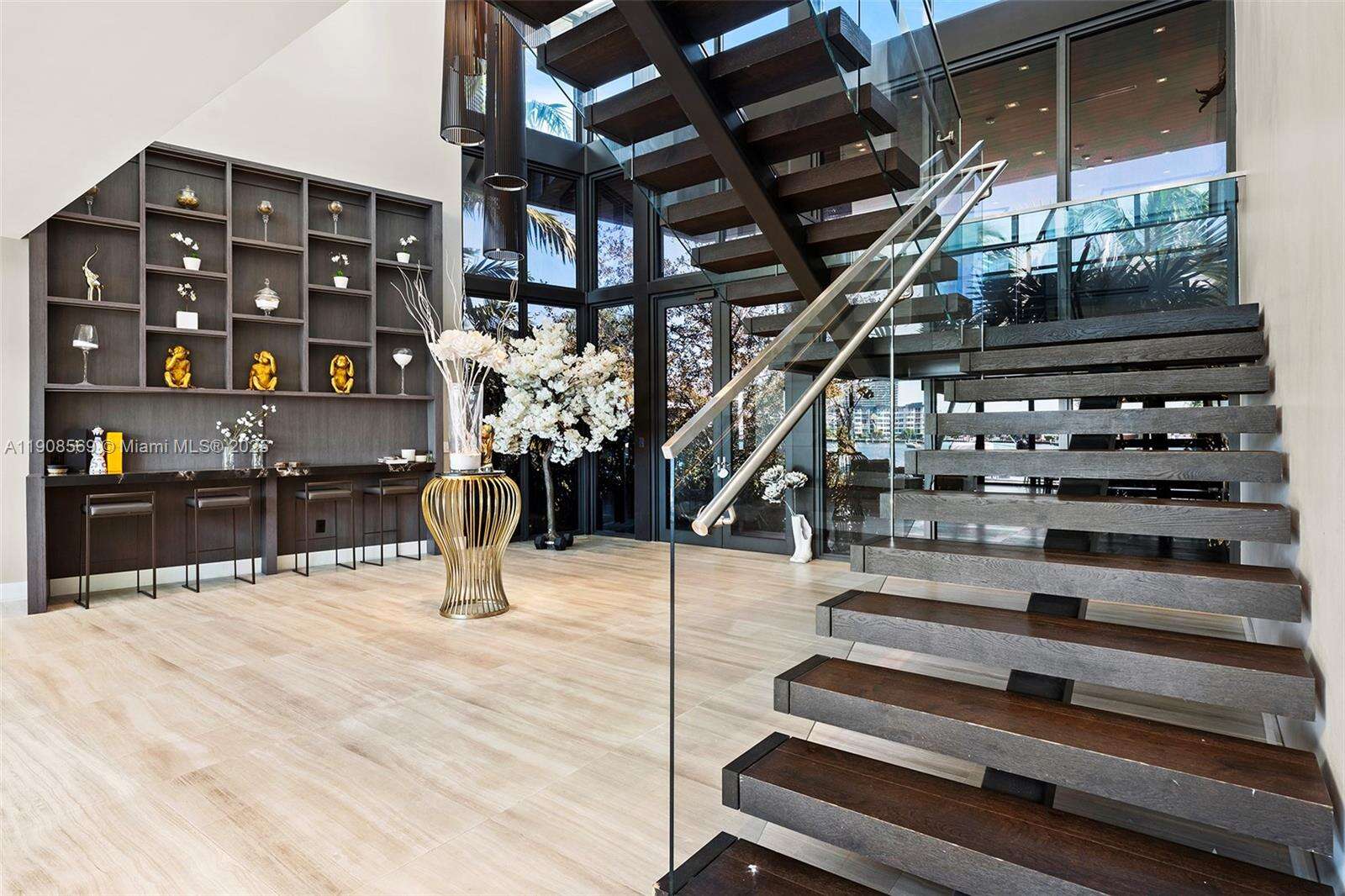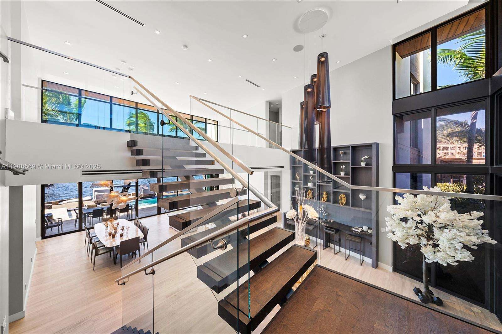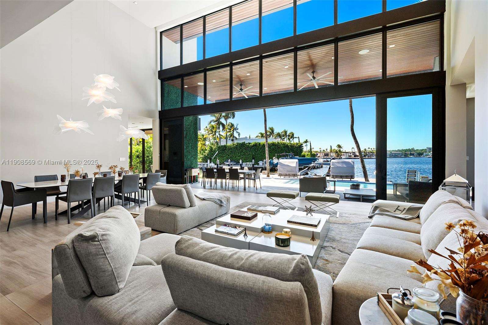 Located in exclusive gated neighborhood of Eastern Shores, perfectly positioned between Aventura, Sunny Isles, and Bal Harbour, this newly built modern masterpiece captures one of the rare wide-open views of Maule Lake. Soaring ceilings and a full wall of glass draw the water straight into the living space, while 100 feet of waterfront provides prime dockage in a calm no-wake zone. The private backyard and peaceful setting make it ideal for quiet luxury living, with ocean access in under ten minutes. Featuring a top-of-the-line Italian chef’s kitchen and fully built-out closets, this is Eastern Shores at its best.