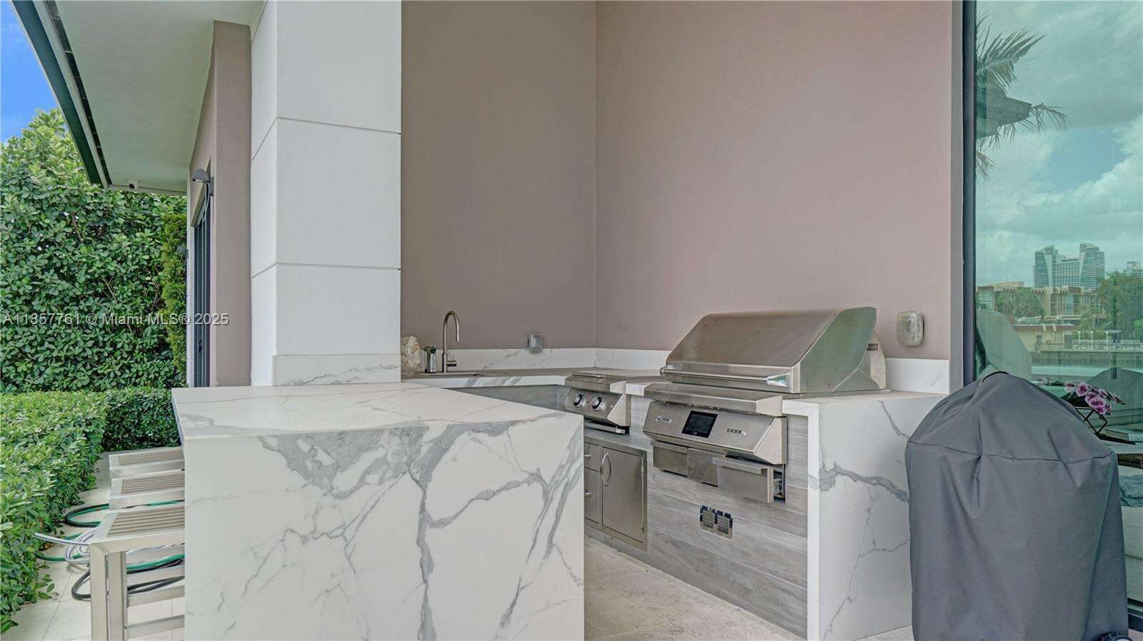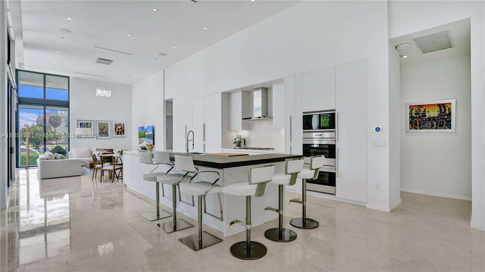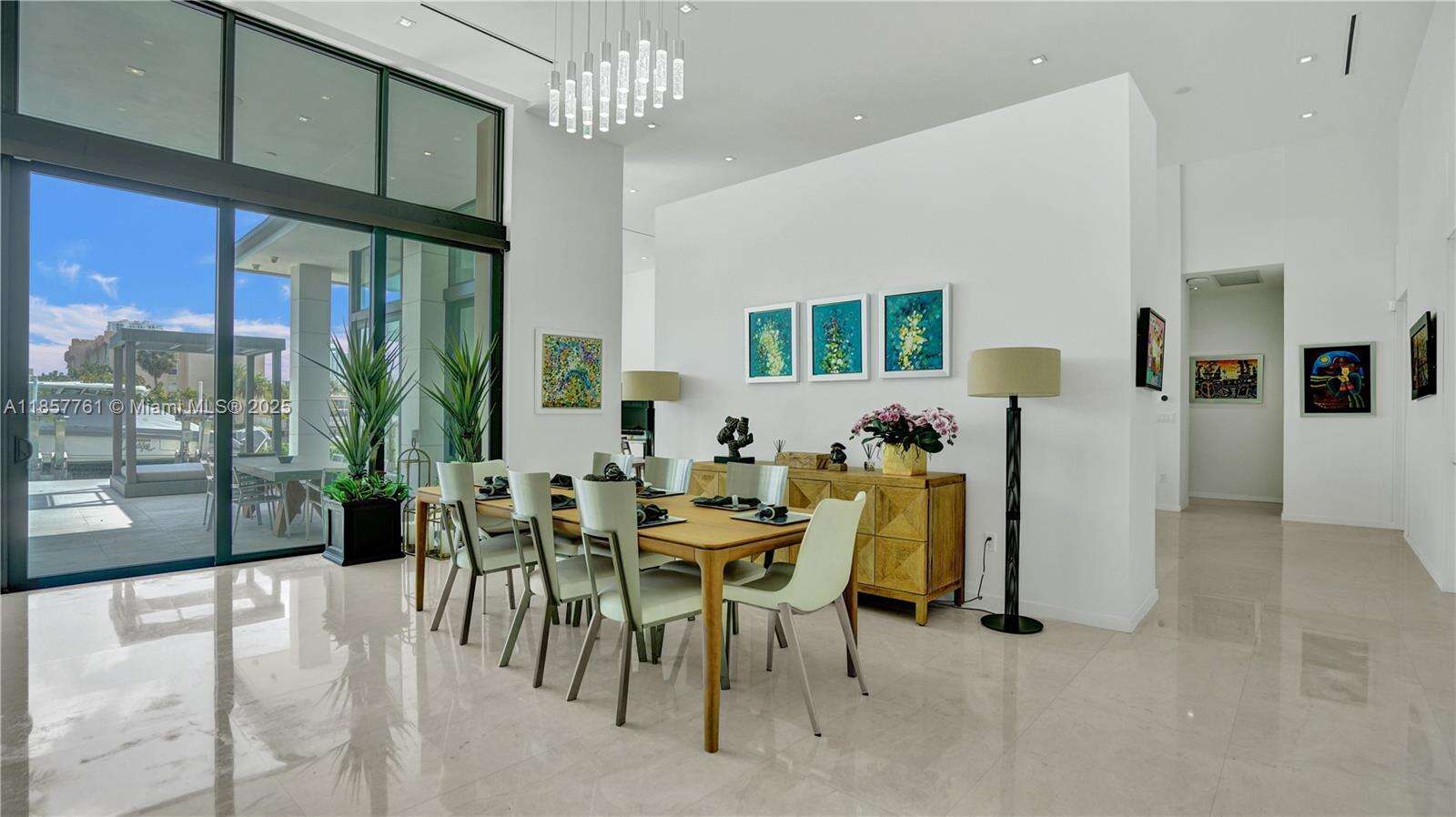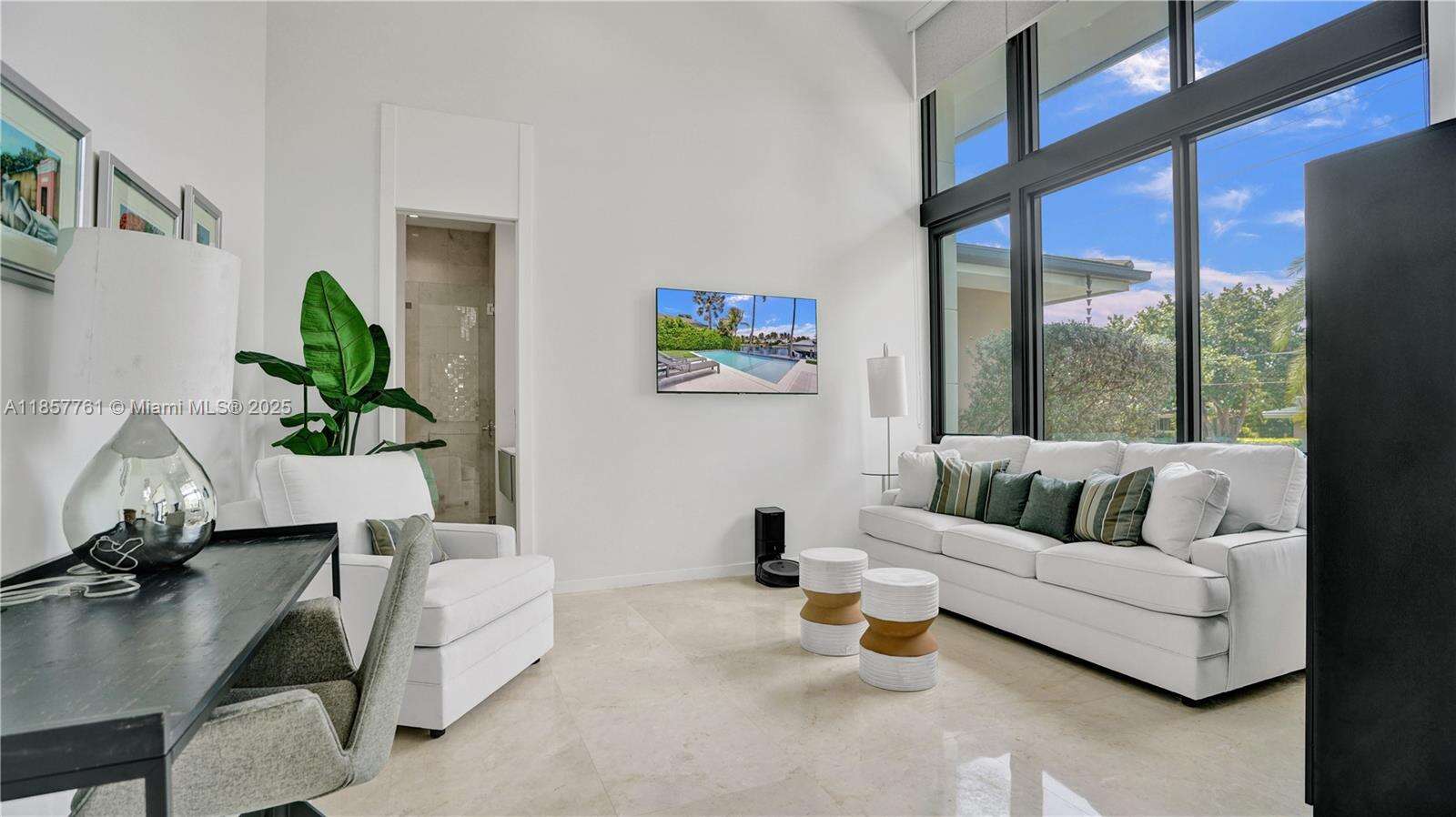 This stunning modern one-story residence features floor-to-ceiling windows with expansive water views from every room. This exquisite home boasts 15-foot ceiling, five bedrooms, seven full bathrooms, den, heated pool, covered terrace and outdoor kitchen. Over $450,000 in upgrades. It has approximately 114 feet of water frontage, private dock and a 40,000lb boat lift. This is truly a boater's paradise. Come see for yourself this modern design masterpiece and make it your home.