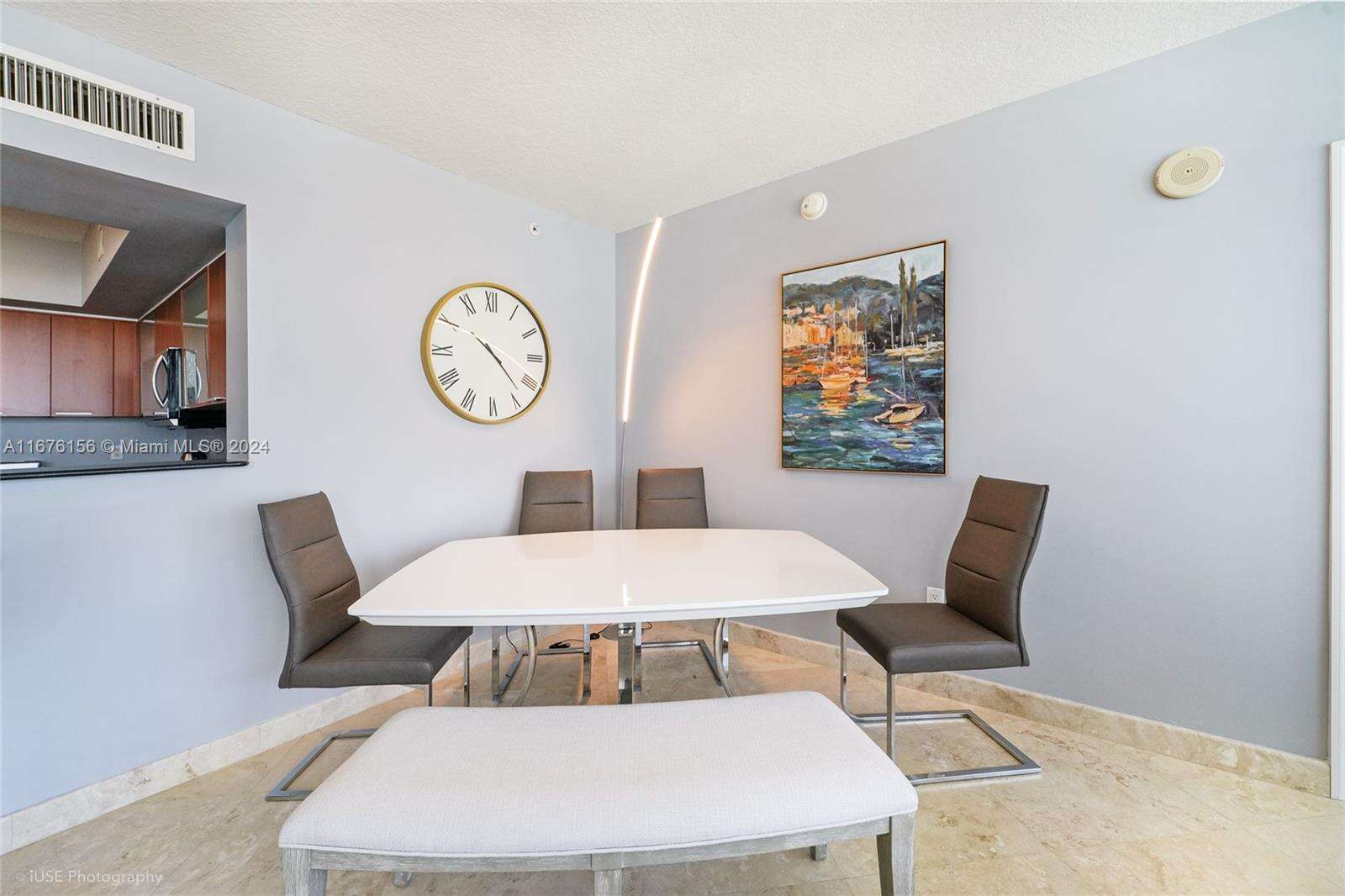 Great location and views in Sunny Isles, with easy access to the north, south and west expressway. The building amenities include a high-tech fitness and spa, 24 hour valet service, business center, party room, billiard room, climate-controlled pool, full beach service. The unit consists of two bedrooms and two bathrooms with a corner location giving way to amazing panoramic views. Full capacity washer and dryer in separate closet. Floor to ceiling tinted windows. Walk in closet in primary bedroom as well as an owner's closet. italian cabintry , stainless steel appliances in kitchen. Large wrap around balcony. Open kitchen, living area concept. Second bedroom sleeps 3. Marble floors throughout. Fully modernly furnished. Great opportunity for an amazing corner unit! Easy to show!
