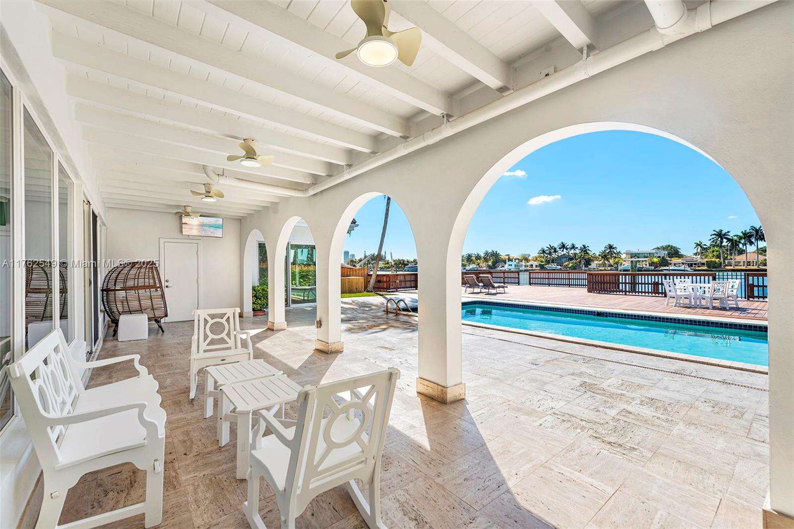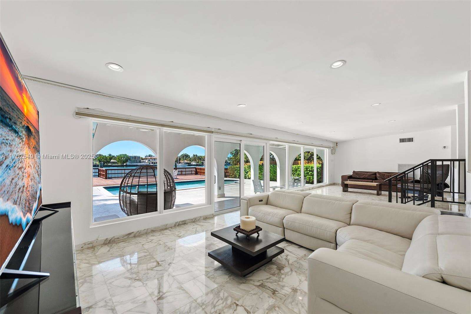 Indulge in waterfront living on Biscayne Bay, this one-story home seamlessly blends Miami Beach luxury with timeless serenity. Nestled within the renowned gated community of Biscayne Point, set on a 12,000 SF lot with 80 FT of Bayfront. Featuring 4 bedrooms, 4 bathrooms, and approx. 4,315 SF of living area, a pool, patio, and private boat dock w/ direct bay access. The expansive approx. 1,811.21 SF dock—one of the island's largest is great for hosting unforgettable gatherings, watching vibrant sunsets and offers panoramic views of the shimmering bay. Inside, the open-concept home is bathed in natural light, with a chef's kitchen—ideal for entertaining. Located minutes from the beach and Bal Harbour Shops. This rare gem captures the essence of Miami Beach living at its finest. Come explore.