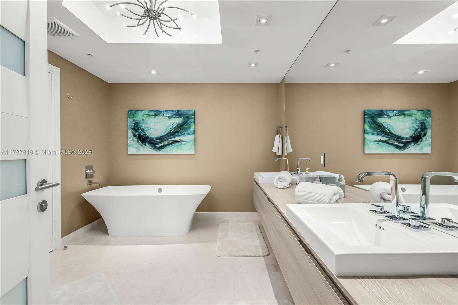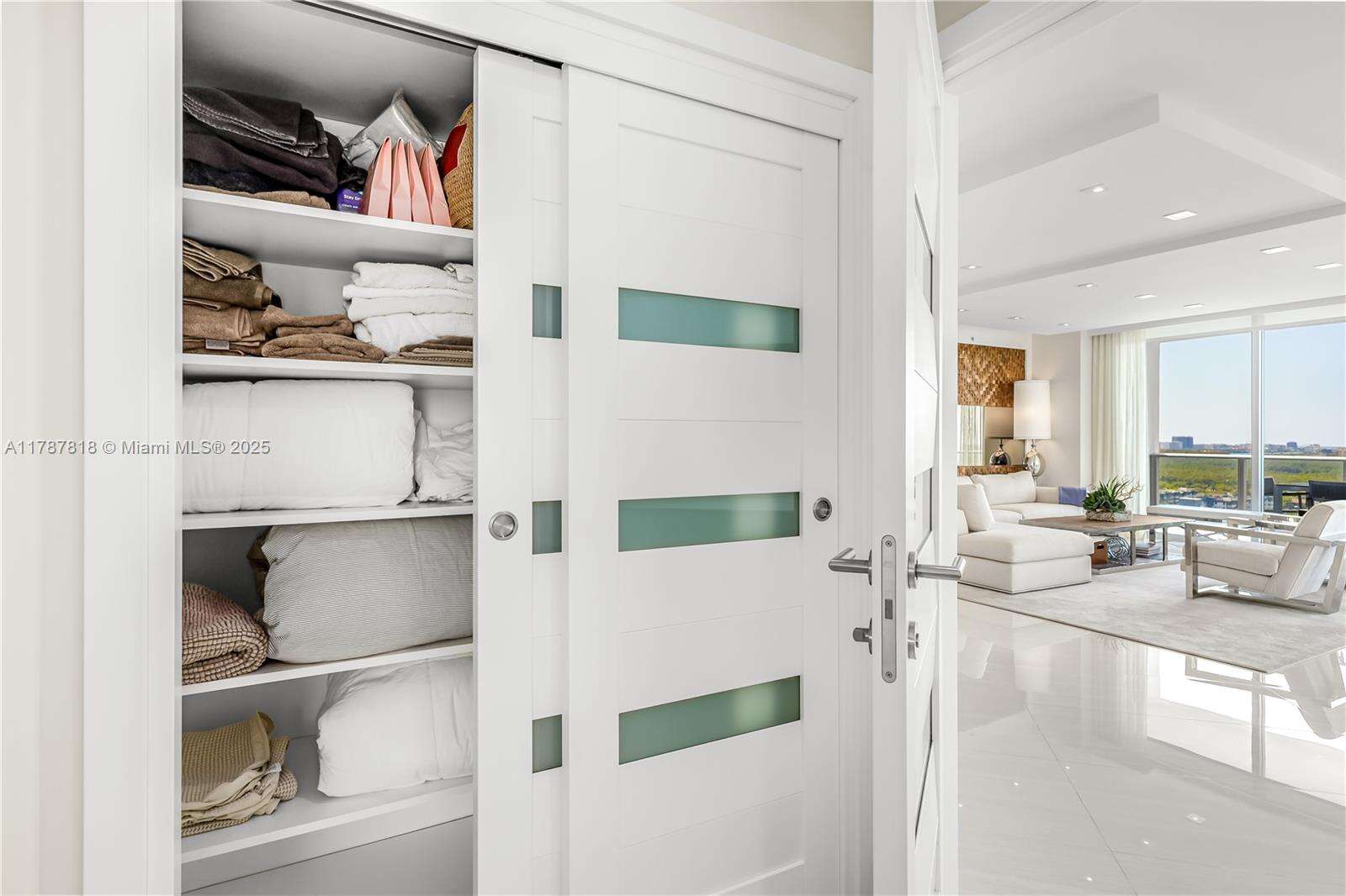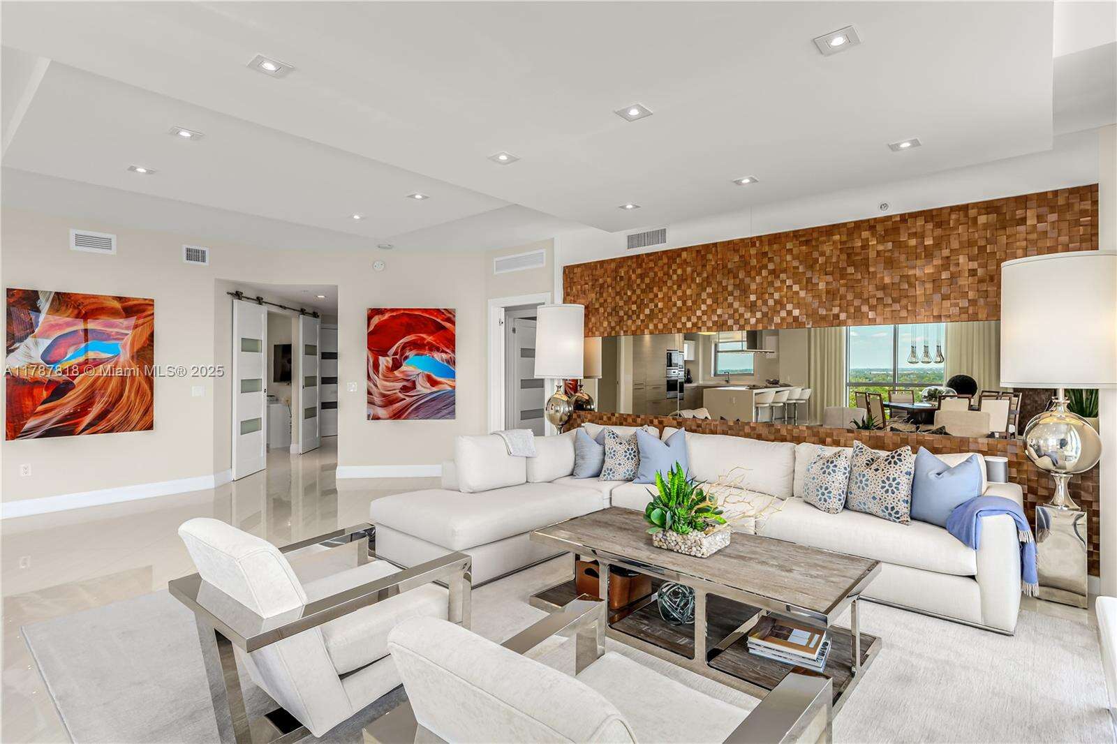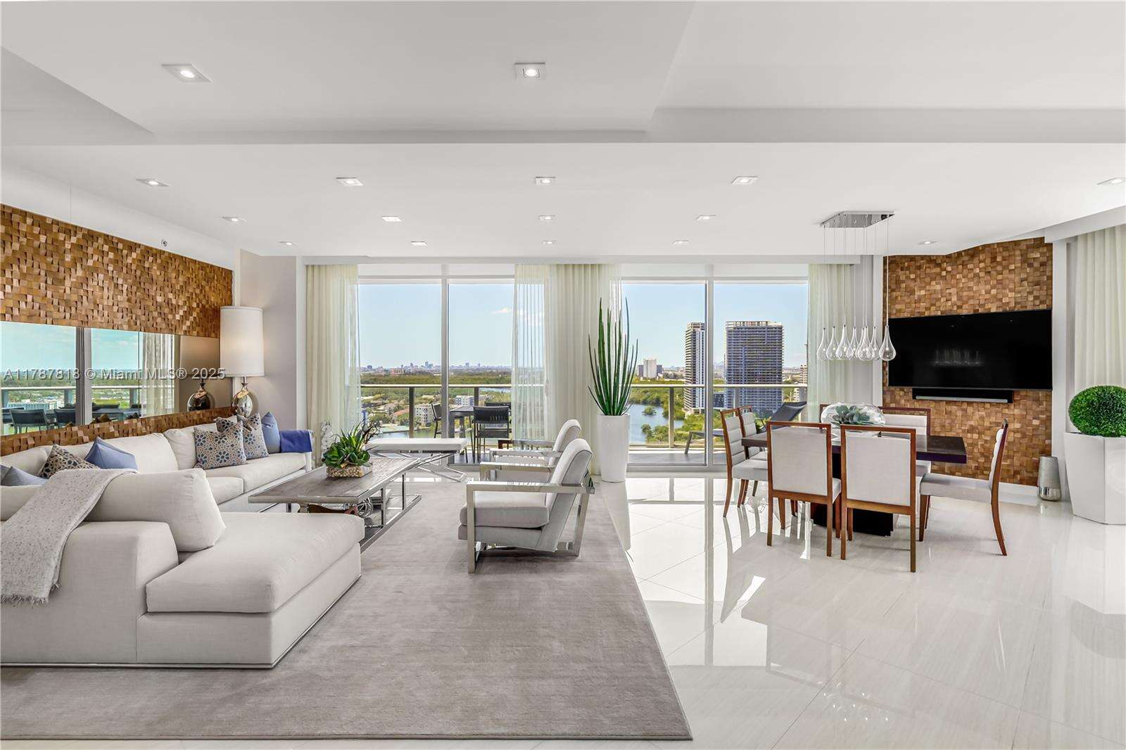 Luxurious Turnkey Corner residence at The Reserve at Marina Palms featuring unobstructed water views, designed, remodeled and curated by Steven G with high-end finishes throughout. Features include luxury lighting, porcelain floors, custom ceilings, and tailored closets. Enjoy two spacious master suites, fully enclosed den ideal as third bedroom or office, chic powder room, TWO assigned parking spaces, and private storage. Residents enjoy world-class amenities: spa with steam and sauna, fitness center, yoga/Pilates studio, news café, business lounge, infinity pool with summer kitchen, kids' pool, play zone, dog trail, and art-adorned grand lobby. 24-hour concierge, gated security, and option to purchase boat slip. Perfect blend of luxury and convenience. MOVE-IN READY!
