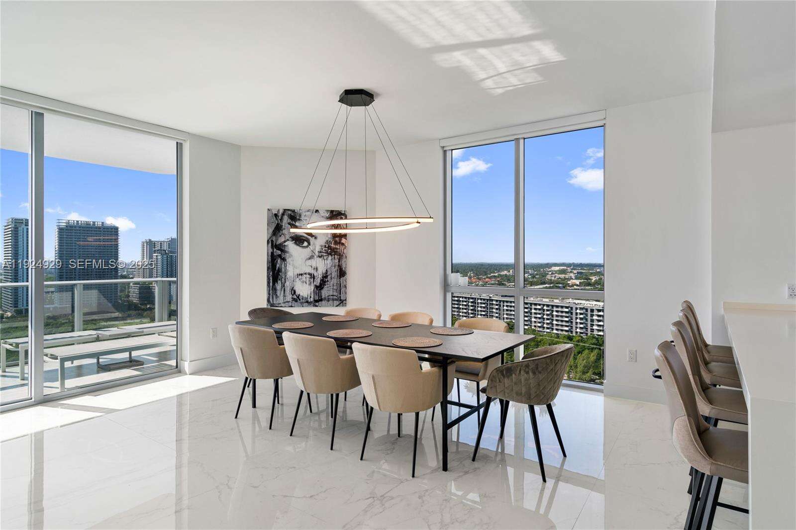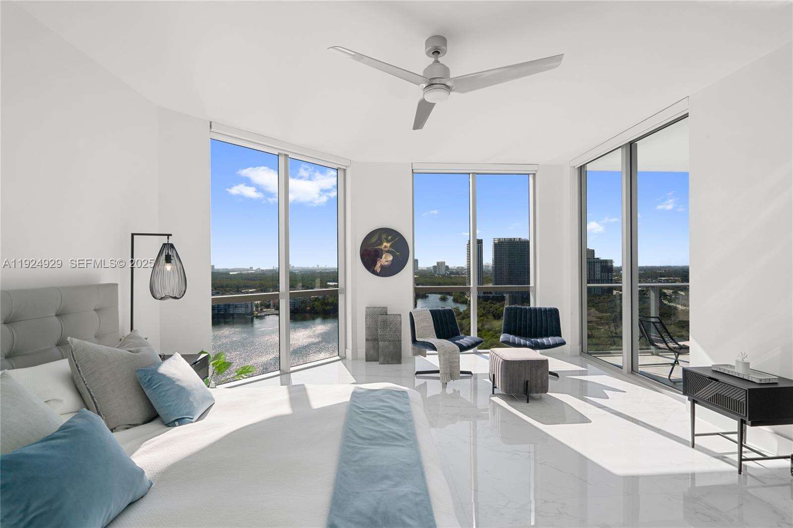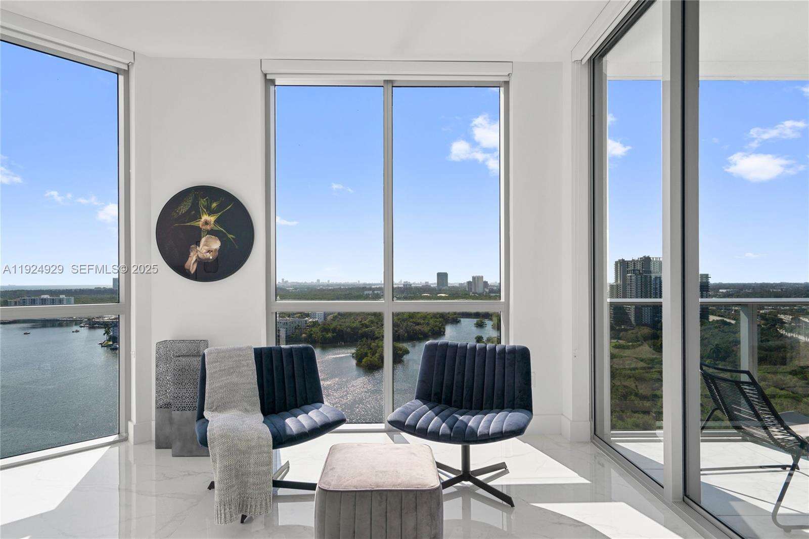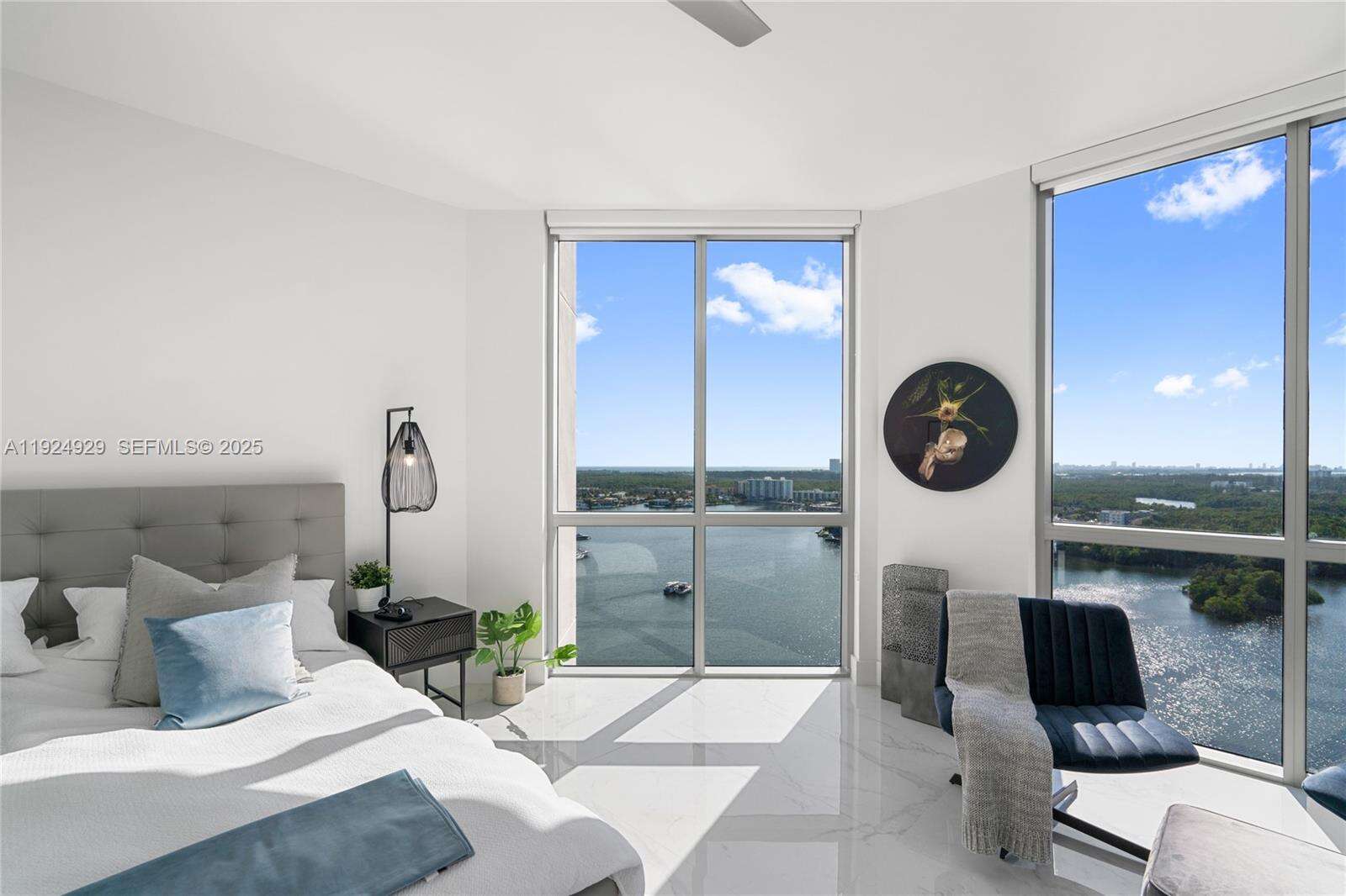 Introducing an exceptional residence at Marina Palms, perfectly positioned to capture endless, breathtaking water views from every main living space. This elegant 2 bedroom, 2.5 bath home with a spacious den offers an elevated blend of comfort and sophistication in one of Miami’s most sought after waterfront communities. This pristine unit has never been rented, never had pets and it comes fully furnished with curated designer furniture, delivering a true turnkey experience. Floor to ceiling windows flood the home with natural light, while the open concept layout enhances the sweeping panoramic vistas. The gourmet kitchen features high end finishes, ideal for both cooking and entertaining. For added convenience, the residence includes two assigned parking spaces and a full storage unit, offering ample room for personal belongings. Marina Palms also boasts a full-functioning marina, complete with state of the art facilities for boating enthusiasts. Residents enjoy world class amenities including 24/7 concierge services, a fitness center, spa, resort-style pool, lounge areas, business spaces, and much more. A rare opportunity to enjoy refined waterfront living with unmatched views and luxury at Marina Palms.