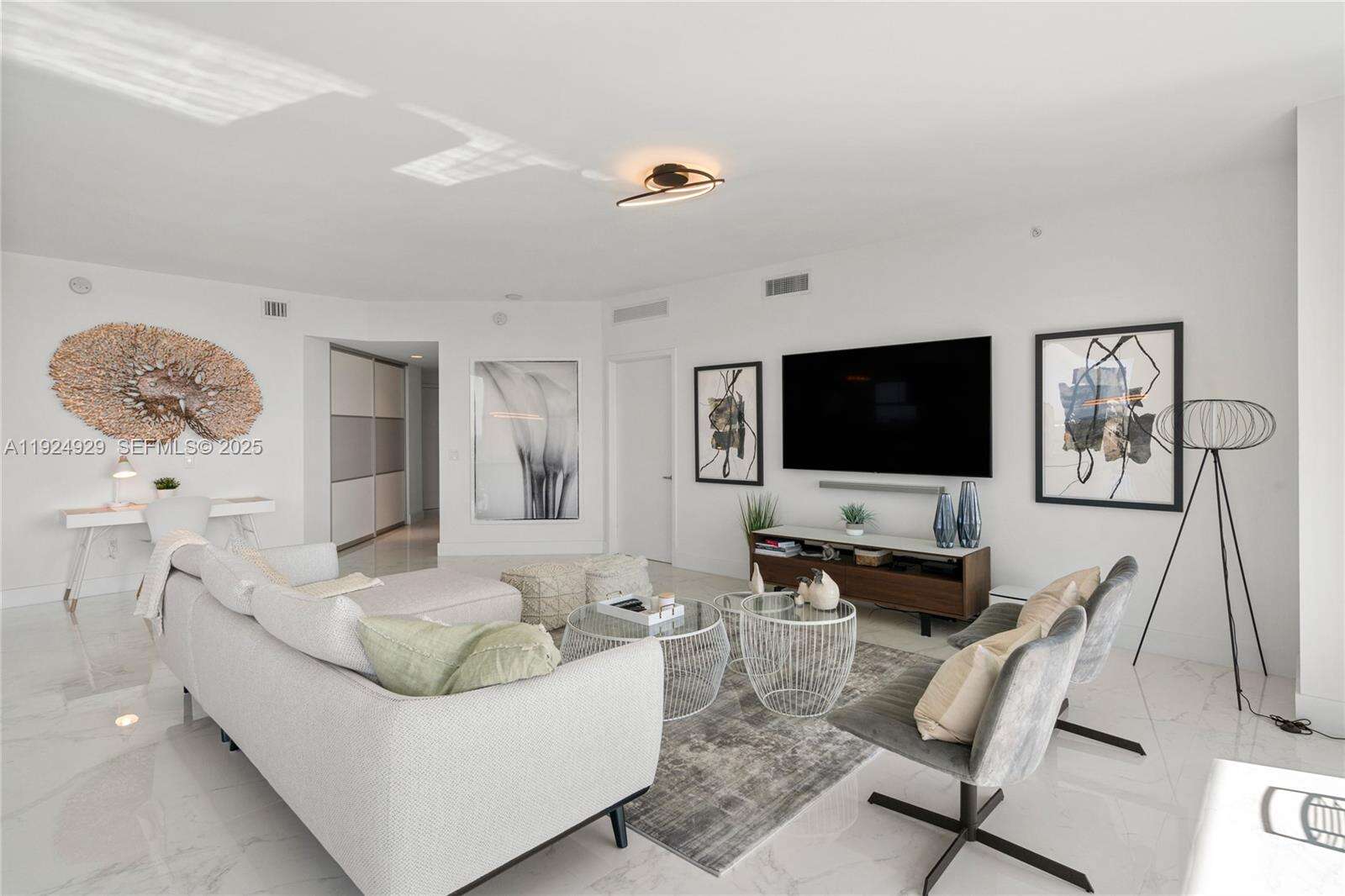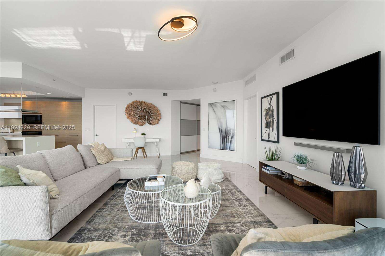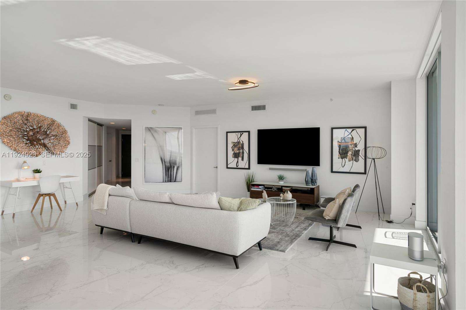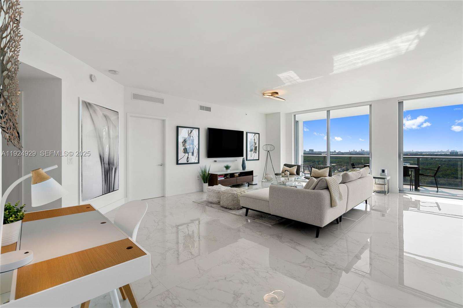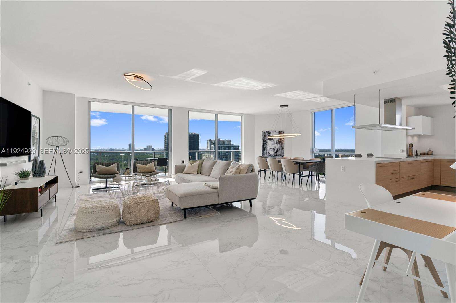 Introducing an exceptional residence at Marina Palms, perfectly positioned to capture endless, breathtaking water views from every main living space. This elegant 2 bedroom, 2.5 bath home with a spacious den offers an elevated blend of comfort and sophistication in one of Miami’s most sought after waterfront communities. This pristine unit has never been rented, never had pets and it comes fully furnished with curated designer furniture, delivering a true turnkey experience. Floor to ceiling windows flood the home with natural light, while the open concept layout enhances the sweeping panoramic vistas. The gourmet kitchen features high end finishes, ideal for both cooking and entertaining. For added convenience, the residence includes two assigned parking spaces and a full storage unit, offering ample room for personal belongings. Marina Palms also boasts a full-functioning marina, complete with state of the art facilities for boating enthusiasts. Residents enjoy world class amenities including 24/7 concierge services, a fitness center, spa, resort-style pool, lounge areas, business spaces, and much more. A rare opportunity to enjoy refined waterfront living with unmatched views and luxury at Marina Palms.