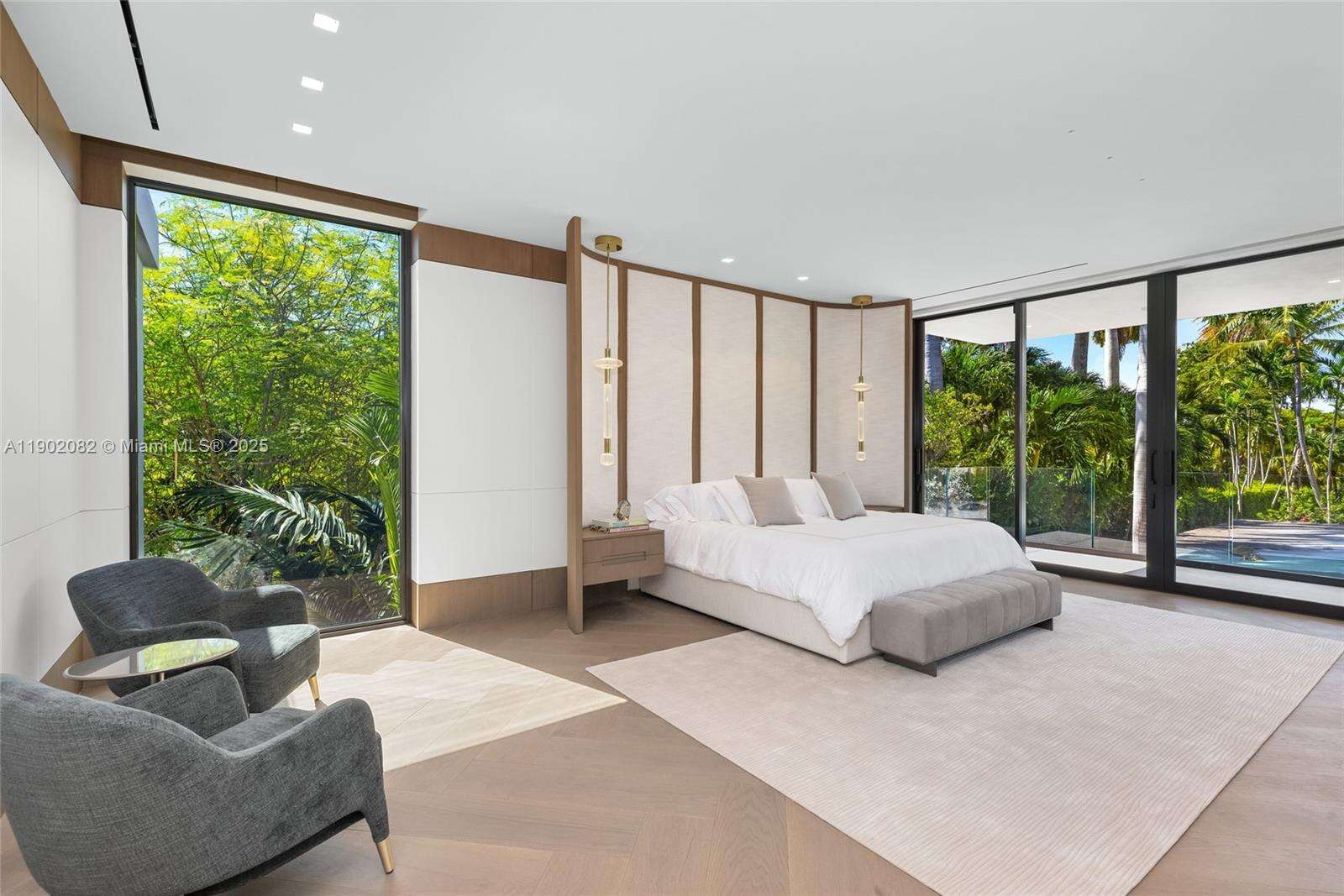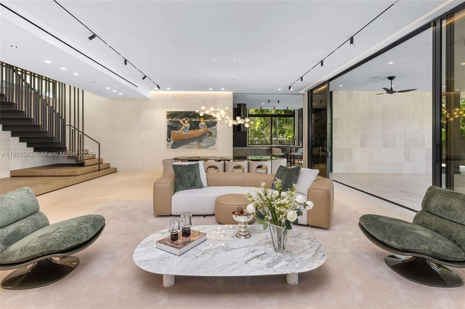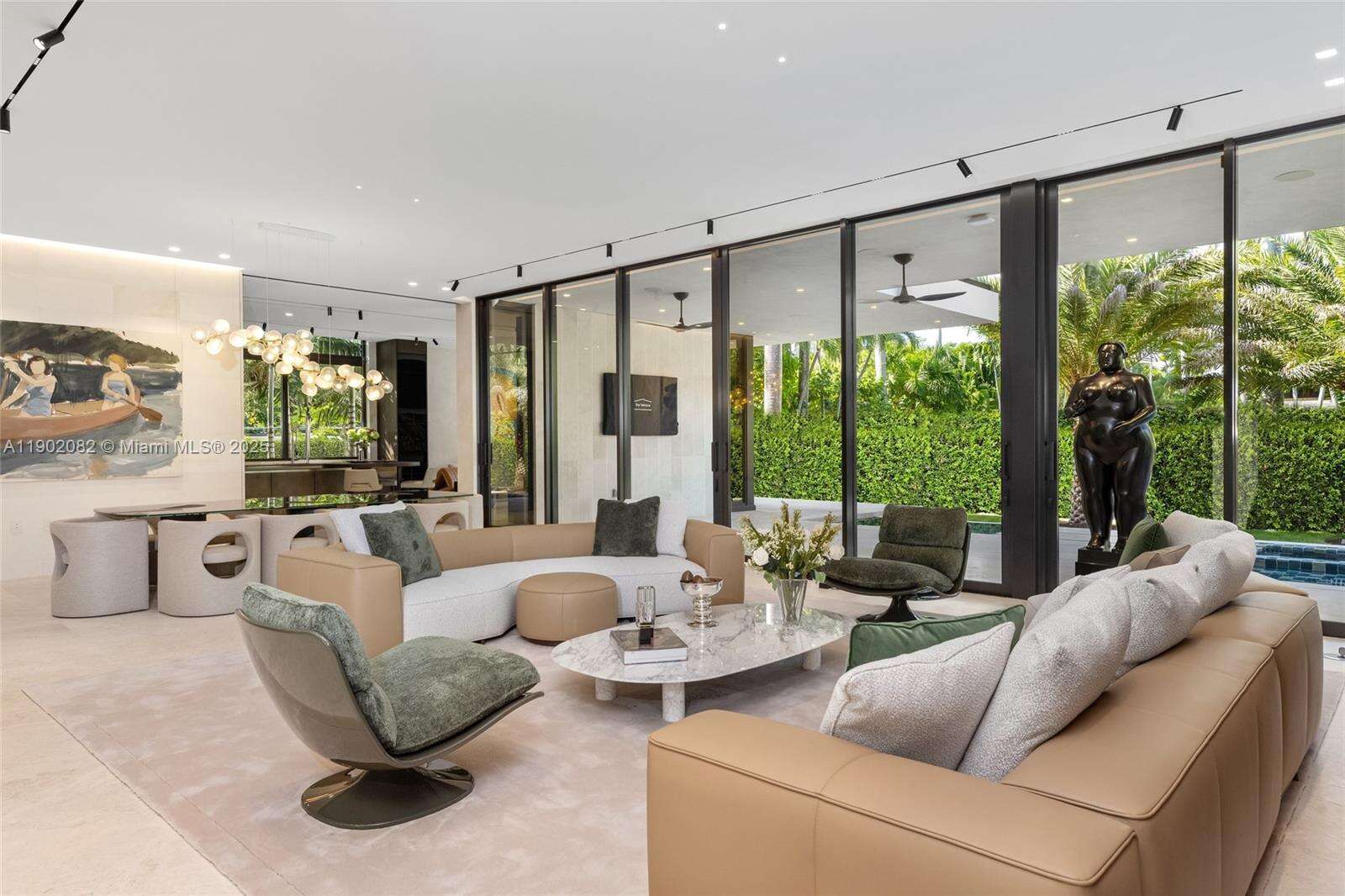 Tropical modern elegance redefined. Welcome to this newly built 6,000 SF estate on the exclusive guard-gated Sunset Islands. This striking collaboration by Sunlight Homes & Preschel Bassan features 5 elegant bedrooms plus staff quarters, with 7 full and 2 half baths. A stone-clad façade opens to Boffi kitchens, imported stone, and Spanish oak floors. Interiors by Tamara Feldman feature handcrafted details from fluted leathered marble, hingeless doors, Delta lighting, travertine, and limestone. The primary suite includes a terrace, dual baths and dressing rooms. Outside, a private resort unfolds with pool, cold plunge, spa, and summer kitchen. Complete with elevator, smart-home integration, and generator. The residence is set on a 12,000 SF corner lot with immaculate sunset and water views.