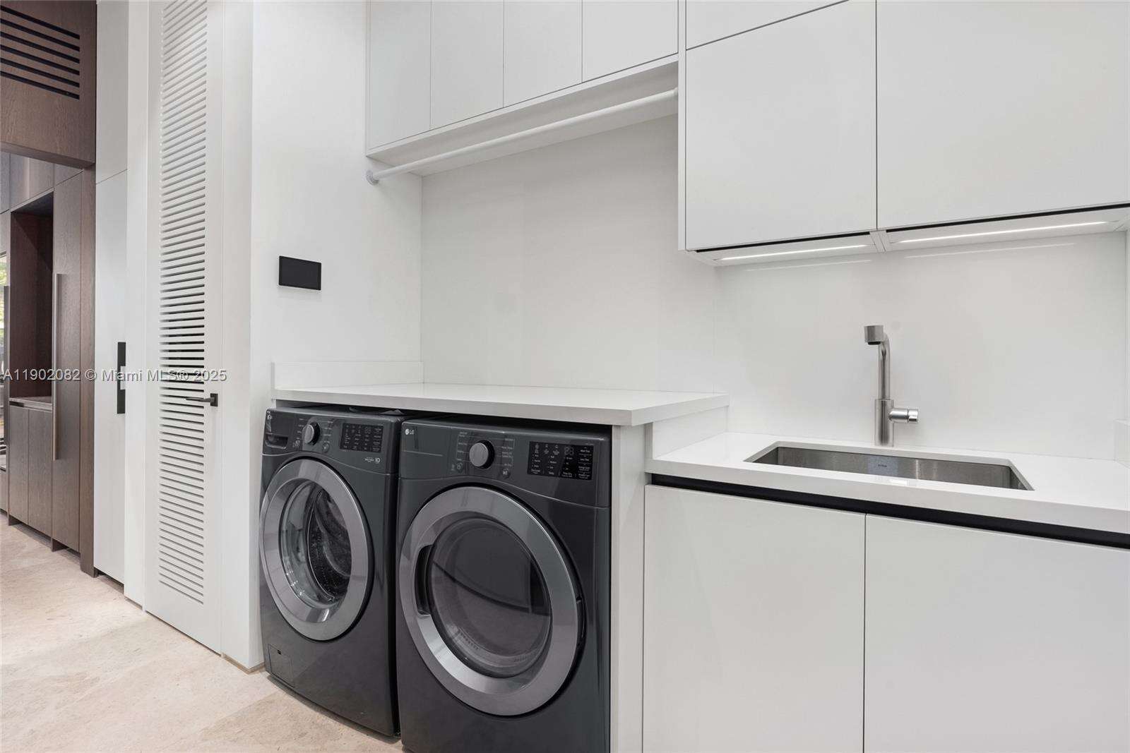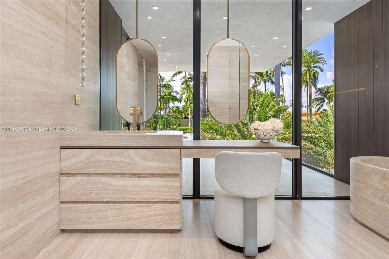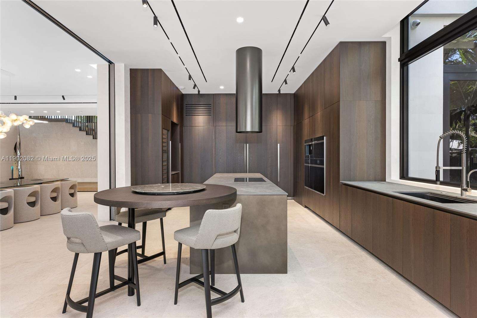 Tropical modern elegance redefined. Welcome to this newly built 6,000 SF estate on the exclusive guard-gated Sunset Islands. This striking collaboration by Sunlight Homes & Preschel Bassan features 5 elegant bedrooms plus staff quarters, with 7 full and 2 half baths. A stone-clad façade opens to Boffi kitchens, imported stone, and Spanish oak floors. Interiors by Tamara Feldman feature handcrafted details from fluted leathered marble, hingeless doors, Delta lighting, travertine, and limestone. The primary suite includes a terrace, dual baths and dressing rooms. Outside, a private resort unfolds with pool, cold plunge, spa, and summer kitchen. Complete with elevator, smart-home integration, and generator. The residence is set on a 12,000 SF corner lot with immaculate sunset and water views.