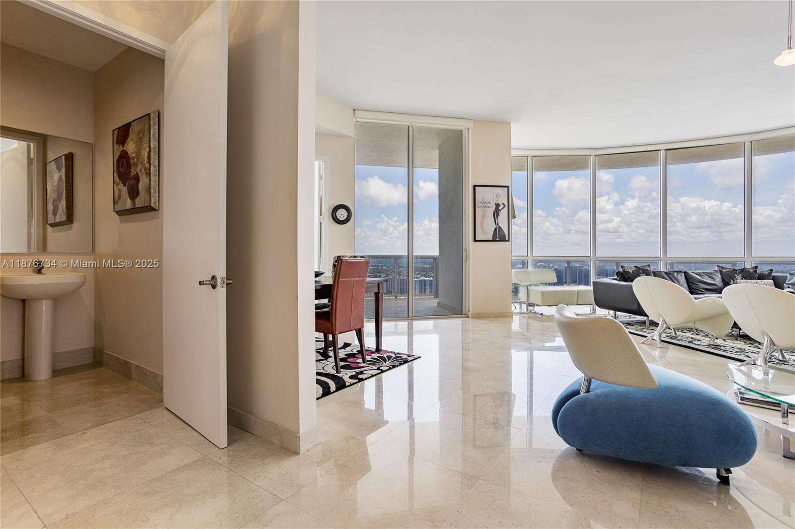 Experience elevated coastal living in this extraordinary PENTHOUSE boasting 3 bedrooms, 3.5 bathrooms, and a versatile den. Enjoy 180-degree panoramic views—ocean vistas to the southeast and direct Intracoastal views to the northwest—all showcased through dramatic floor-to-ceiling windows. A private elevator welcomes you into 2,236 sq. ft. of refined interiors featuring marble flooring and a spacious family room. The gourmet kitchen w/ wet bar is perfect for entertaining. Private beachfront cabana at Trump Int'L, also available for sale. Enjoy Trump Palace amenities along w/ full access to Trump Royale & Trump Int’l: Beach, multiple pools, full-service spa, gym, tennis, valet, and concierge. A truly rare offering—privacy, elegance, and resort-style living in the heart of Sunny Isles.