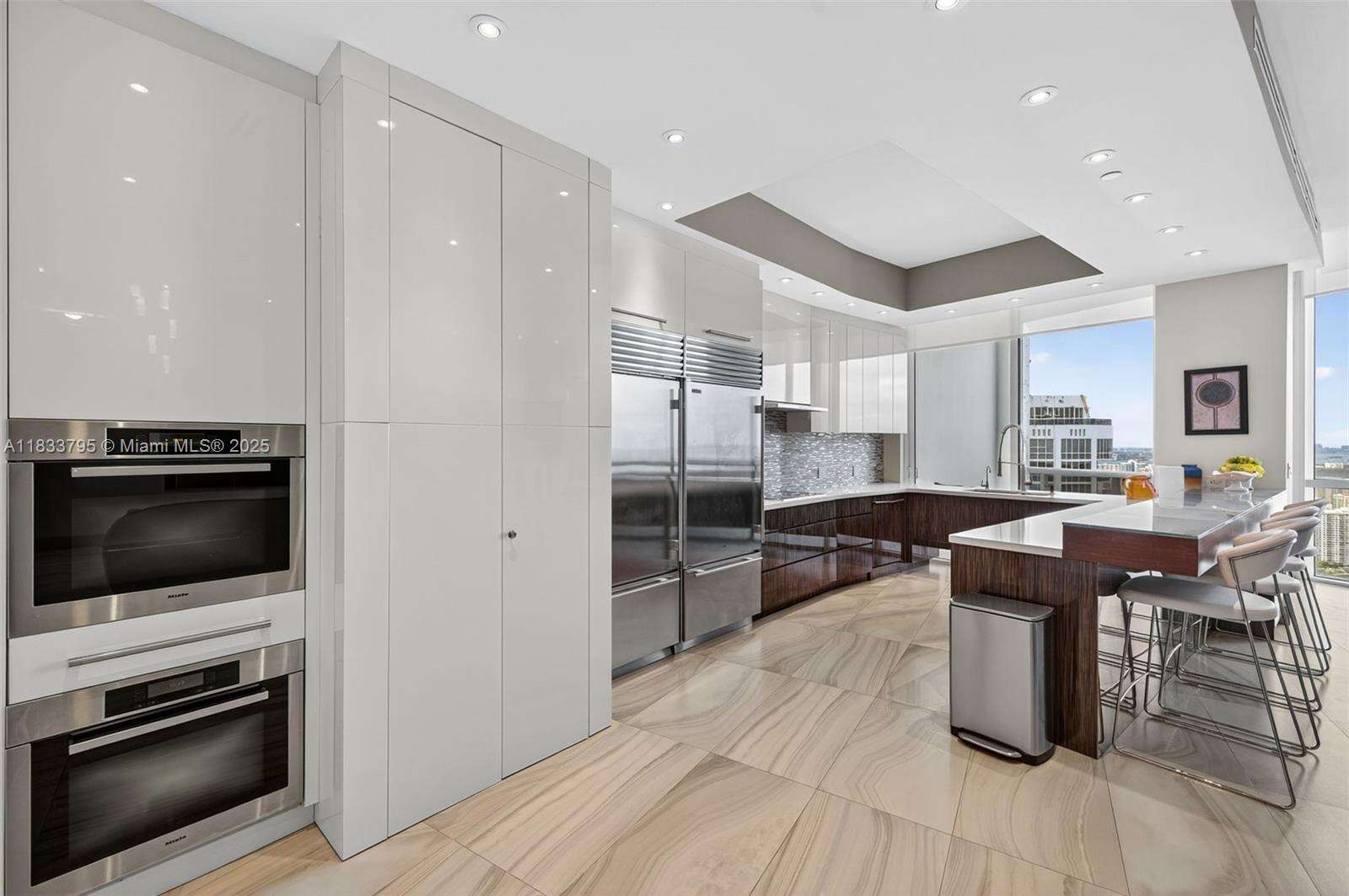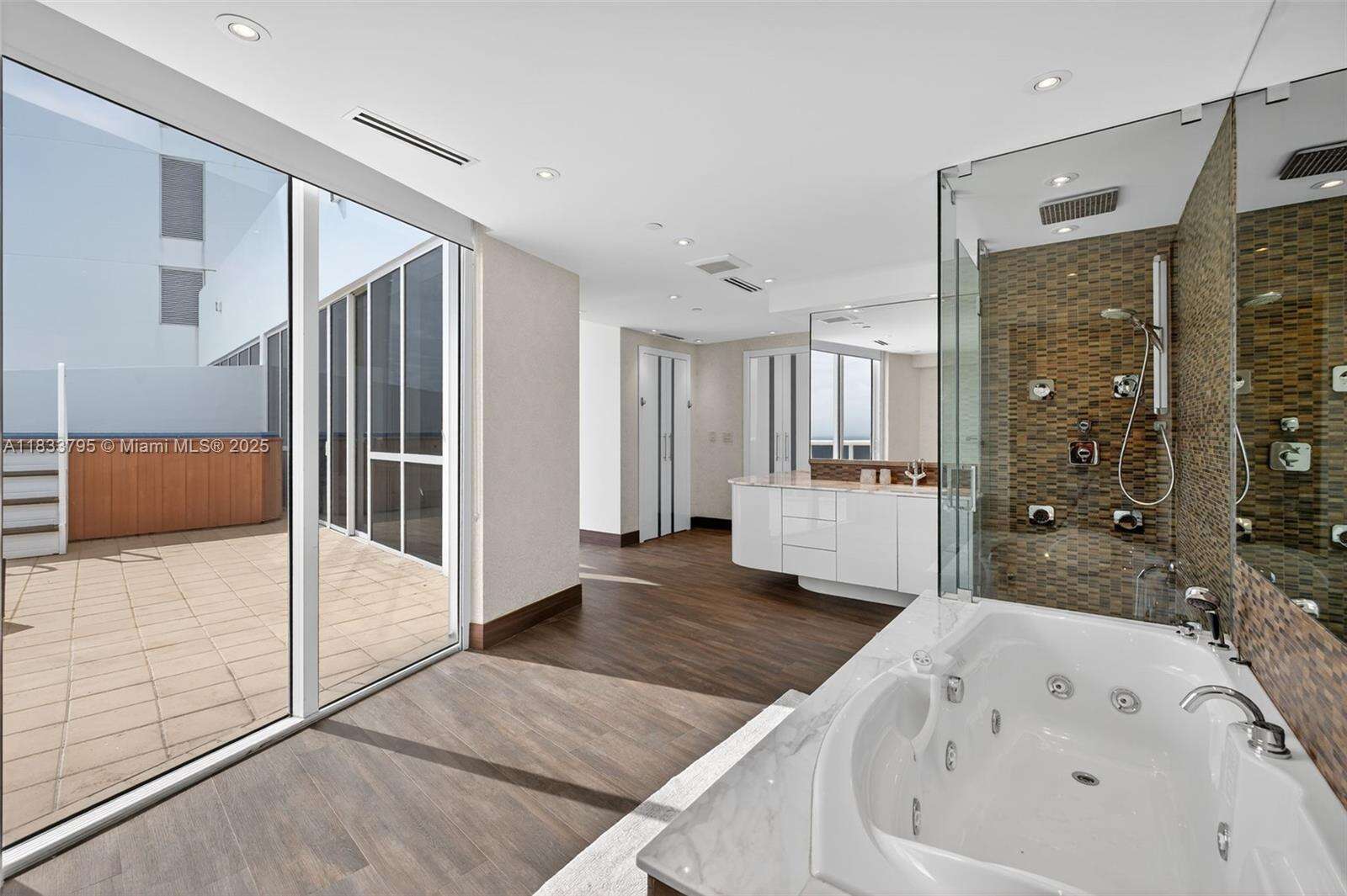 One of a kind! TWO combined tower suites, TWO stories, over 3,800 SF interior (approx. 5,700 SF total with balconies & terraces). 4 beds, 4.5 baths, soaring 11'–18' ceilings, private glass elevator, and stunning ocean, downtown Miami, Ft. Lauderdale & Intracoastal views. Enjoy rooftop ocean-side exercise lap pool with spa jets, top-of-the-line finishes, Roberto Cavalli upgrades, German kitchen, and luxury resort amenities: beach/pool services, restaurants, spa, tennis, 24/7 security. Major crypto or property exchange accepted! Owner financing! Easy to show — call today!