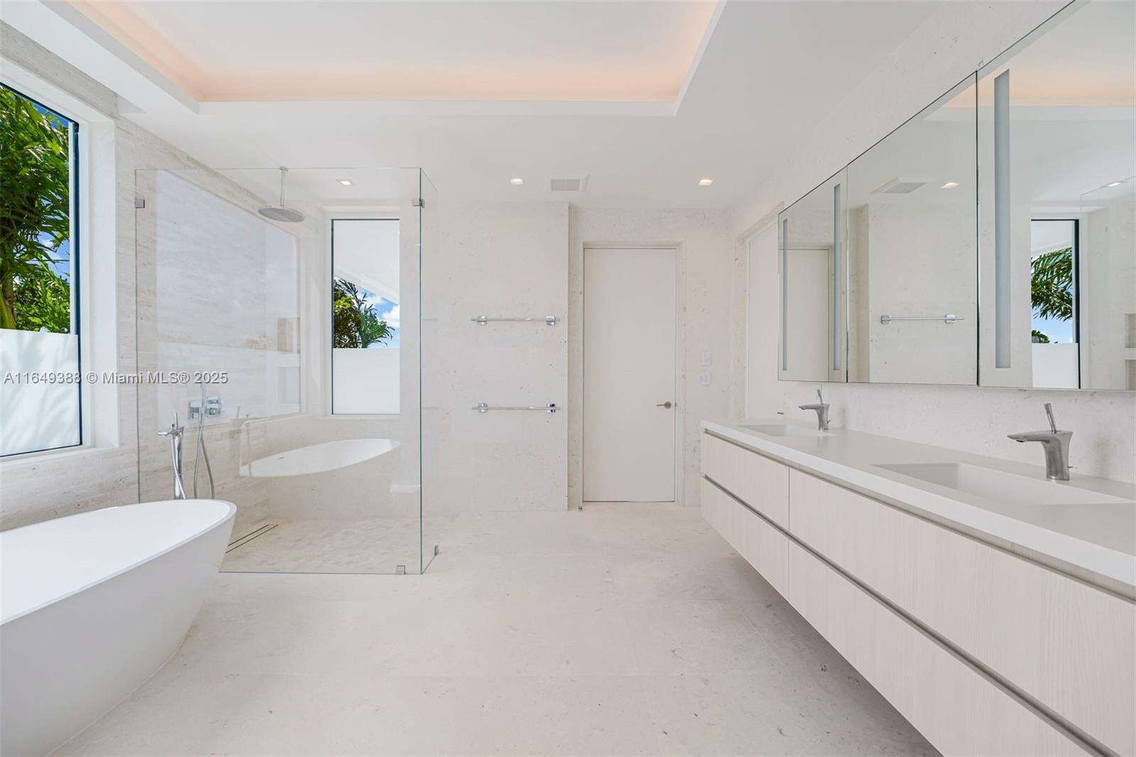 Experience luxury in this extraordinary new modern waterfront residence. Located on exclusive Biscayne Point Island, this home offers premium southern exposure and breathtaking open bay views. With 75 feet of waterfrontage, no fixed bridges, and a private dock, this property is a boater’s paradise. Featuring 5 bedrooms, 5/1 bathrooms, an office, and a gourmet kitchen with high-end appliances, the home is designed for comfort and elegance. The expansive living area includes an elevator to a rooftop terrace with stunning views, a gym, and a 1,000 sq. ft. primary suite with walk-in closets and a private oversized terrace. Outdoors, enjoy manicured lawns, a swimming pool, jacuzzi, and a summer kitchen.