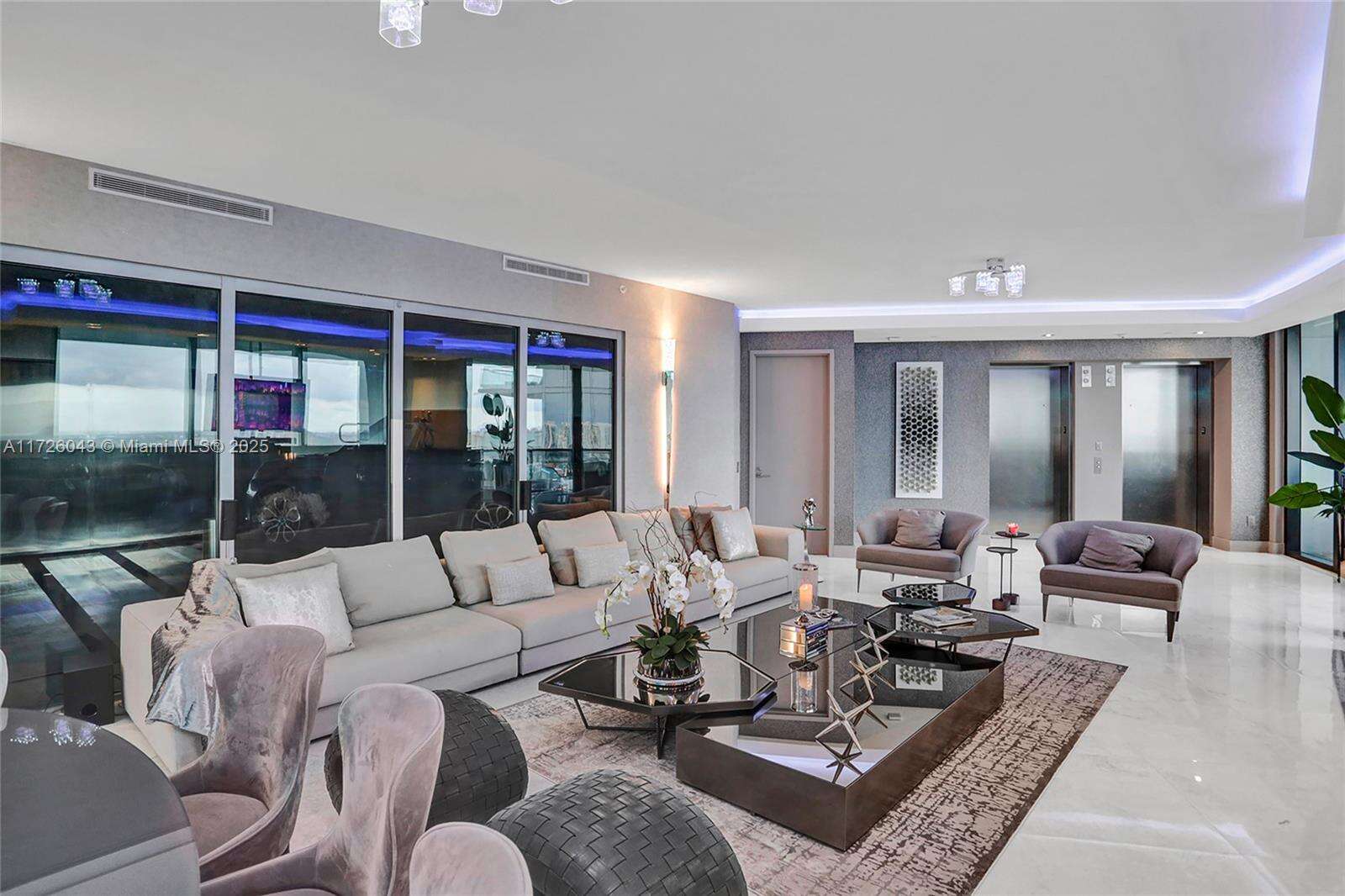 DRIVE YOUR CAR RIGHT INTO YOUR LIVING ROOM at this newly designed 4 BED / 4.5 BATH residence at the luxurious Porsche Design Tower. Enjoy five-star resort-style living in one of the most exclusive oceanfront developments on Sunny Isles Beach. Expertly designed unit with sleek & sophisticated interiors, pristine finishes, stylish custom lighting, and top-of-the-line Miele appliances. Special features include 2-car garage that leads directly to the living room, heated spa-like jacuzzi on expansive wrapping terrace, and 2 private elevators that lead directly to the unit. Enjoy world-class amenities such as gourmet restaurant with in-room dining services, full beach service, two pools, spa & fitness center, car simulator, sports simulator, building & car concierge, and more. Offered furnished.