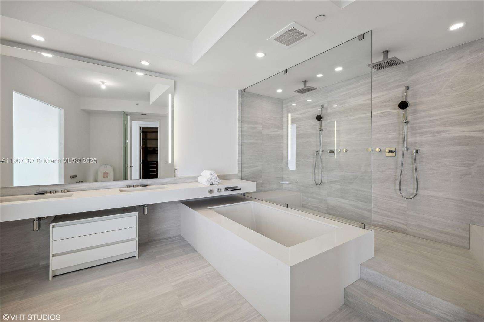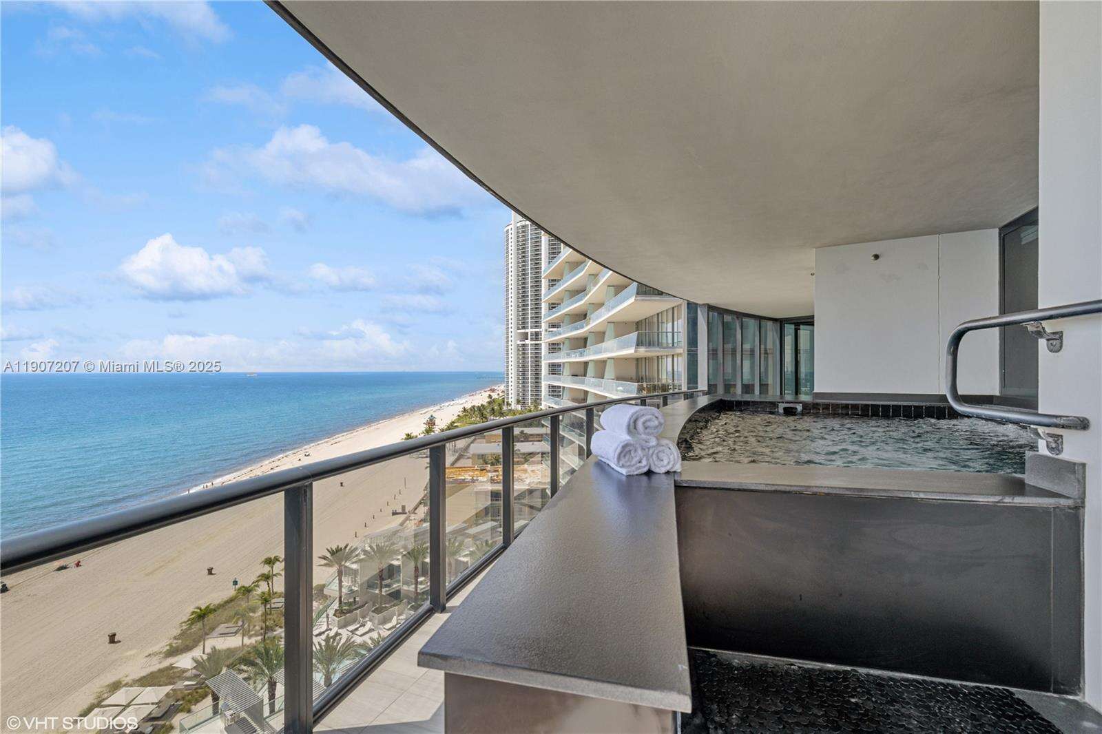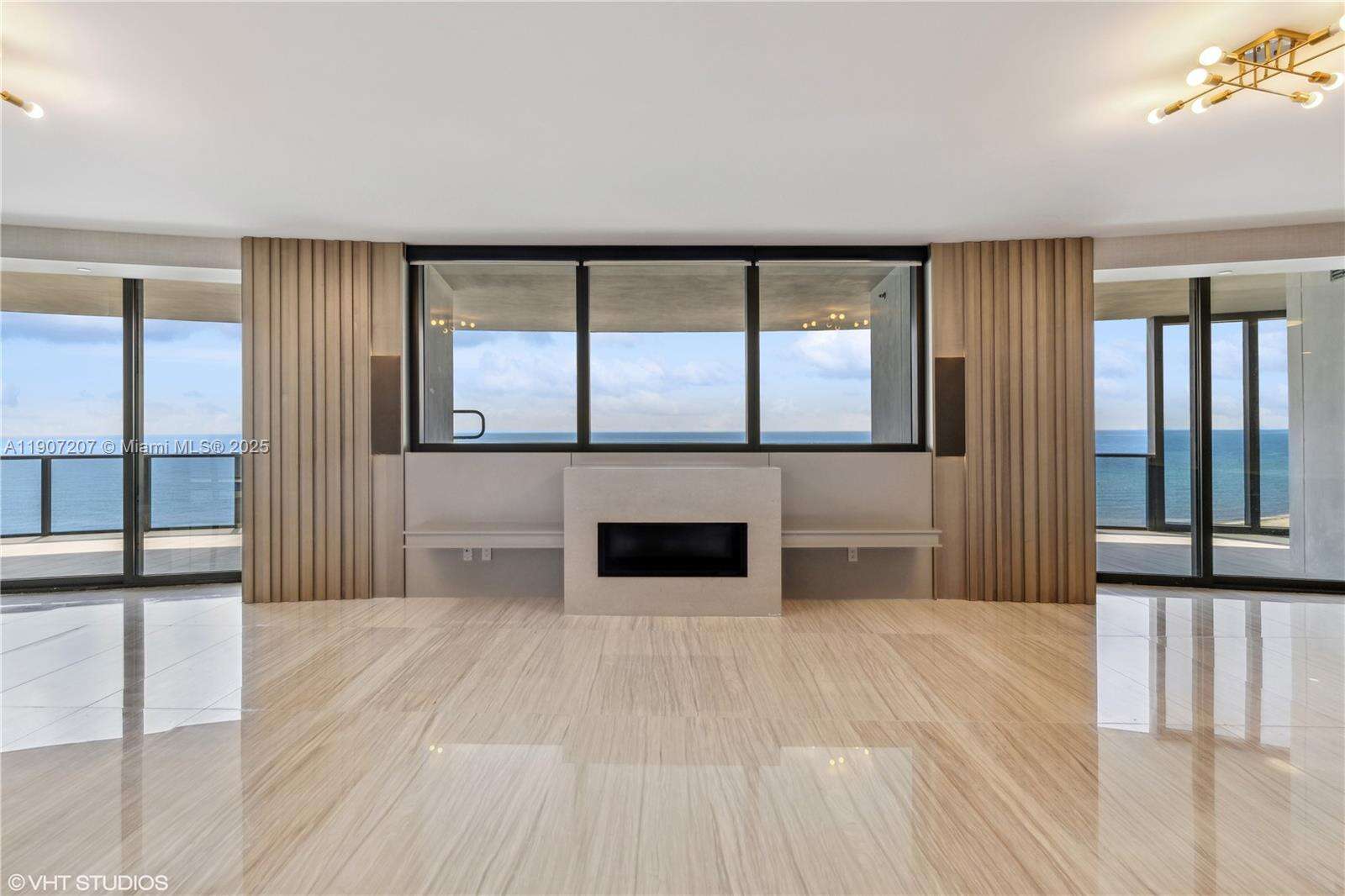Arrive in style as you pull into the designated space, turn off the engine and step into a seamless transition between the outside world and your private sanctuary.A stunning glass elevator transports you directly to the front door of your oceanfront residence exquisitely designed by award-winning interior designer Fanny Haim.Be immediately captivated by Breathtaking panoramic ocean views and refined interiors featuring 24” x 48” x ¾” polished marble floors,custom millwork and a sleek fireplace with built-in storage.Enjoy the essence of modern coastal living with hardwood floors in the bedrooms, bespoke walk-in closets, Lutron automated shades for effortless ambiance control.Step outside to indulge in a curated outdoor living with your private pool/summer kitchen and expansive terraces.