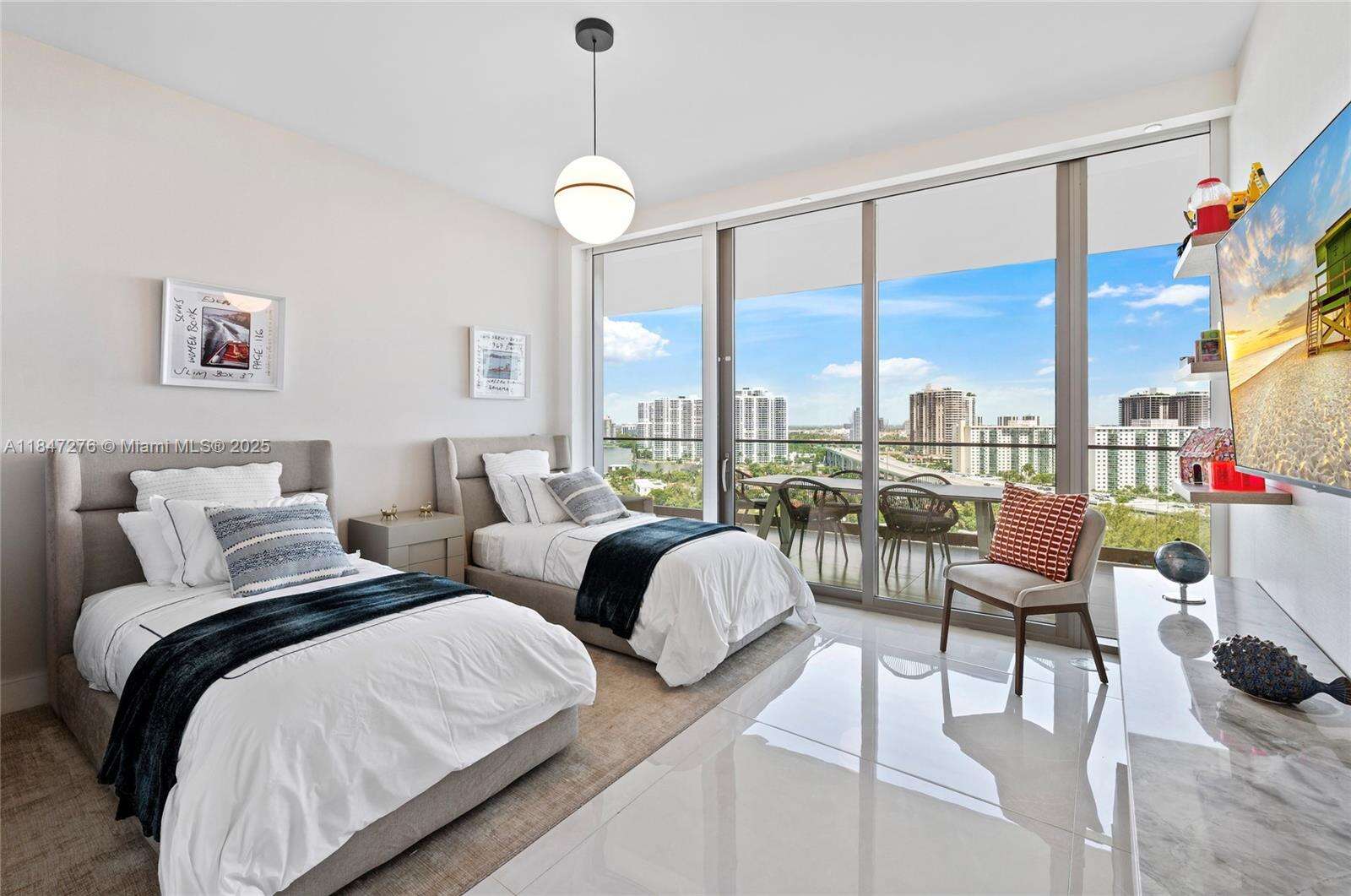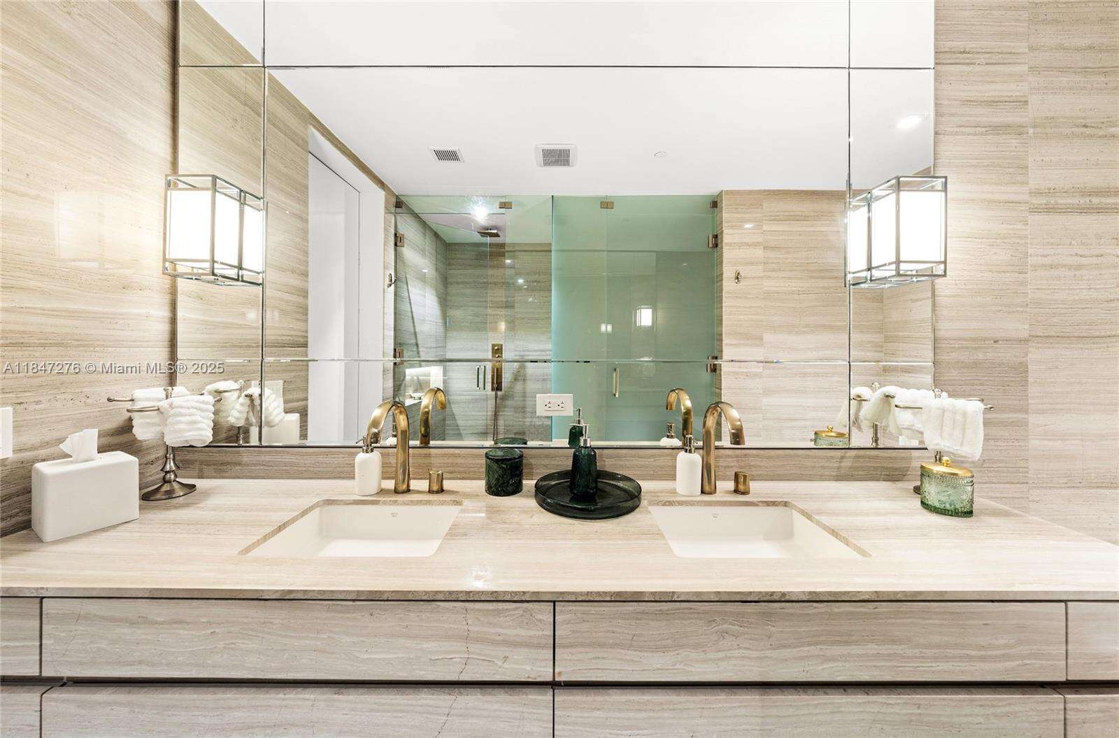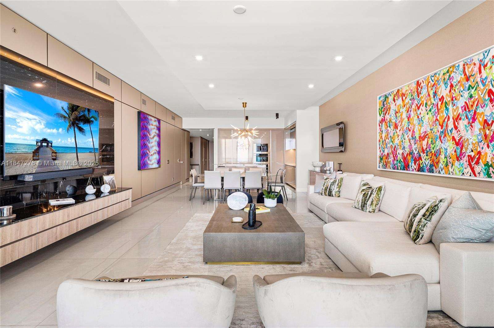 Brand new, fully upgraded residence. Flow-thru unit with 2 extensive terraces, one facing the ocean / white sand, the 2nd is facing the canal, city skyline / sunset. Designed by prestigious Design firm in an elegant, modern, flawless style. Wooden panels throughout, TV console in stone, larger floor tiles, personalized furniture for master bed, living room and guest suites. Top of the line appliances, Armani Casa kitchen & bathroom fixtures. Italian furniture. Costumized closets with lightning. Dropped ceiling. Ready to be occupied this impressive turn-key fully decorated oceanfront condo. Price includes everything except 2 art pieces (as value is considerably high), can be negotiated. Foyer also is upgraded/finished. 3 full beds, Studio can be turned into a 4th bedroom with a Jack/Jill.